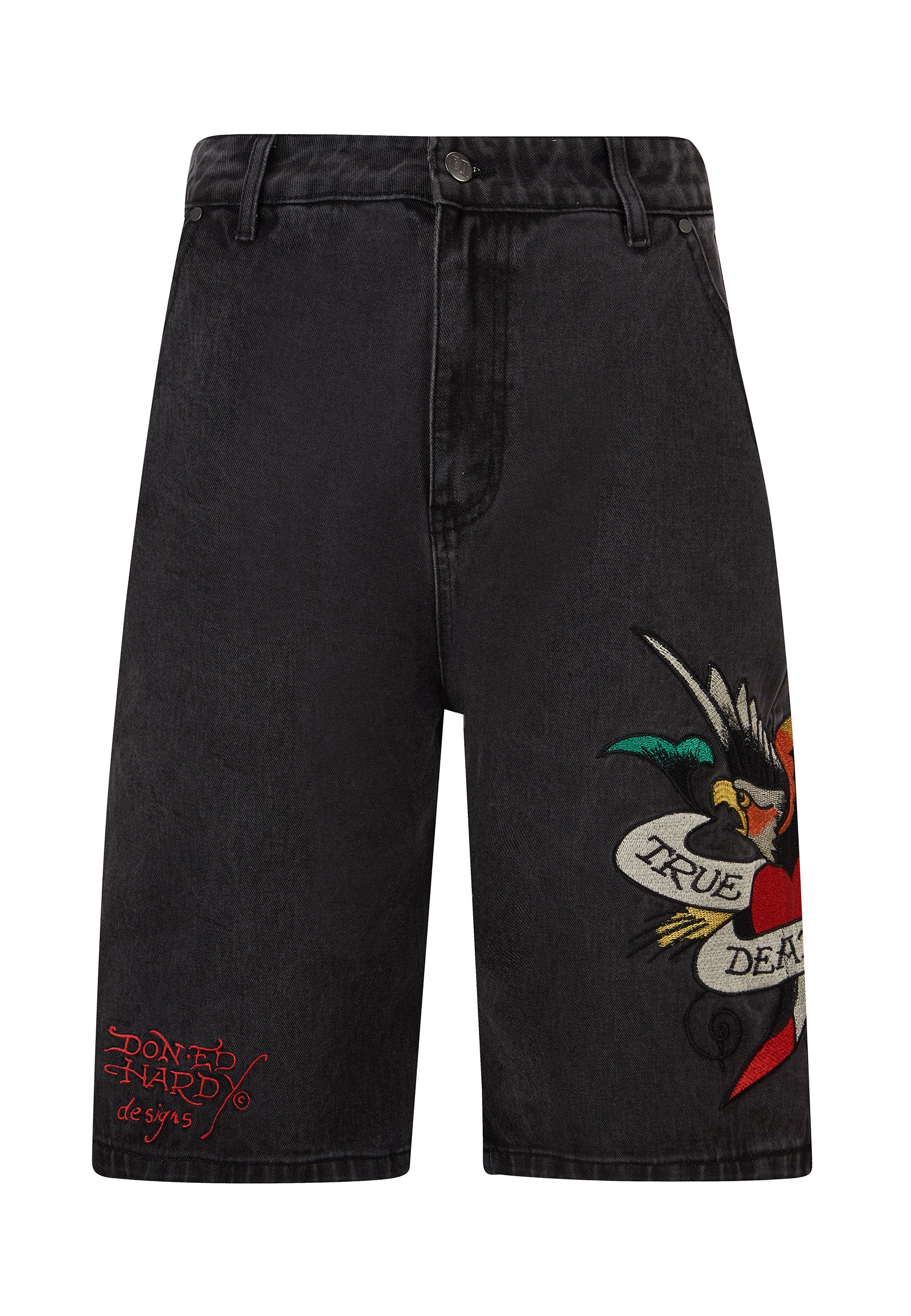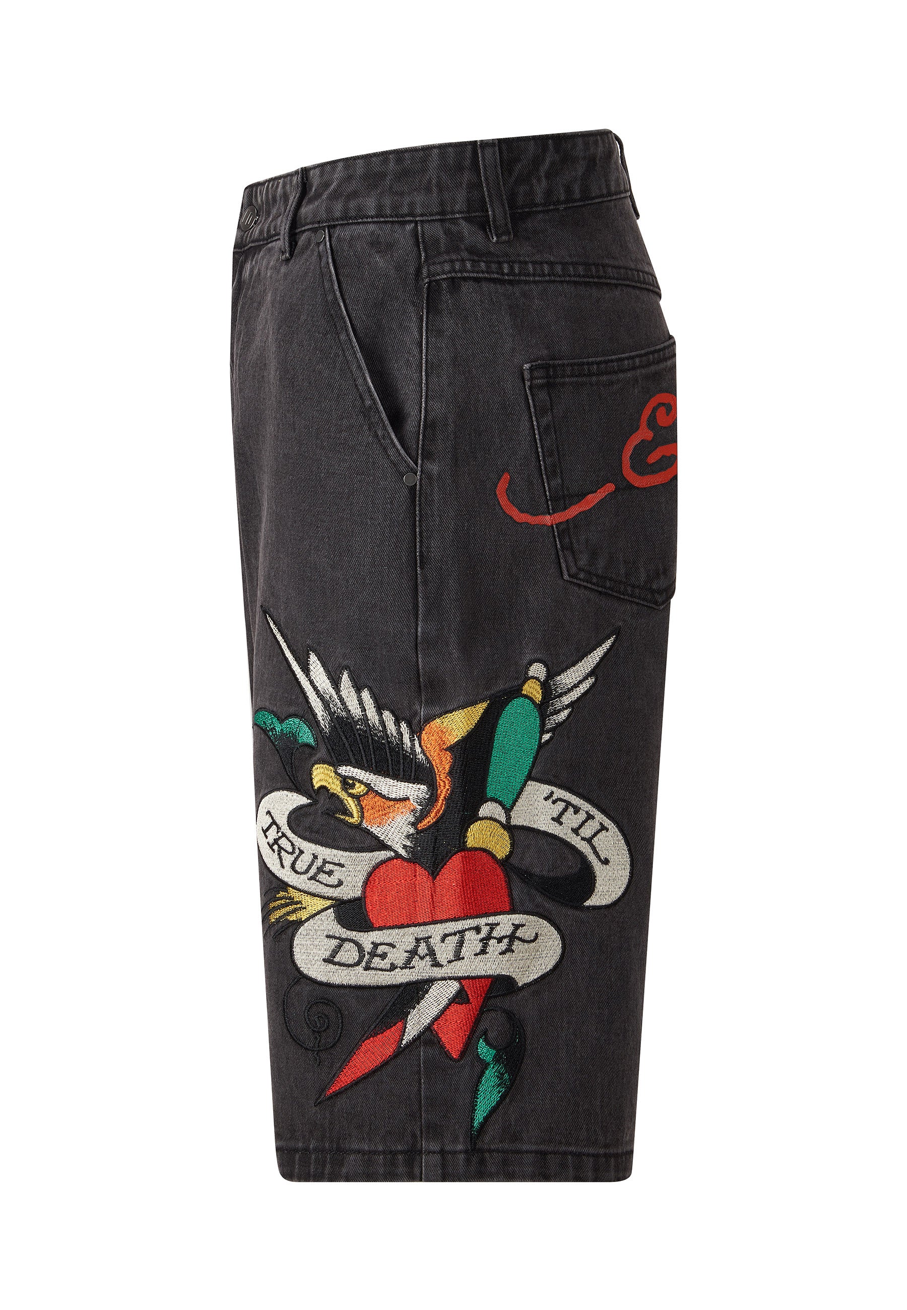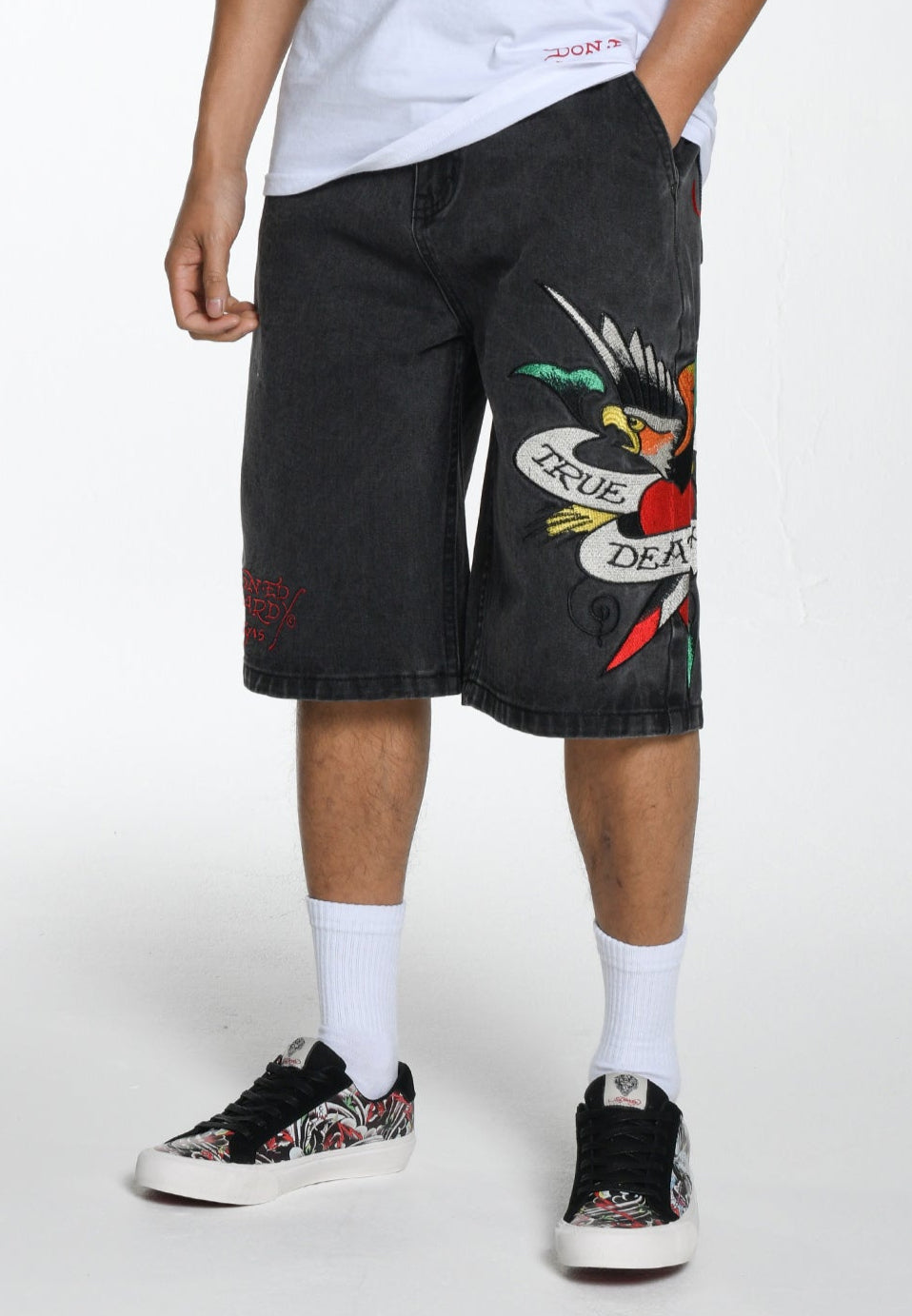 Mens True Till Death Denim Jorts Shorts - Washed Black