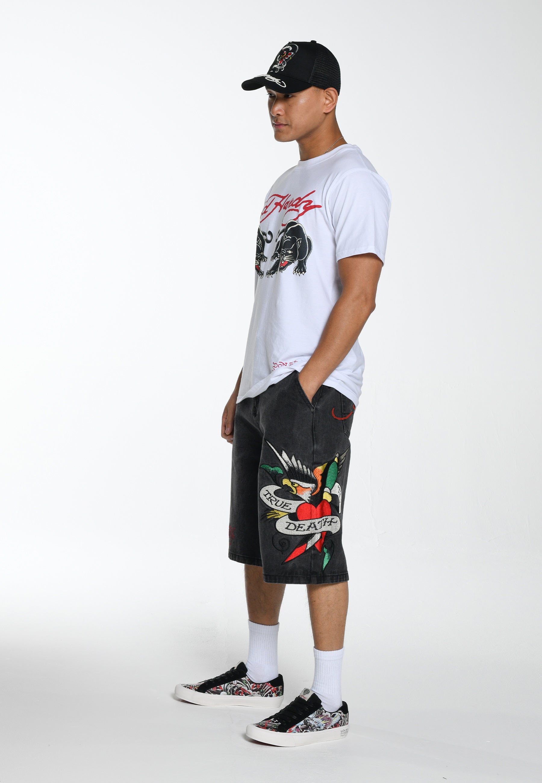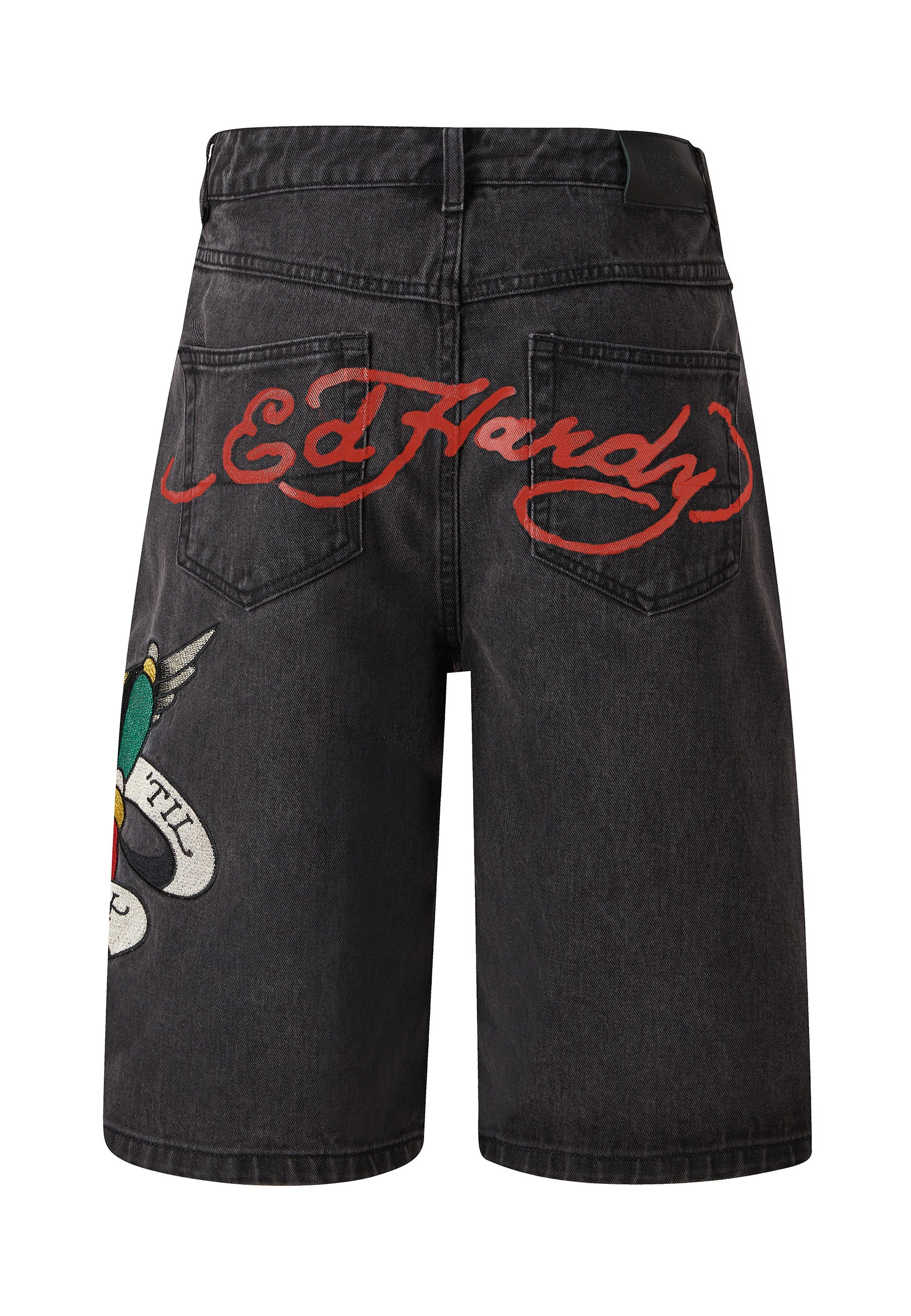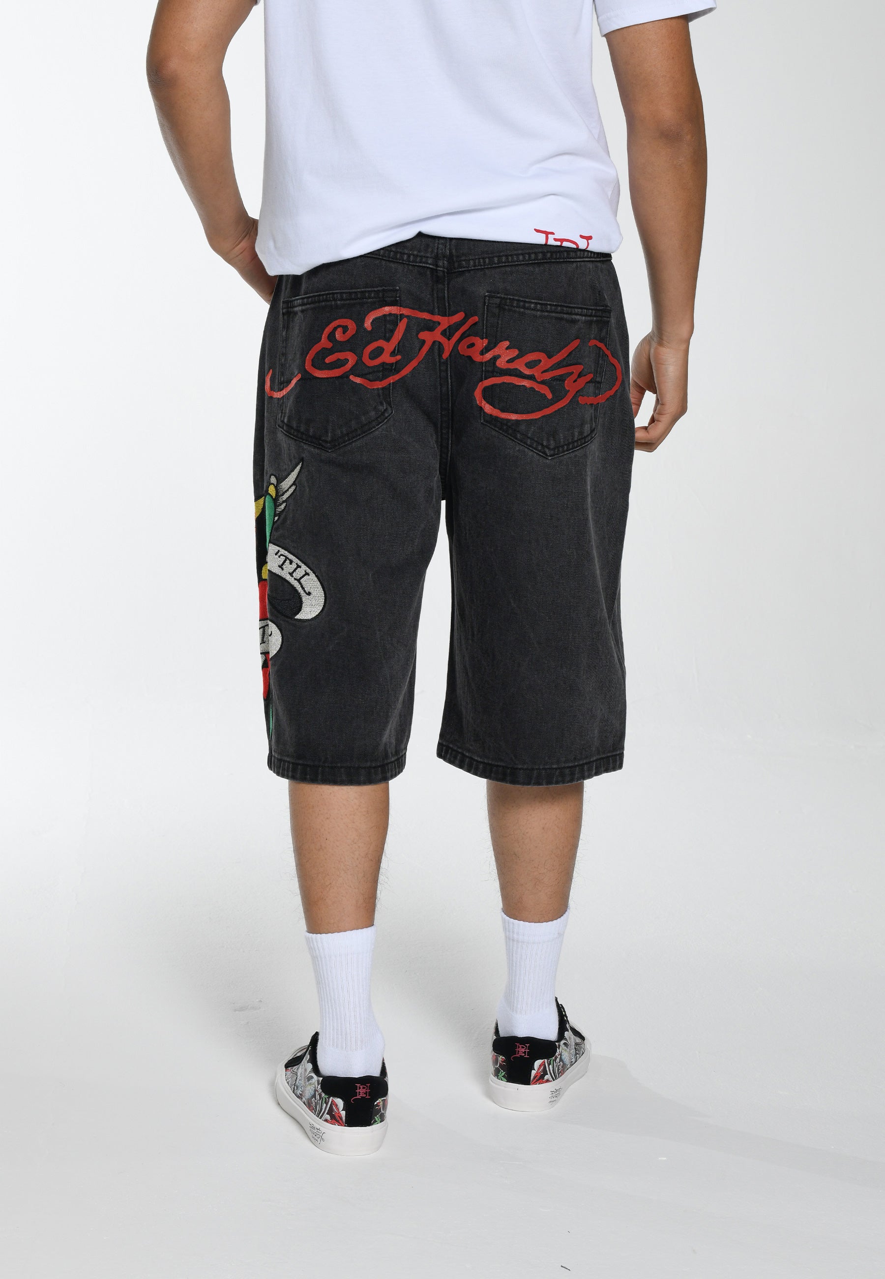 Mens True Till Death Denim Jorts Shorts - Washed Black