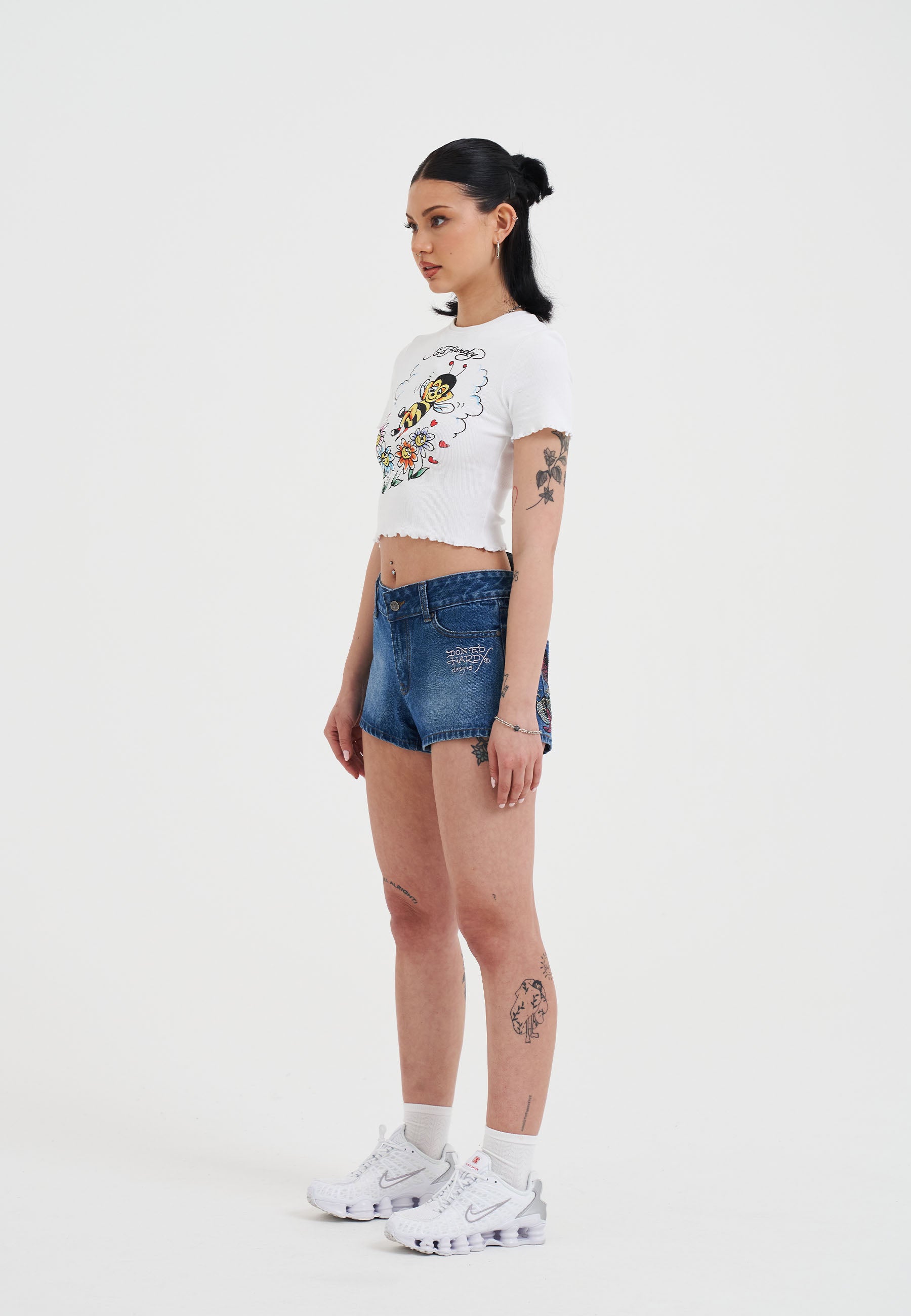 - FRONT PRINTED BEE FLORAL TATTOO GRAPHIC