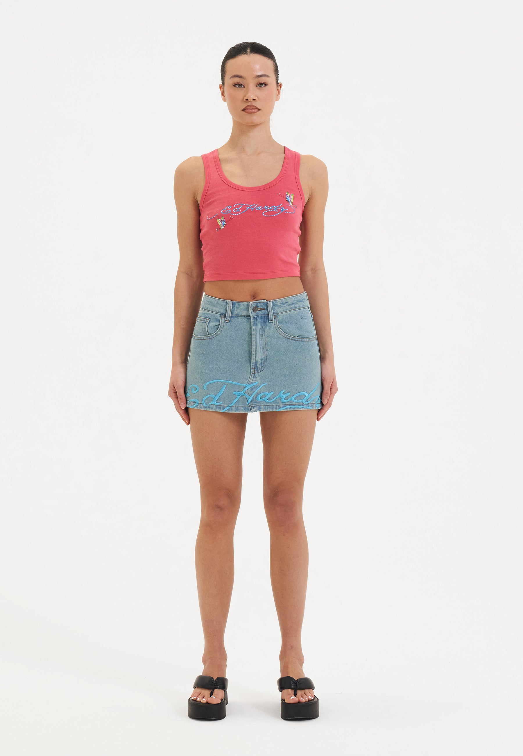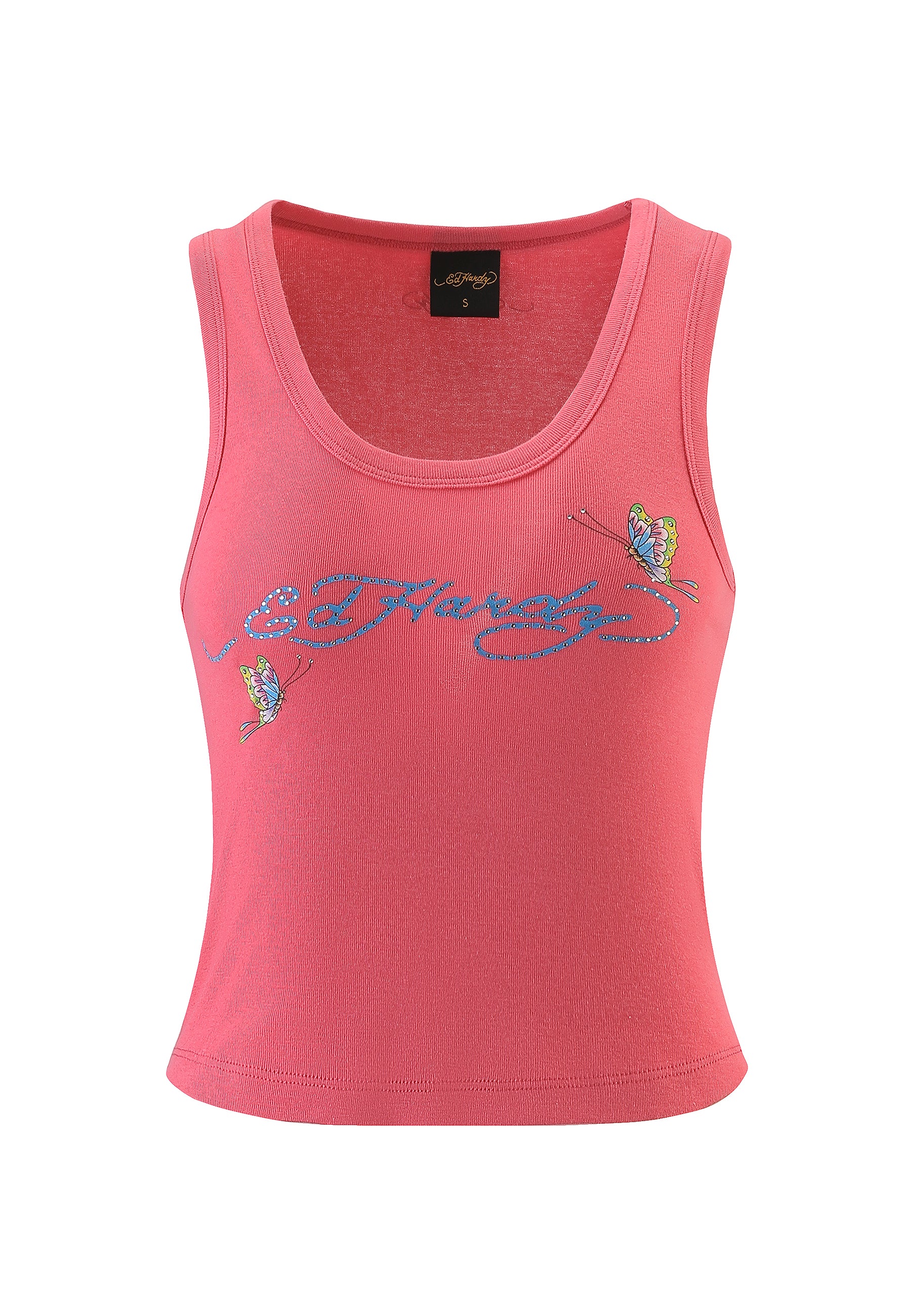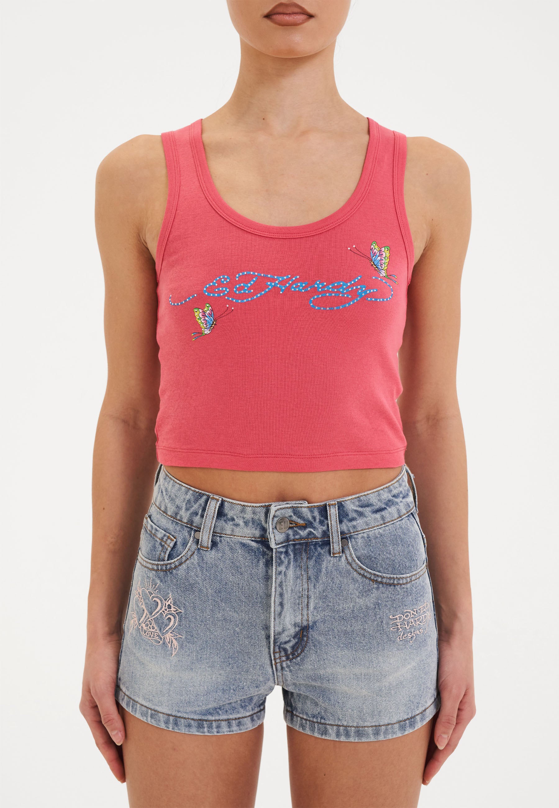 Womens Butterfly Party Rhinestone Cropped Vest Top - Pink