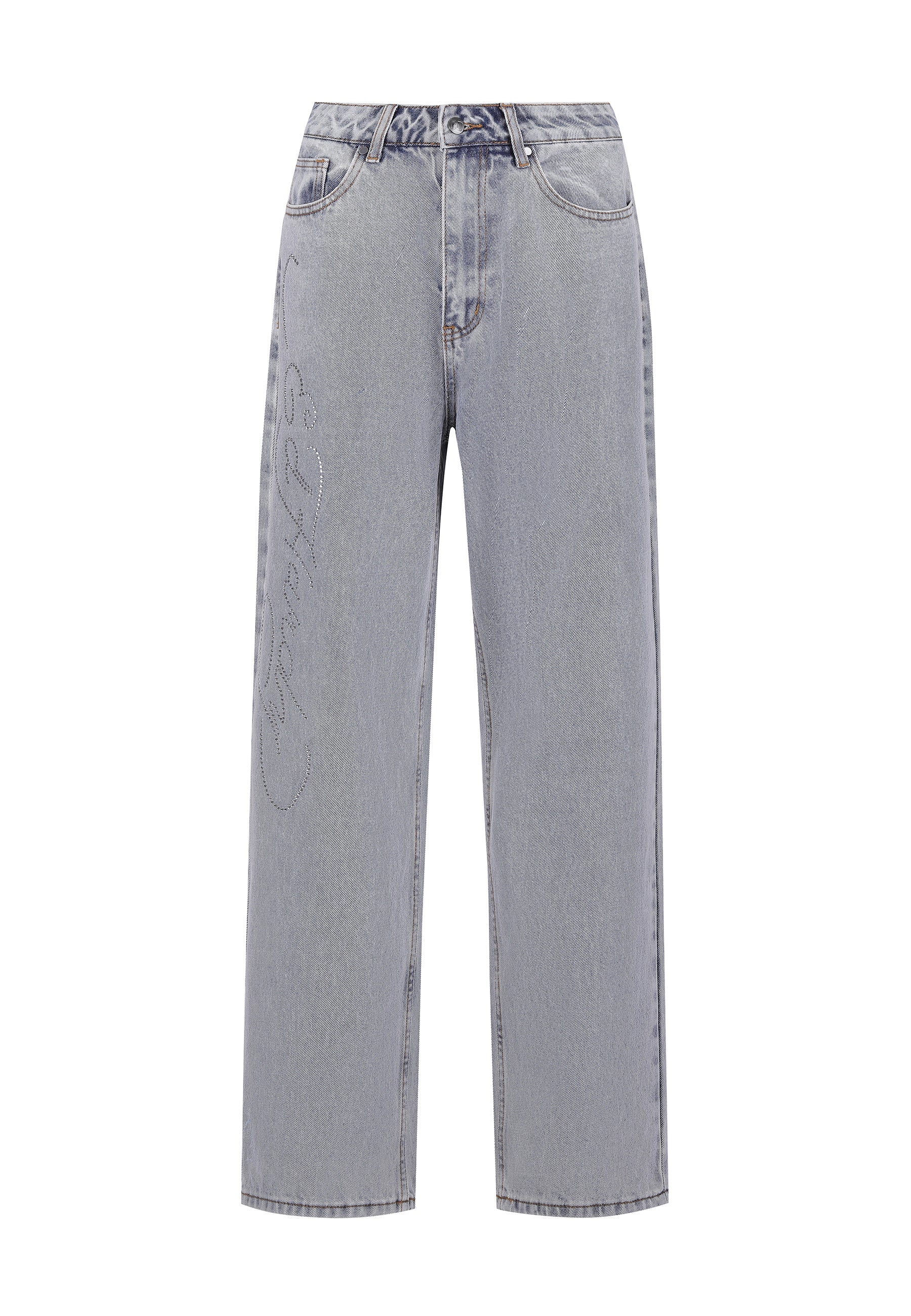 Womens Crystal Roar Diamante Relaxed Denim Trousers Jeans - Bleach
