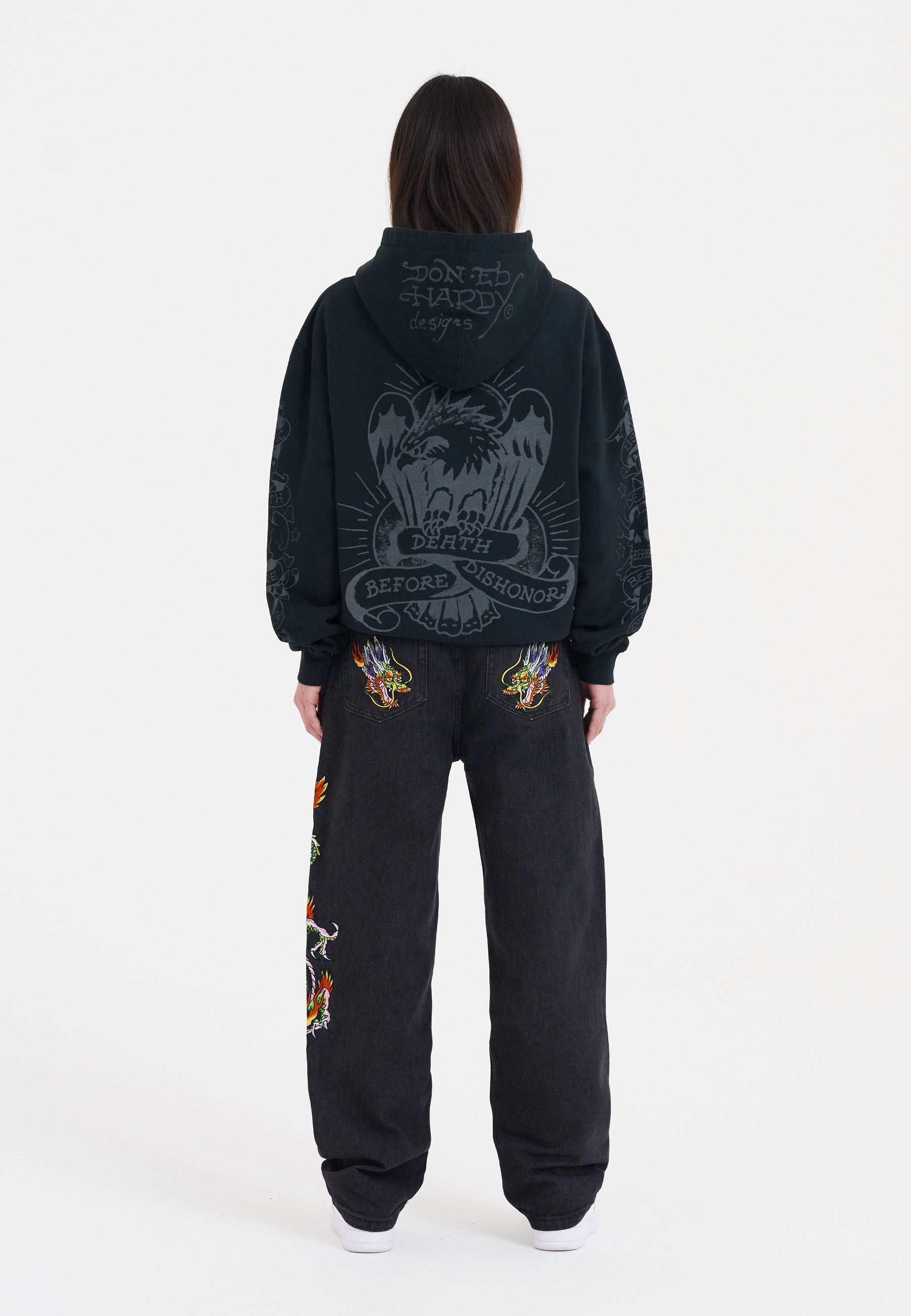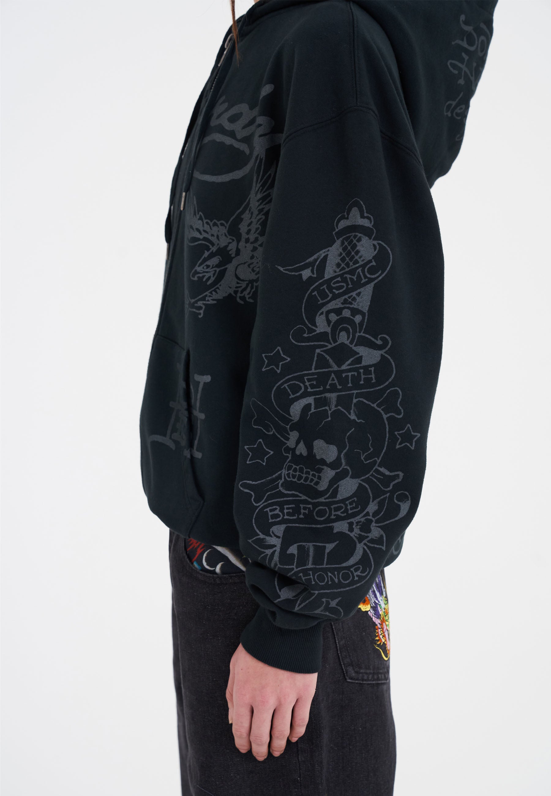 As the summer sun beckons, don your Death Before Hoodie wherever you roam, styling Ed Hardy's infamous designs alongside your personal style.
