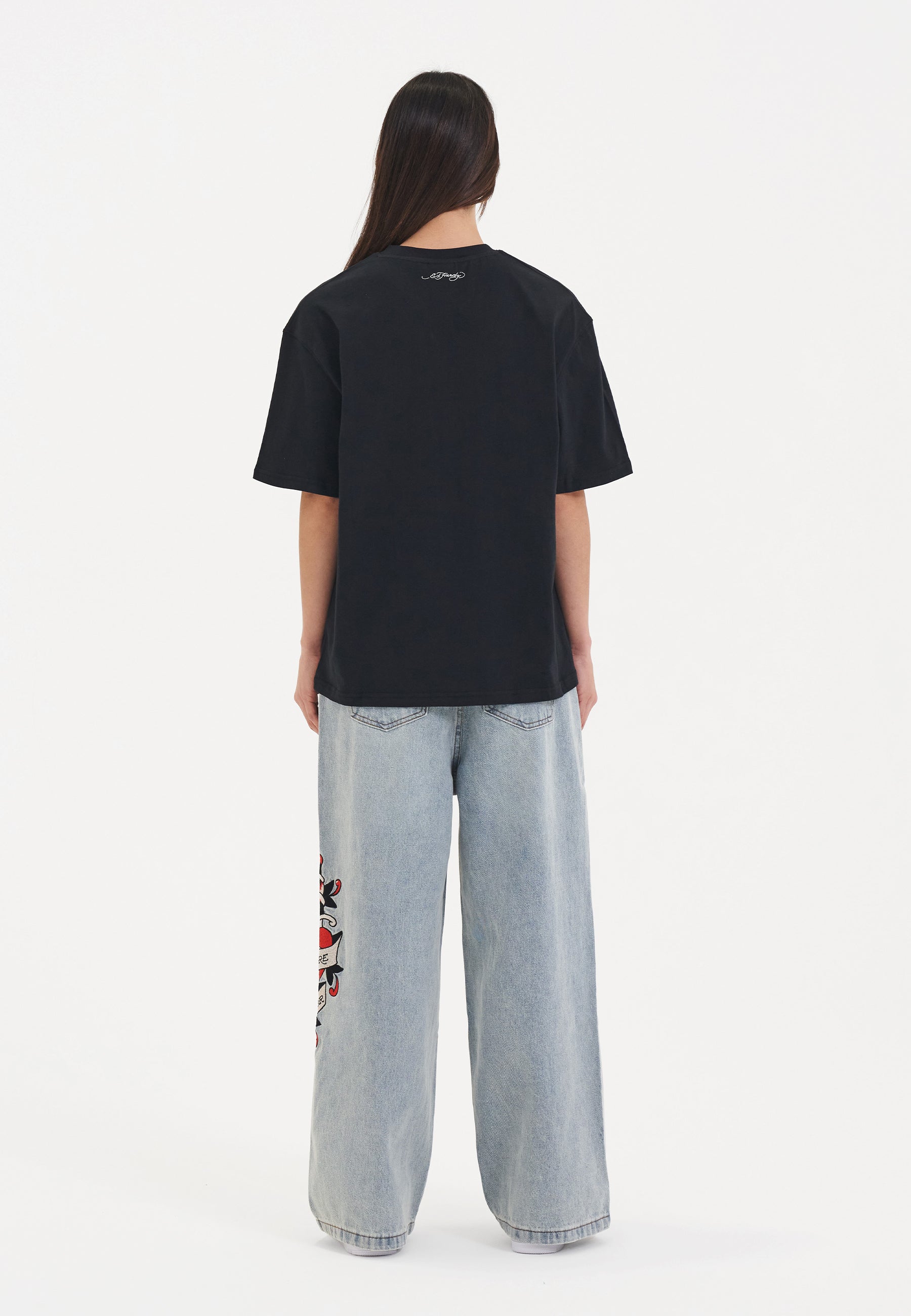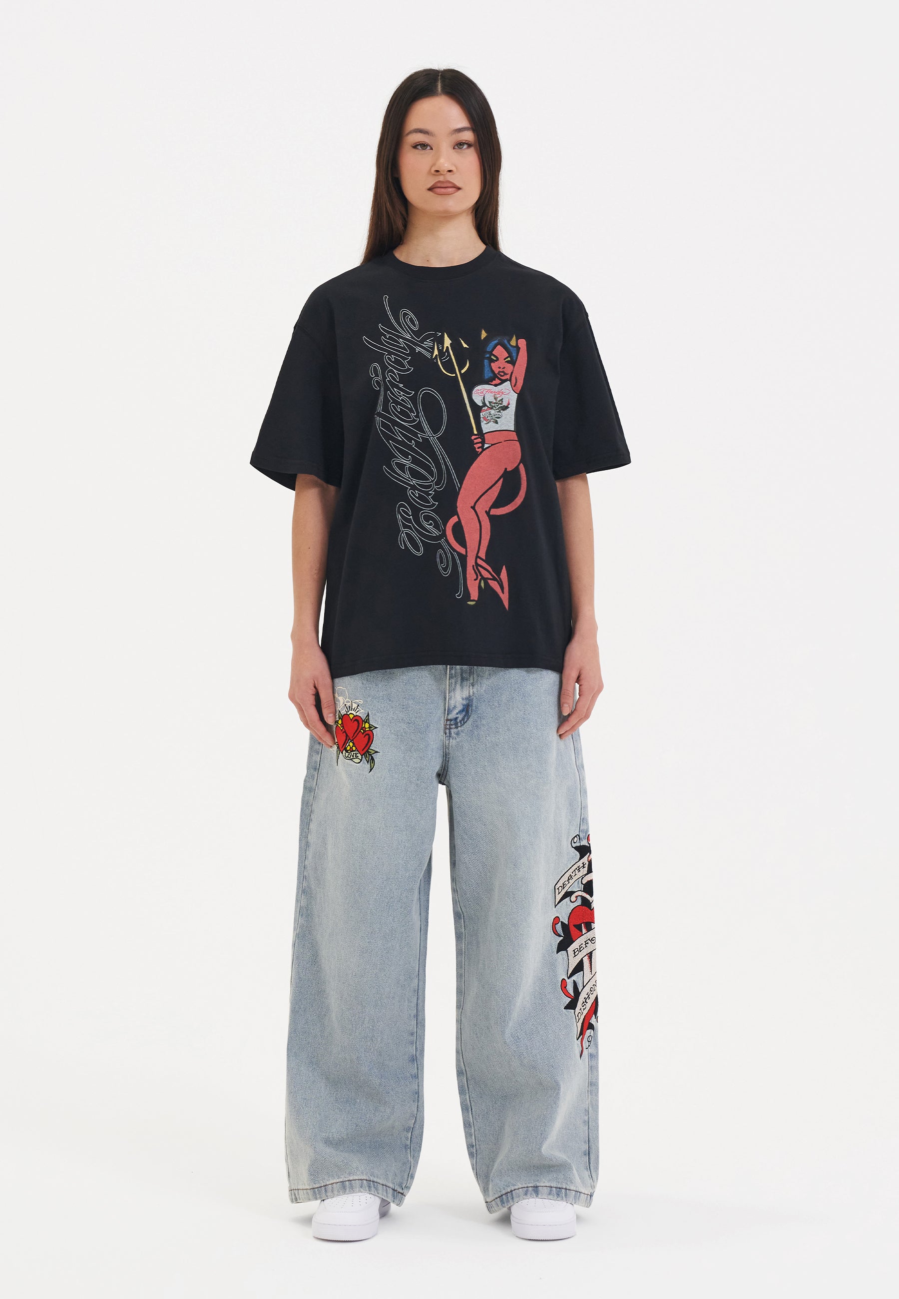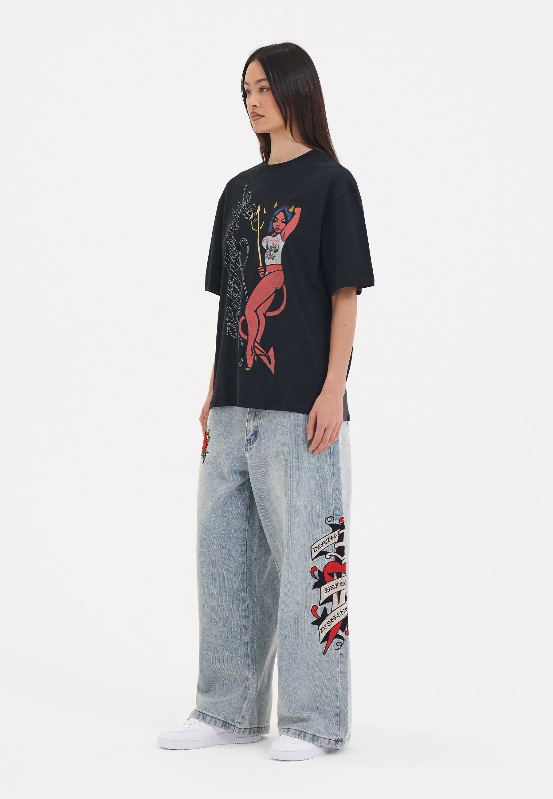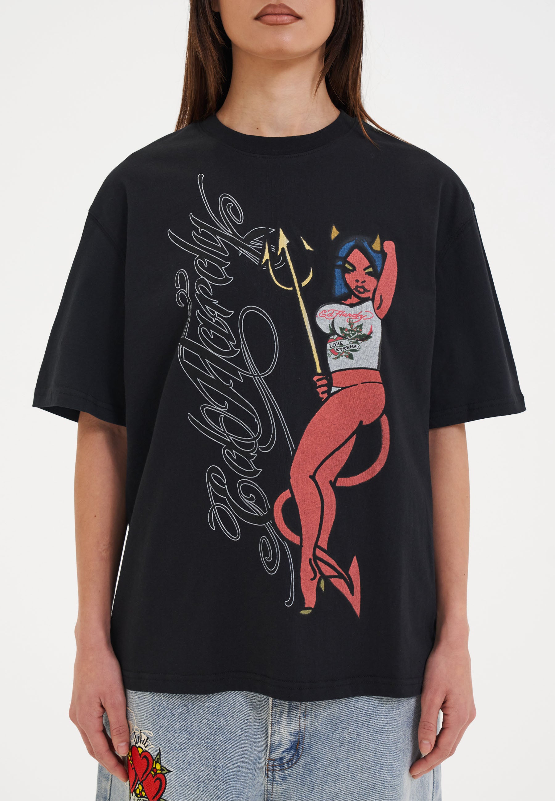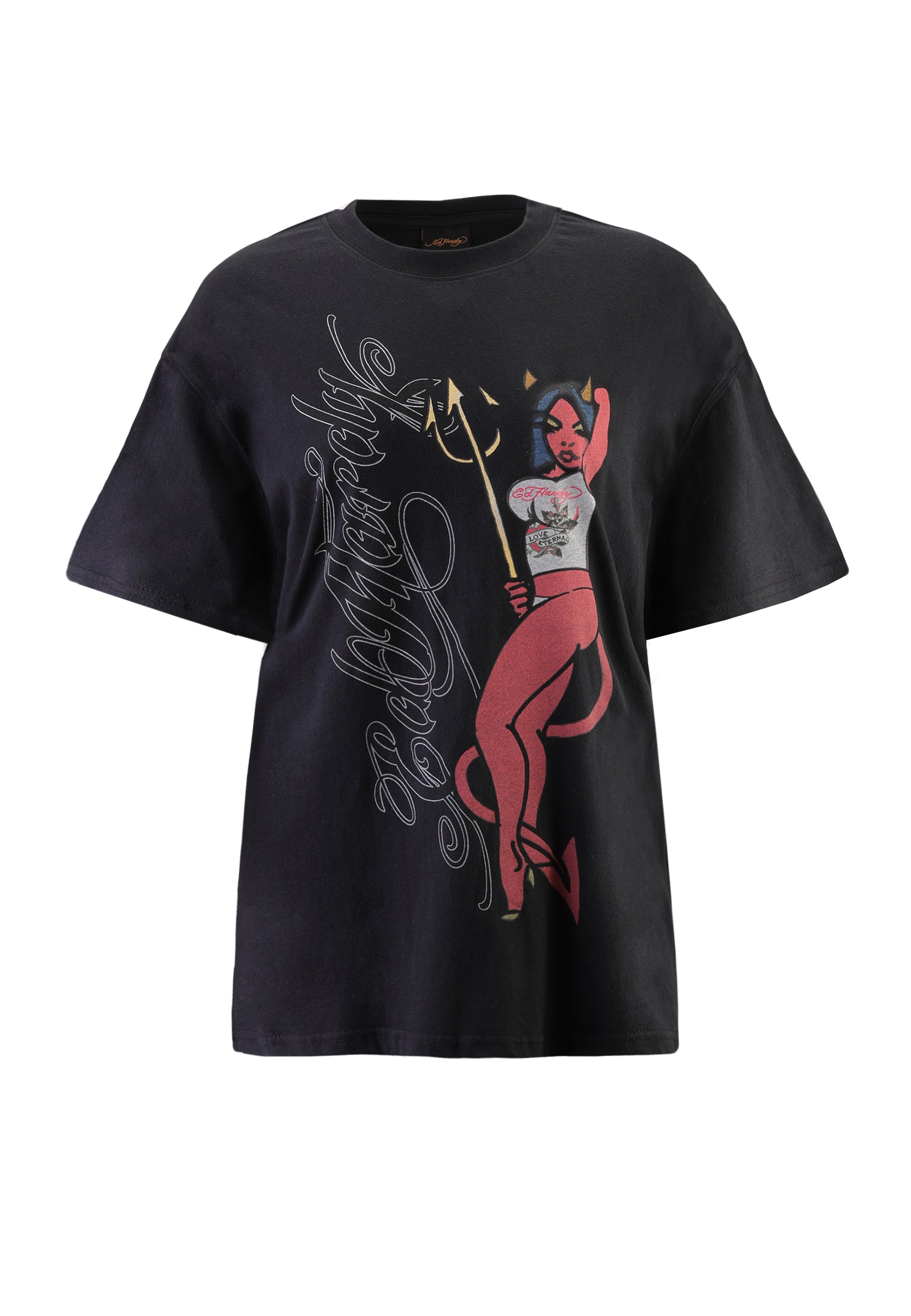 Womens Devil In Details Relaxed Tshirt Top - Black