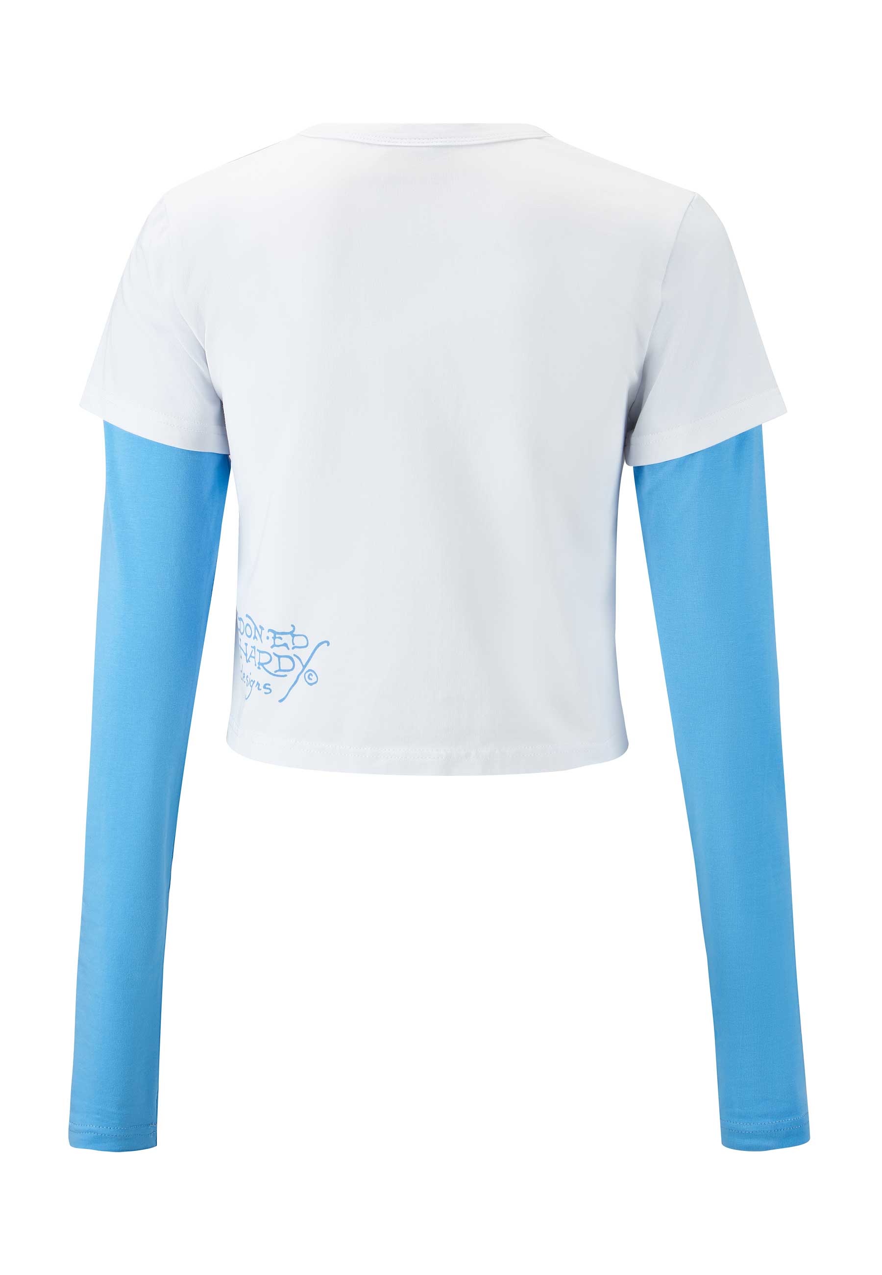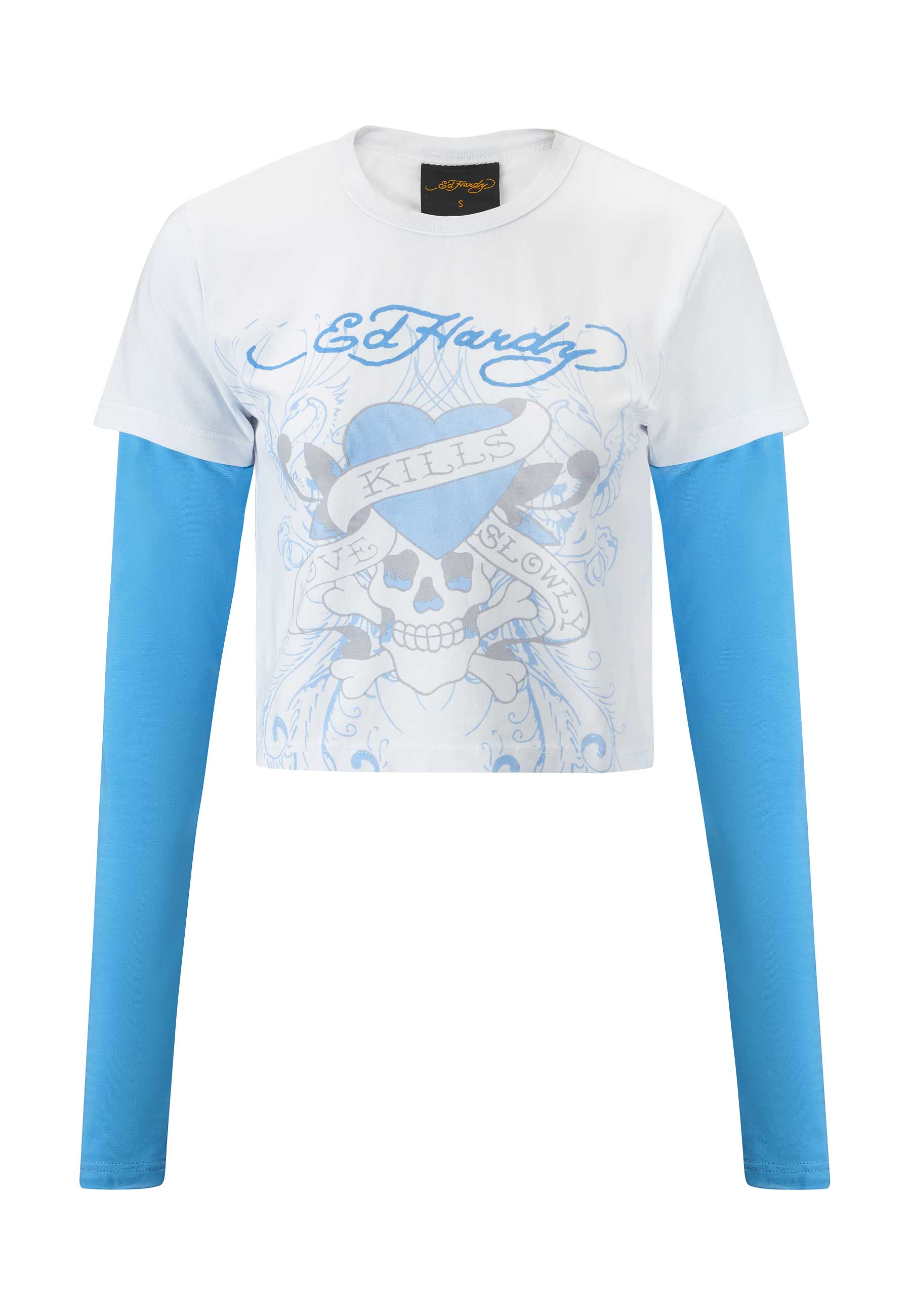 Womens Kill Slowly Double Sleeve Baby Tshirt Top - White/Light Blue