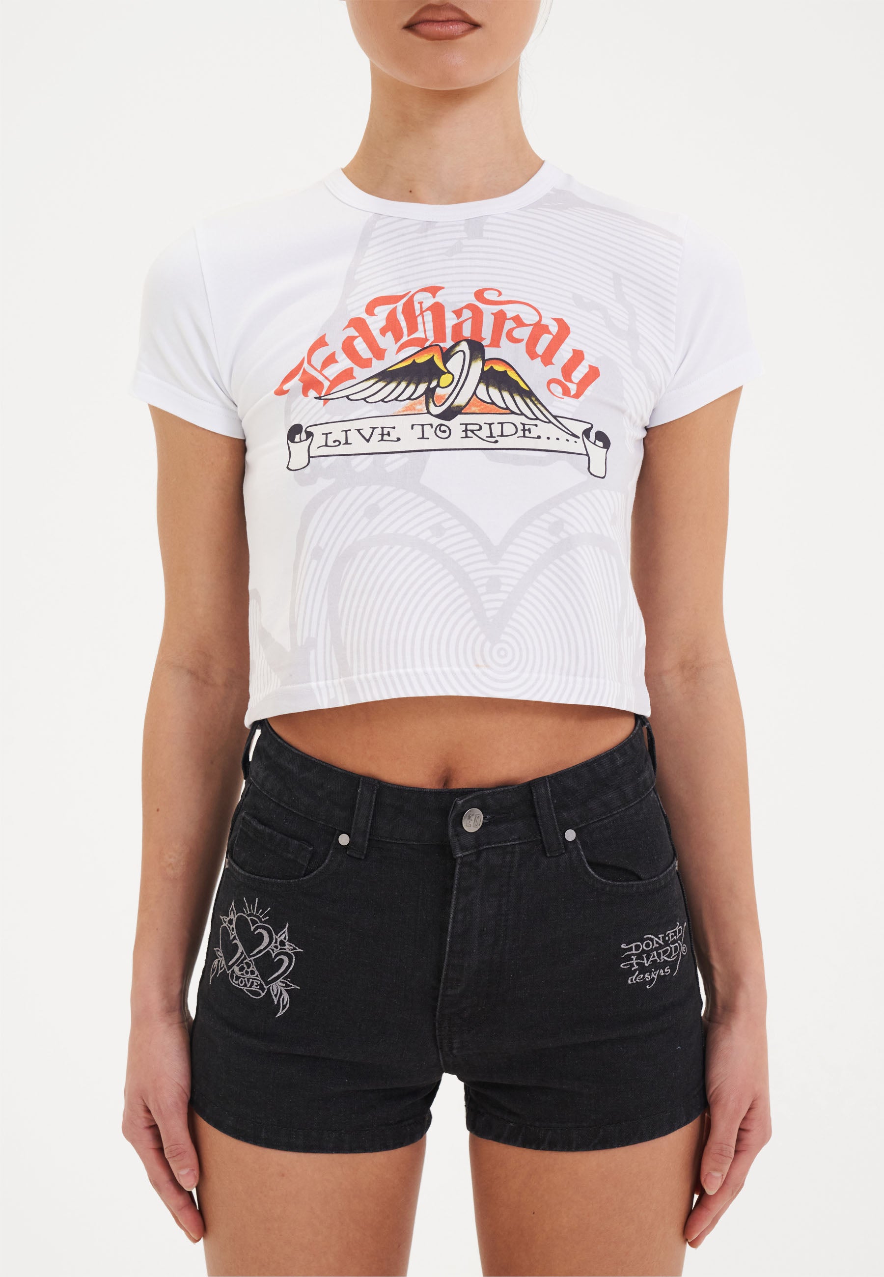 Meet the Live to Ride Tight Fit Baby T-Shirt – a fearless statement featuring Ed Hardy's timeless graphics.