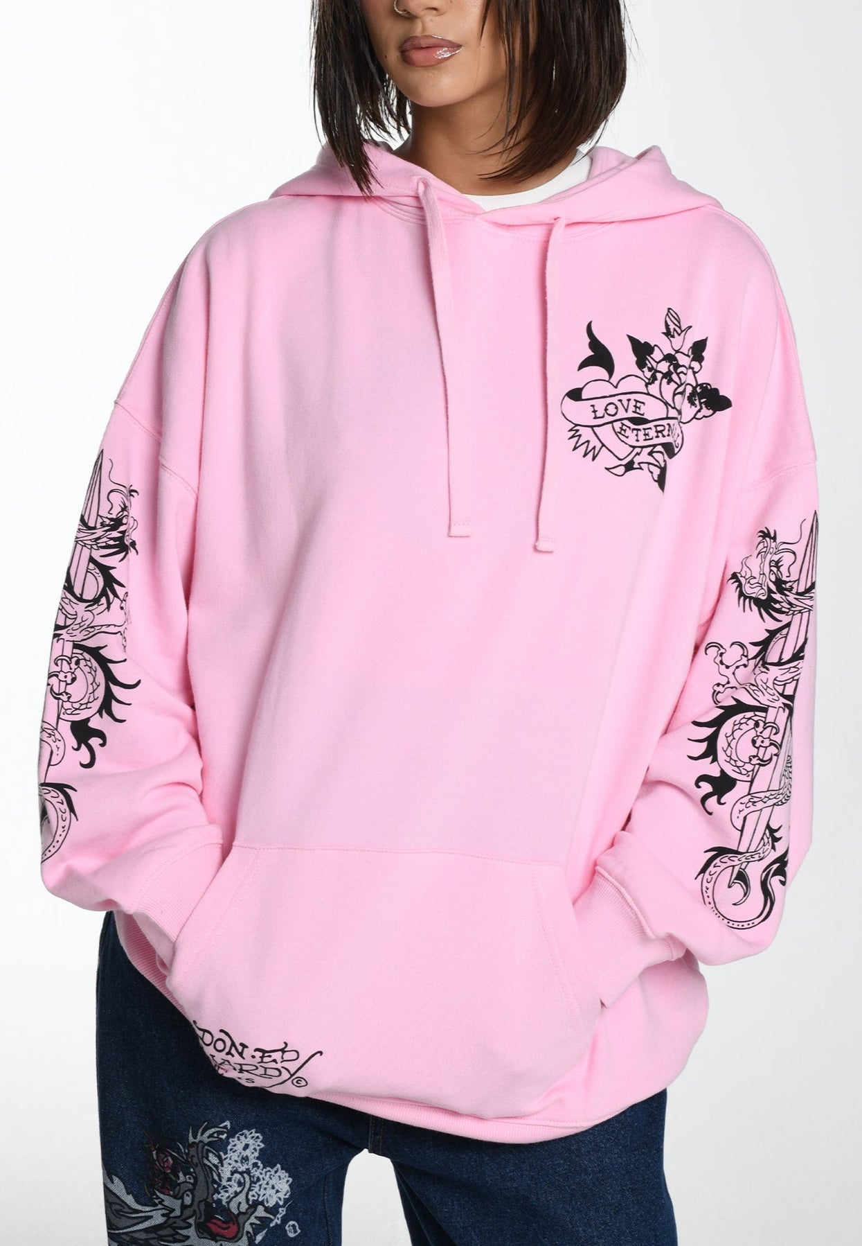 Womens Love Eternal Graphic Relaxed Hoodie - Pink