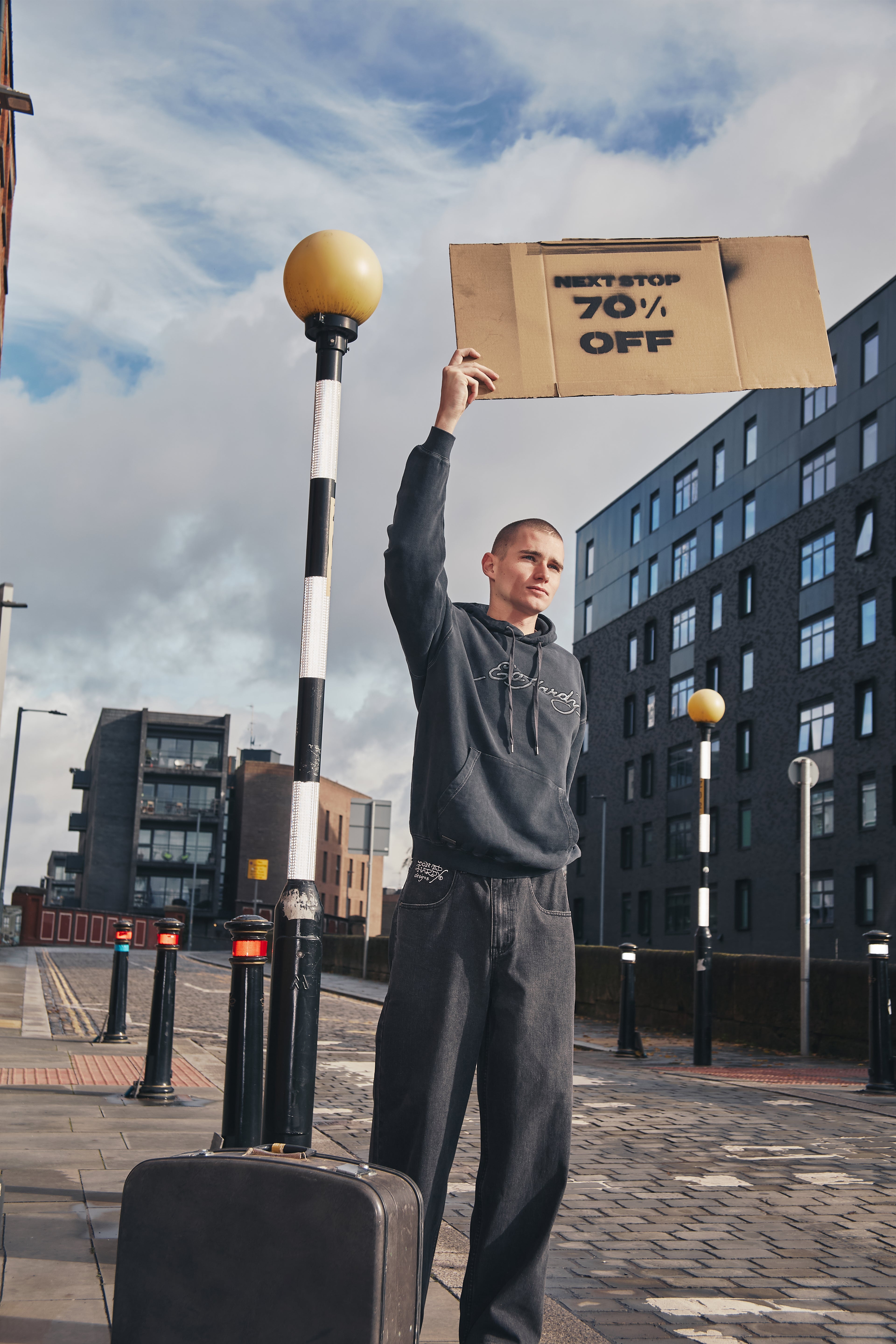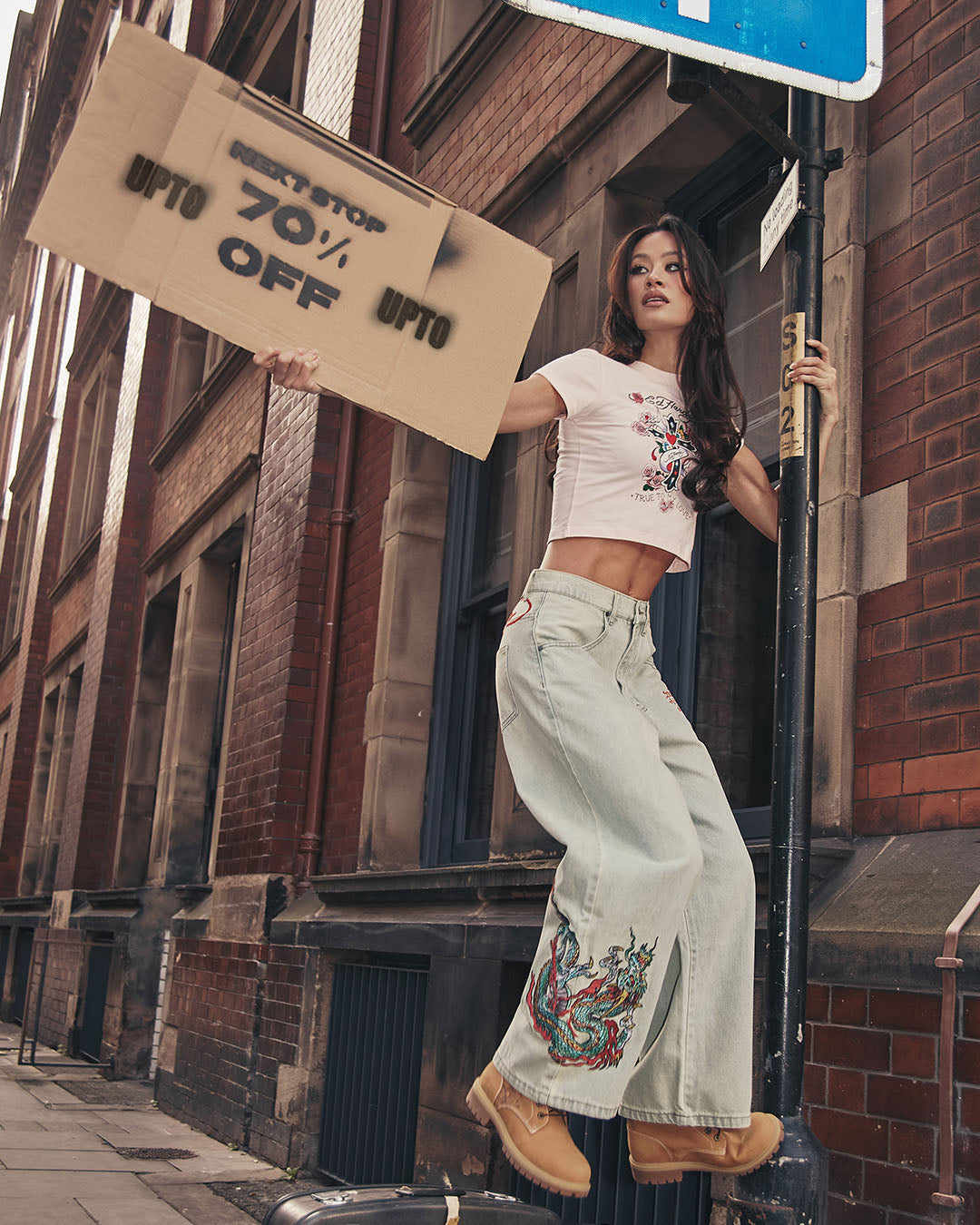 Mens Flaming Skull Relaxed Denim Trousers Baggy Jeans - Black