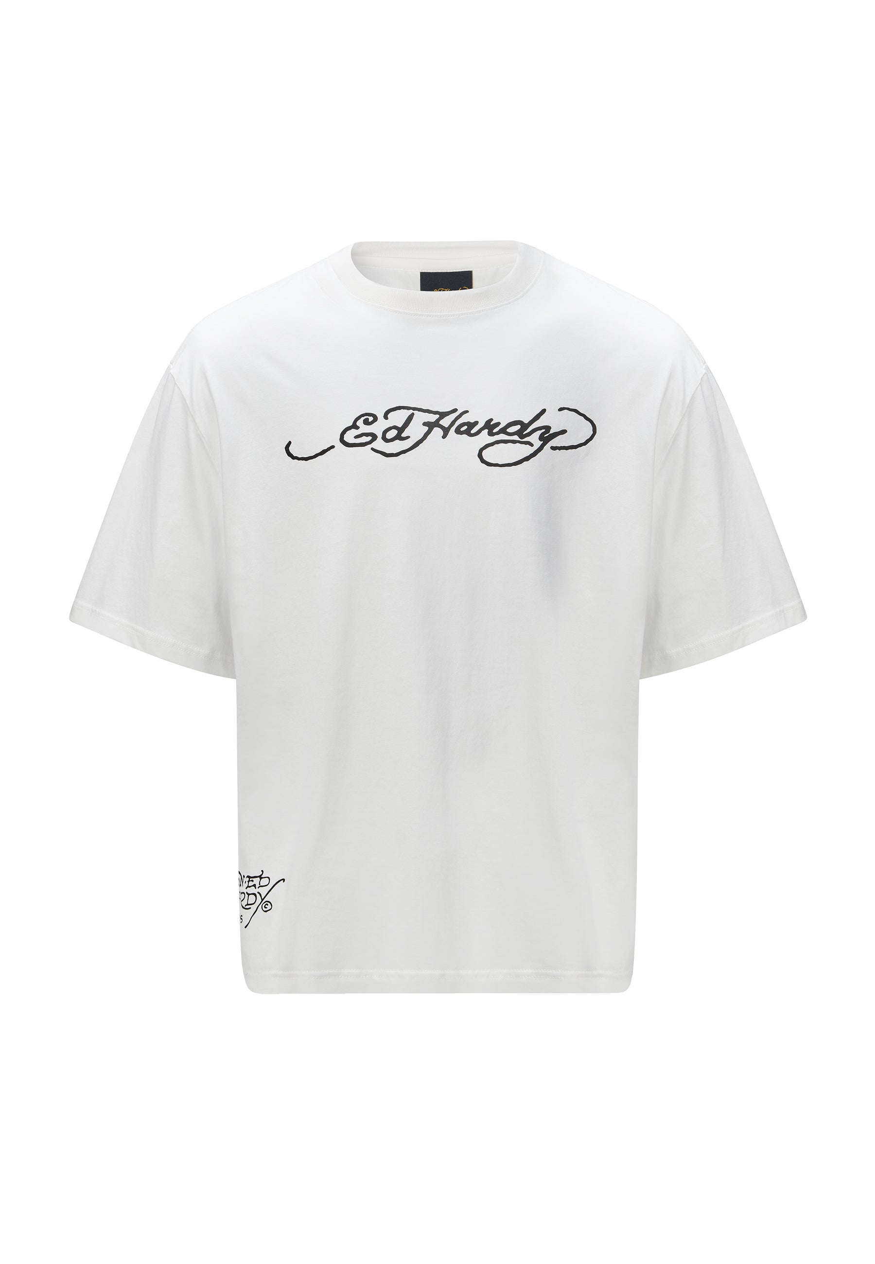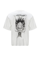 Le t-shirt monochromatique Drags-Back-Tonal en blanc présente l'imprimé tête de dragon original de The Don en niveaux de gris haute définition imprimé à grande échelle dans le dos, ainsi que la signature sur la poitrine et la hanche.