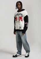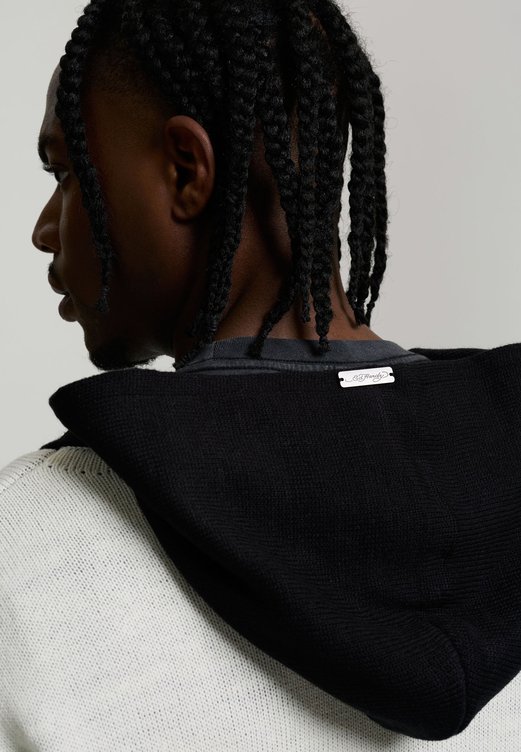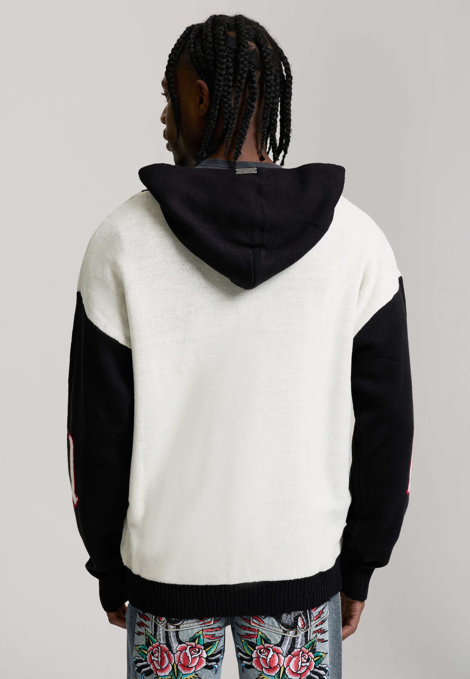 Mens 1971 Knitted Zip Thru Knitted Hoodie in Ecru and Black