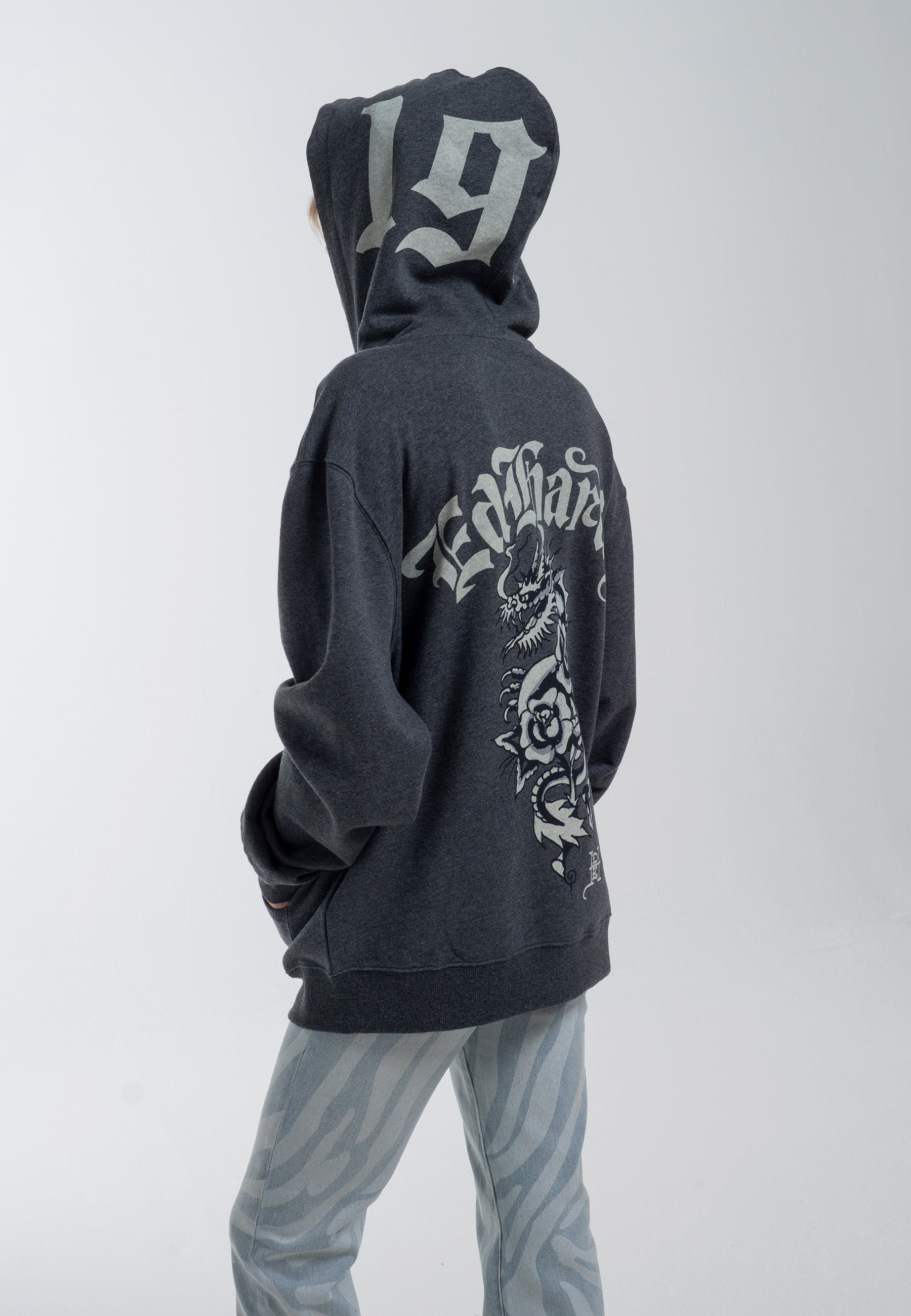 With a talent for weaving threads of inspiration from art, fashion, and music subcultures into his designs, the Dragon Rose Zip-Thru Hoodie exudes a Gothic essence that has always been a hallmark of Ed's archive.