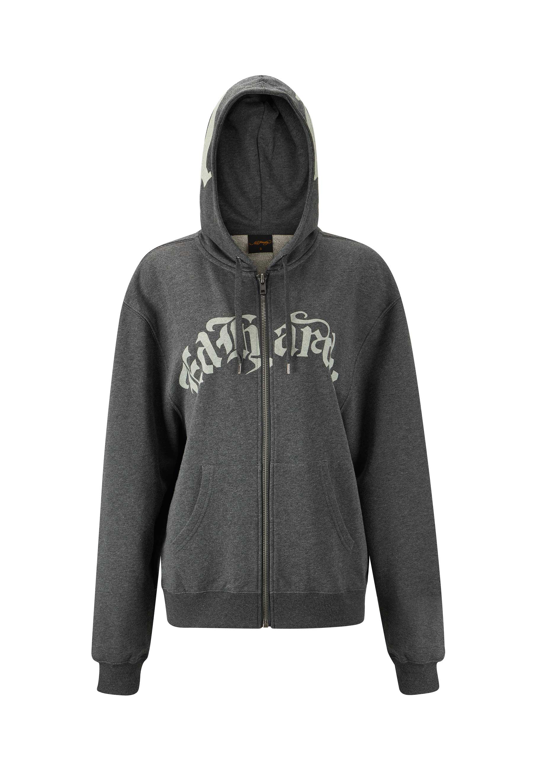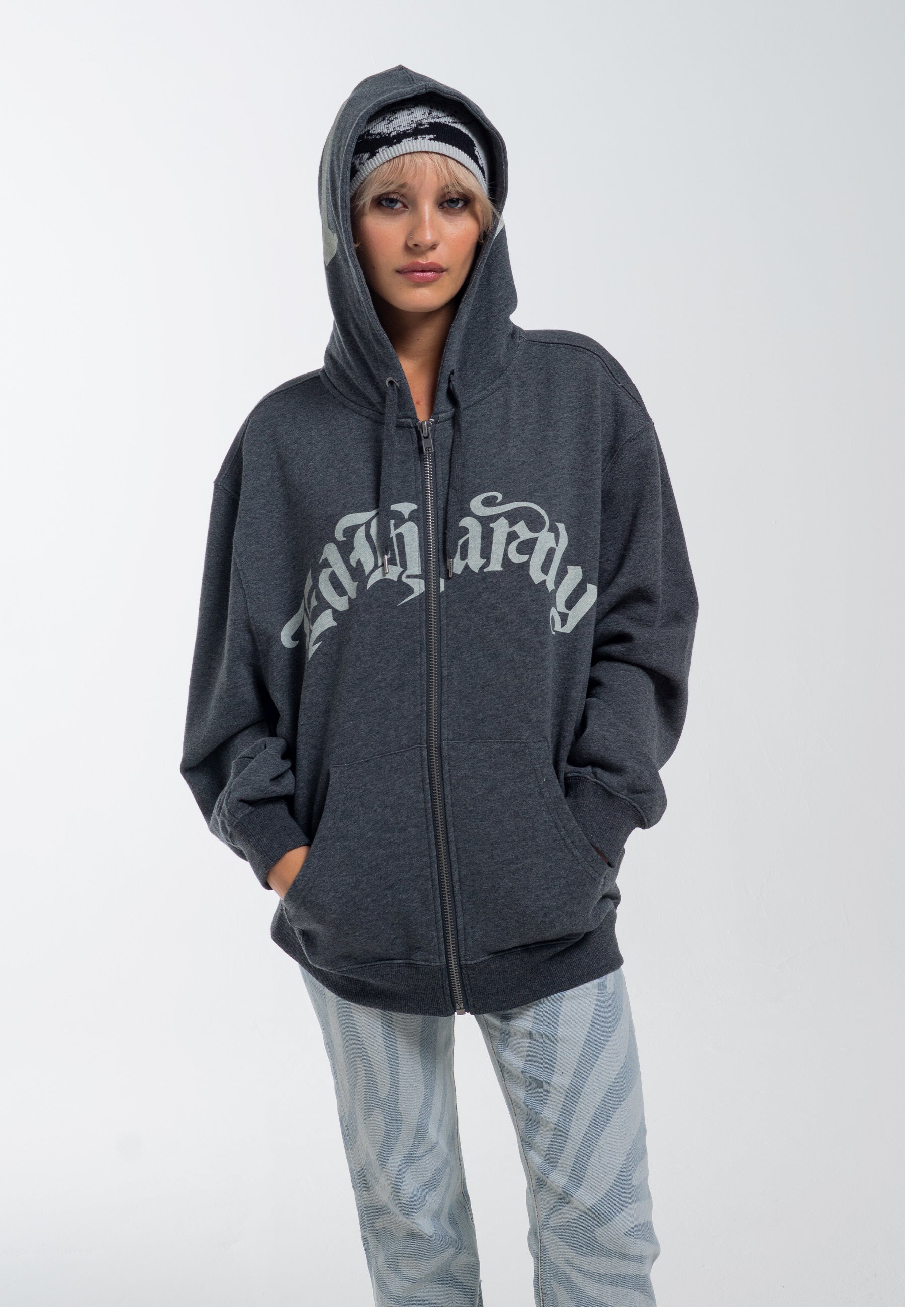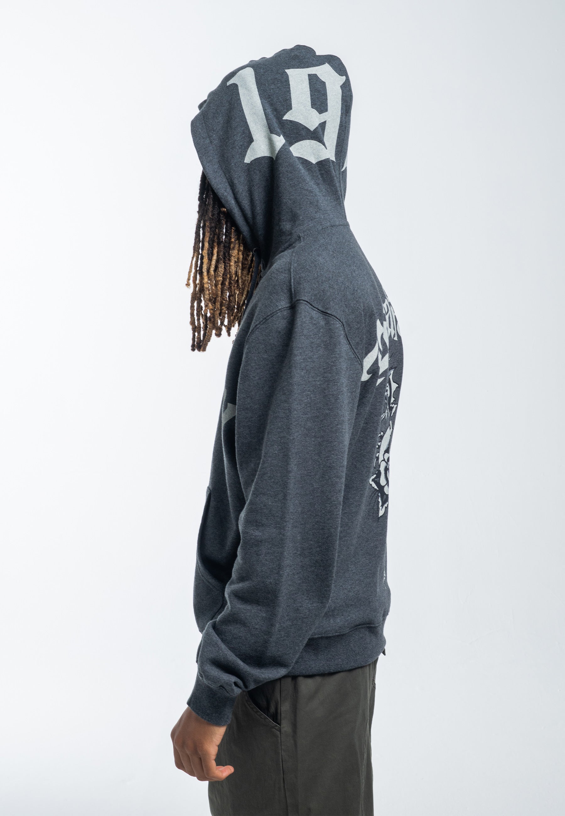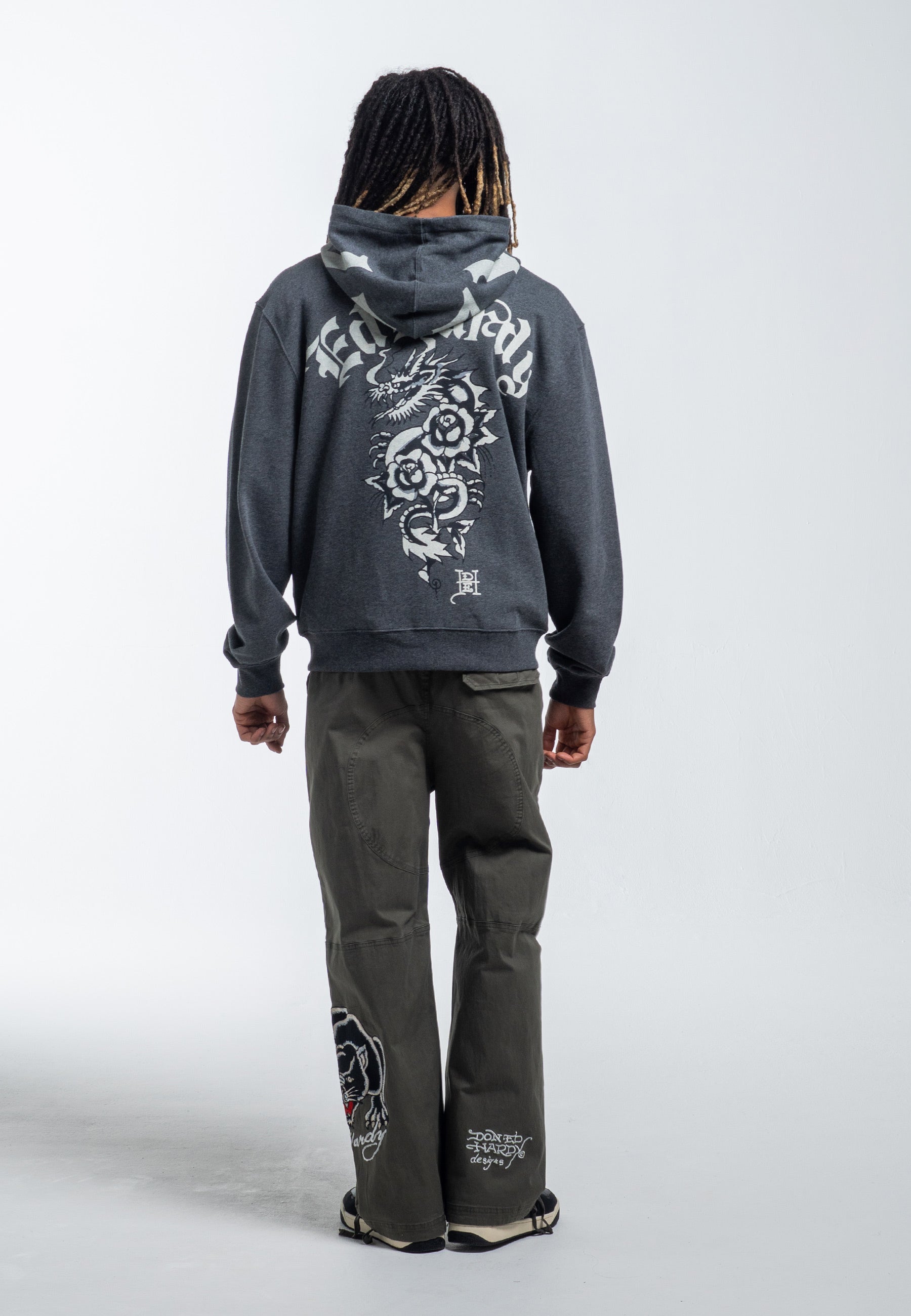 Womens Dragon Rose Zip Through Hoodie - Charcoal Marl
