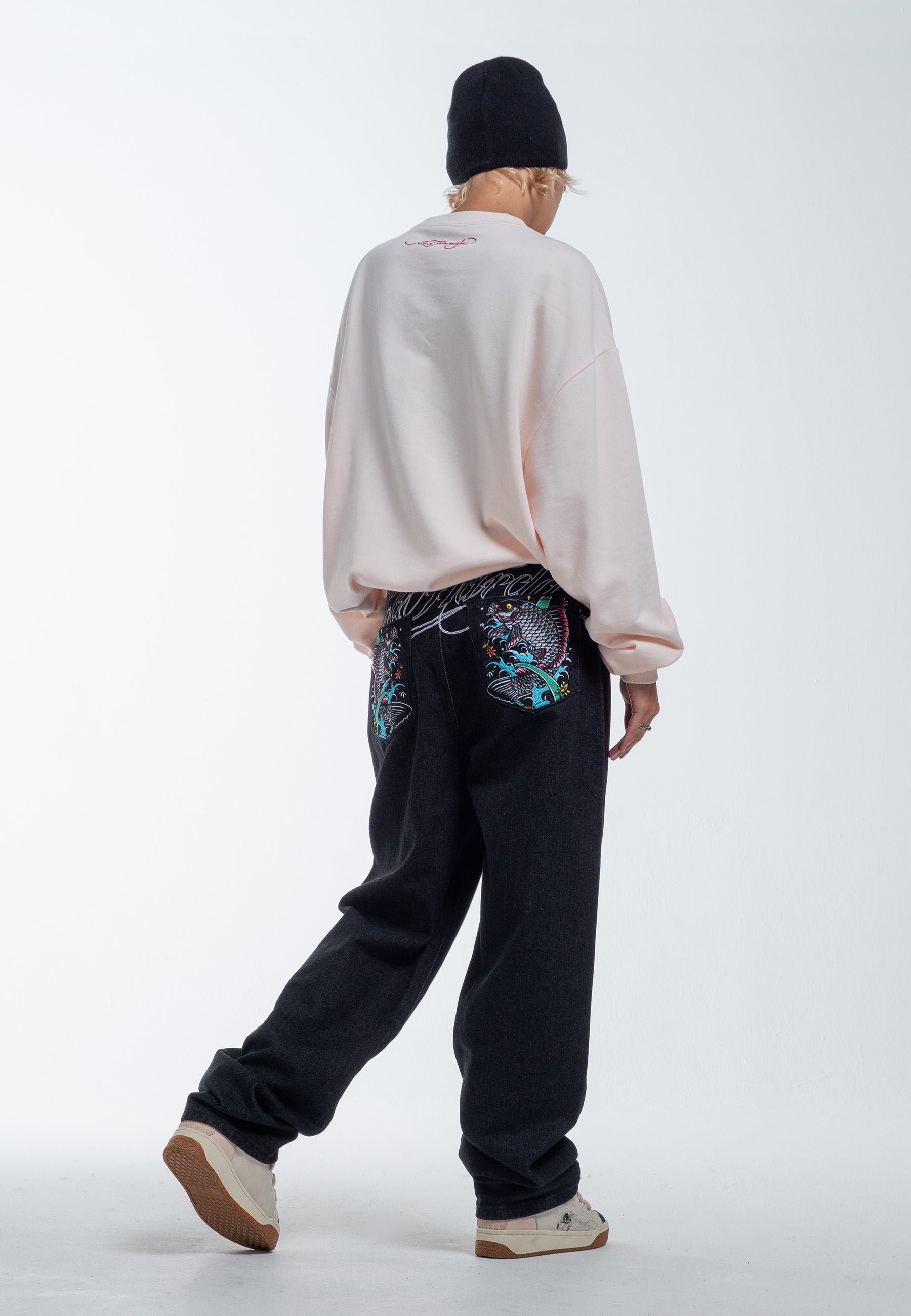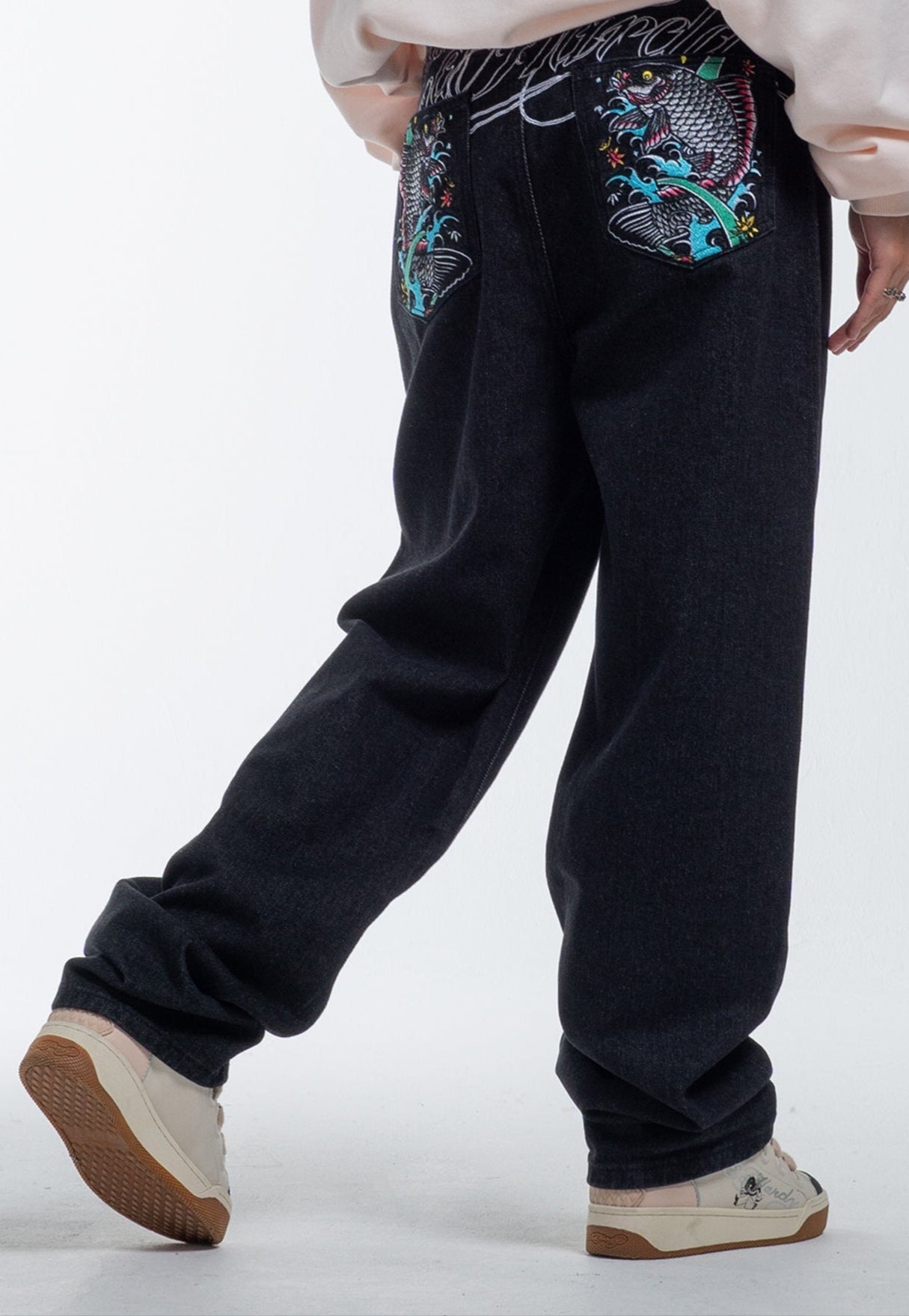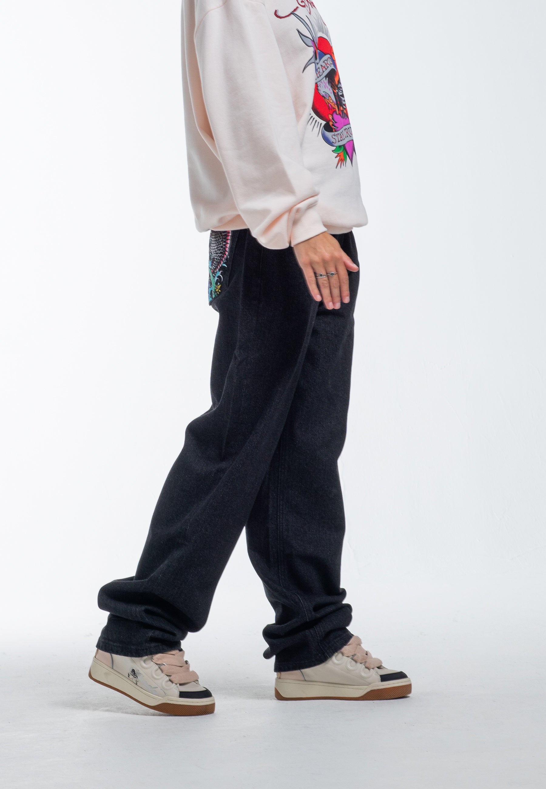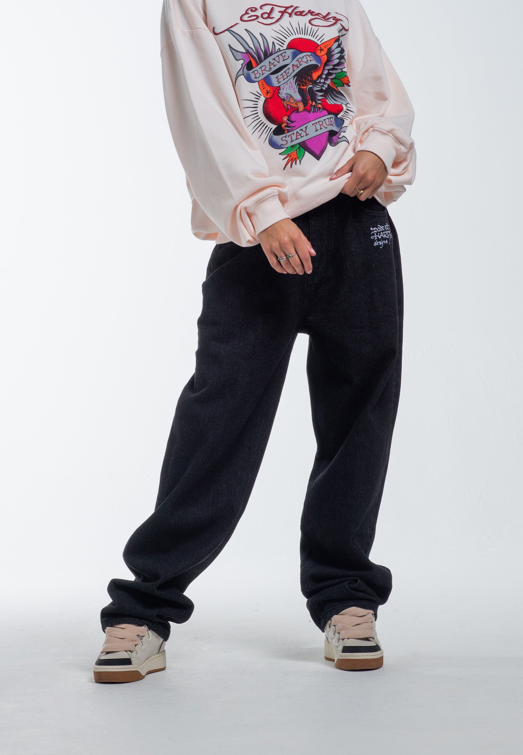 Womens Koi Island Relaxed Denim Trousers Jeans - Black