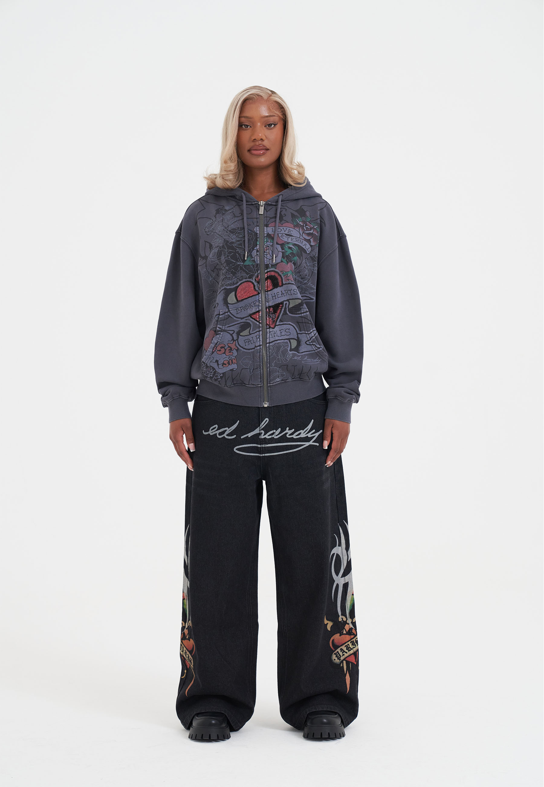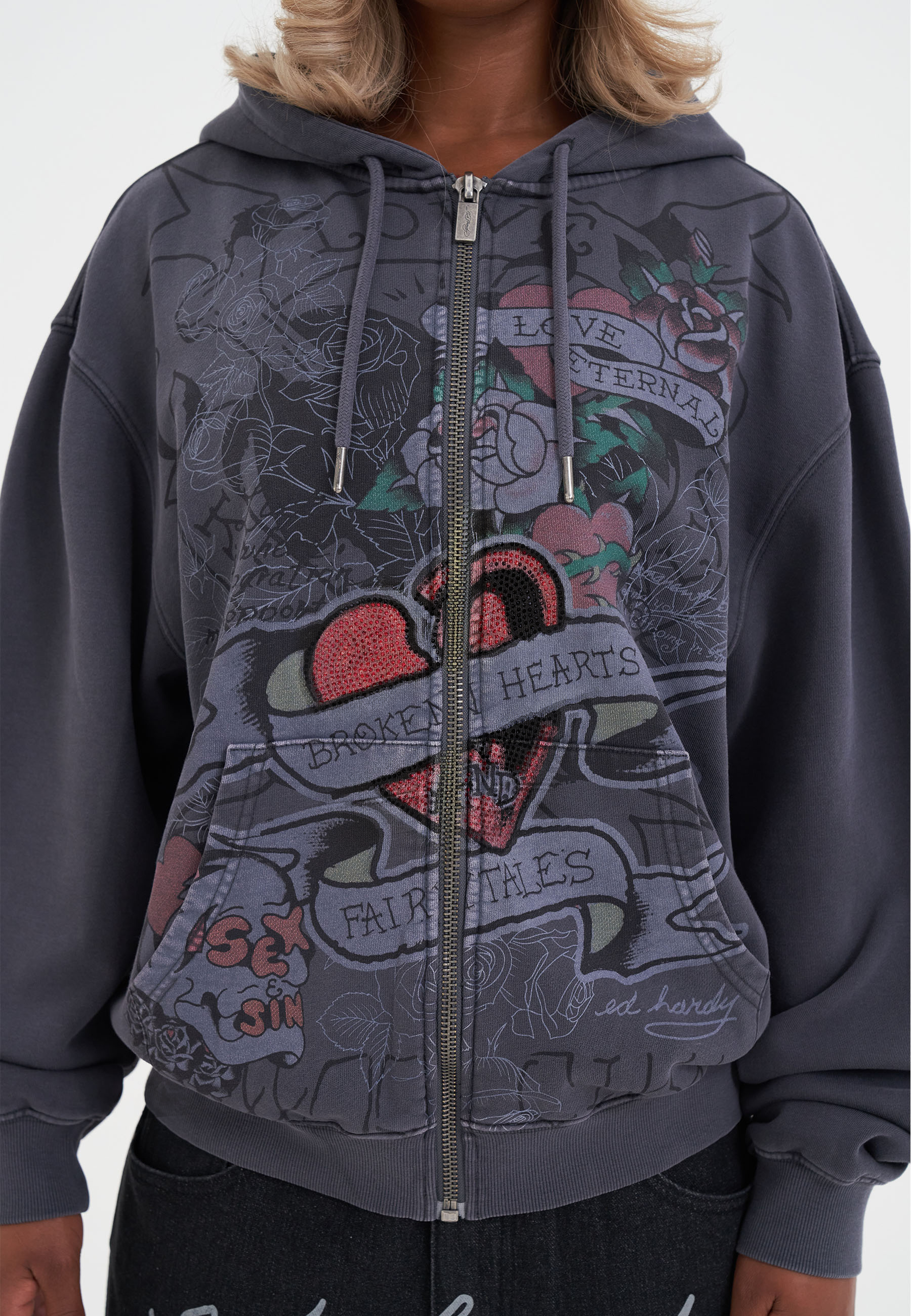 Womens Broken Hearts And Fairytales Zip Thru Hoodie - Charcoal