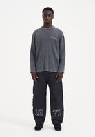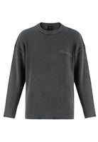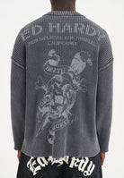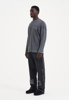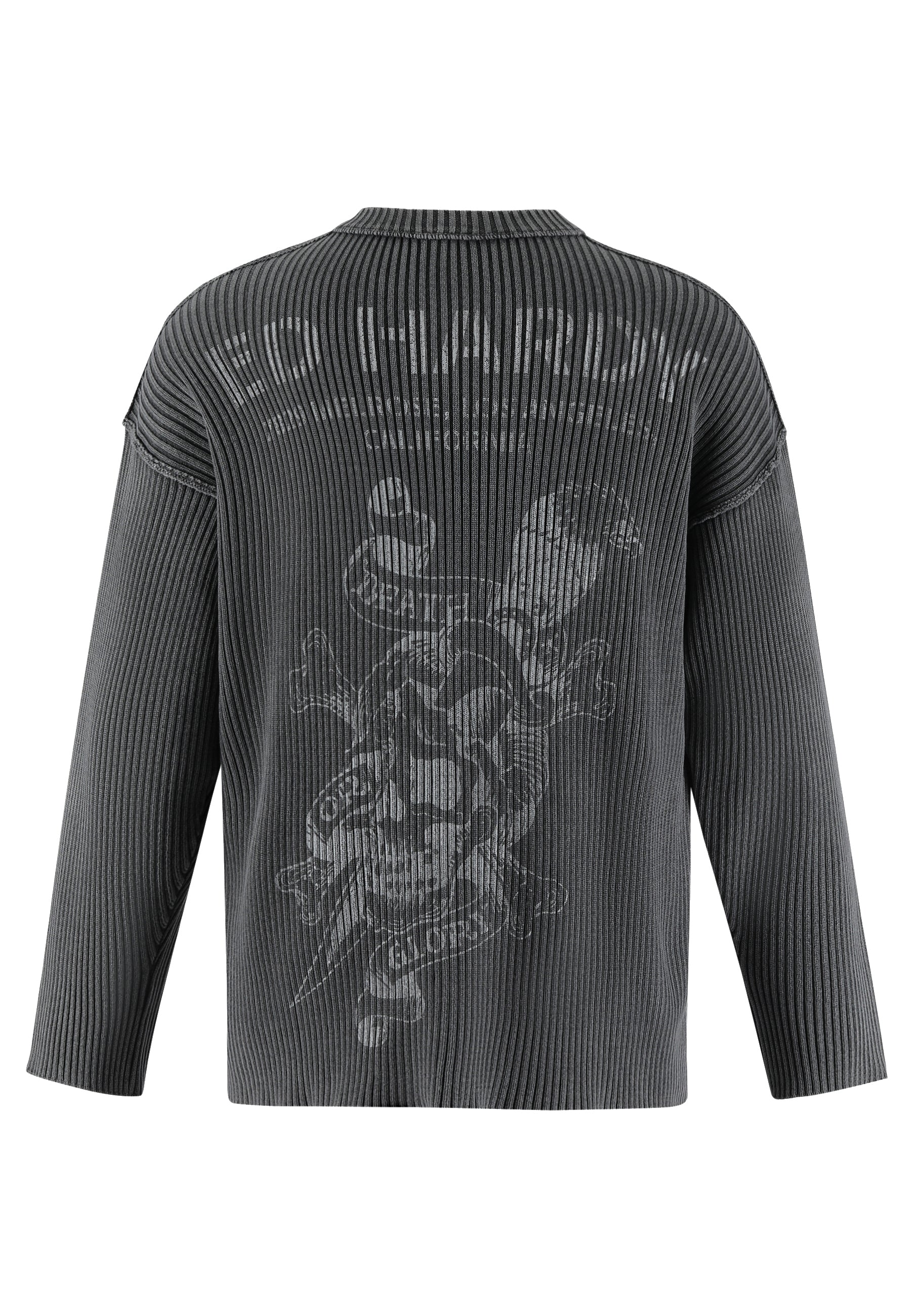 Mens Acid Wash Skull Knitted Jumper - Charcoal