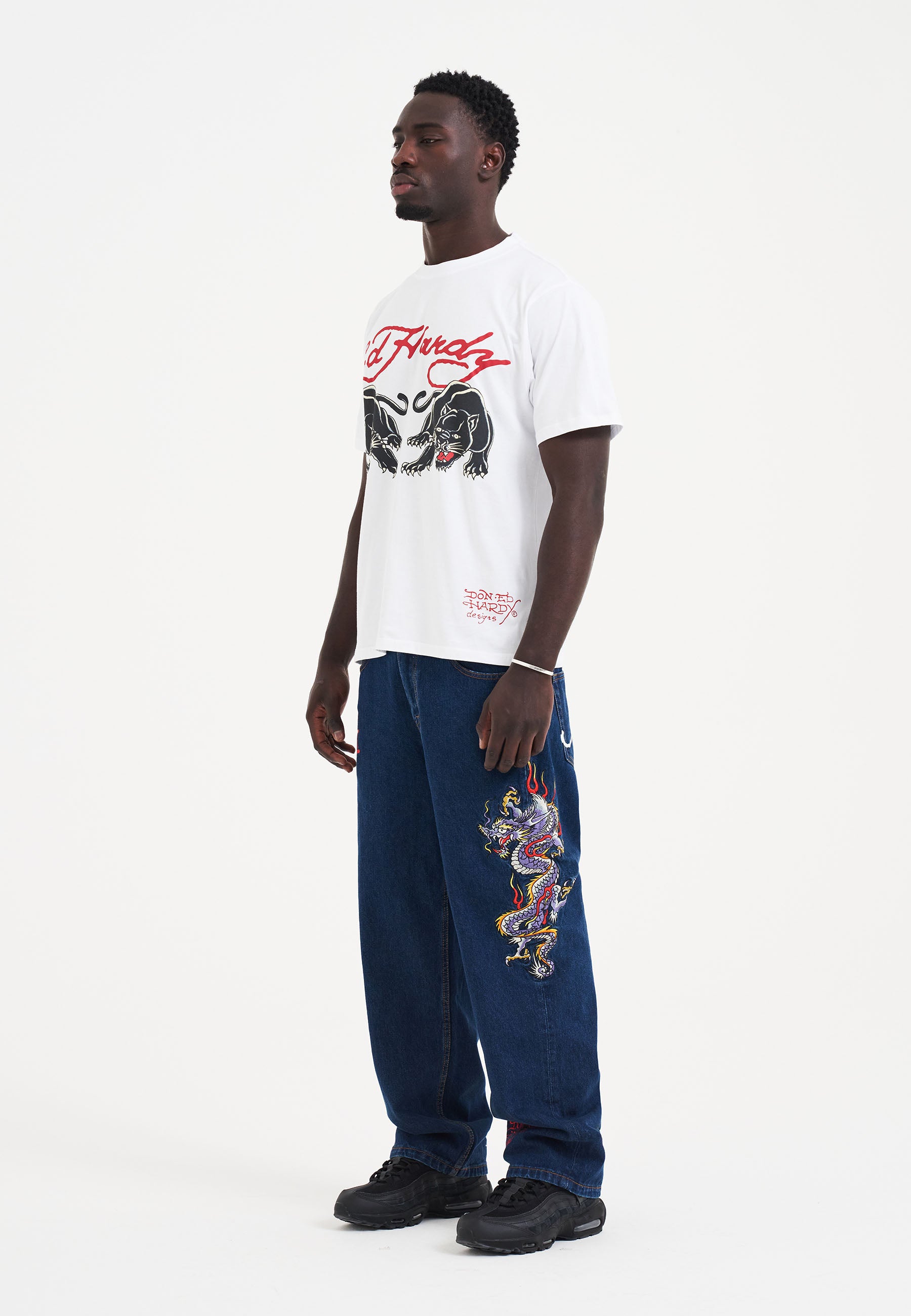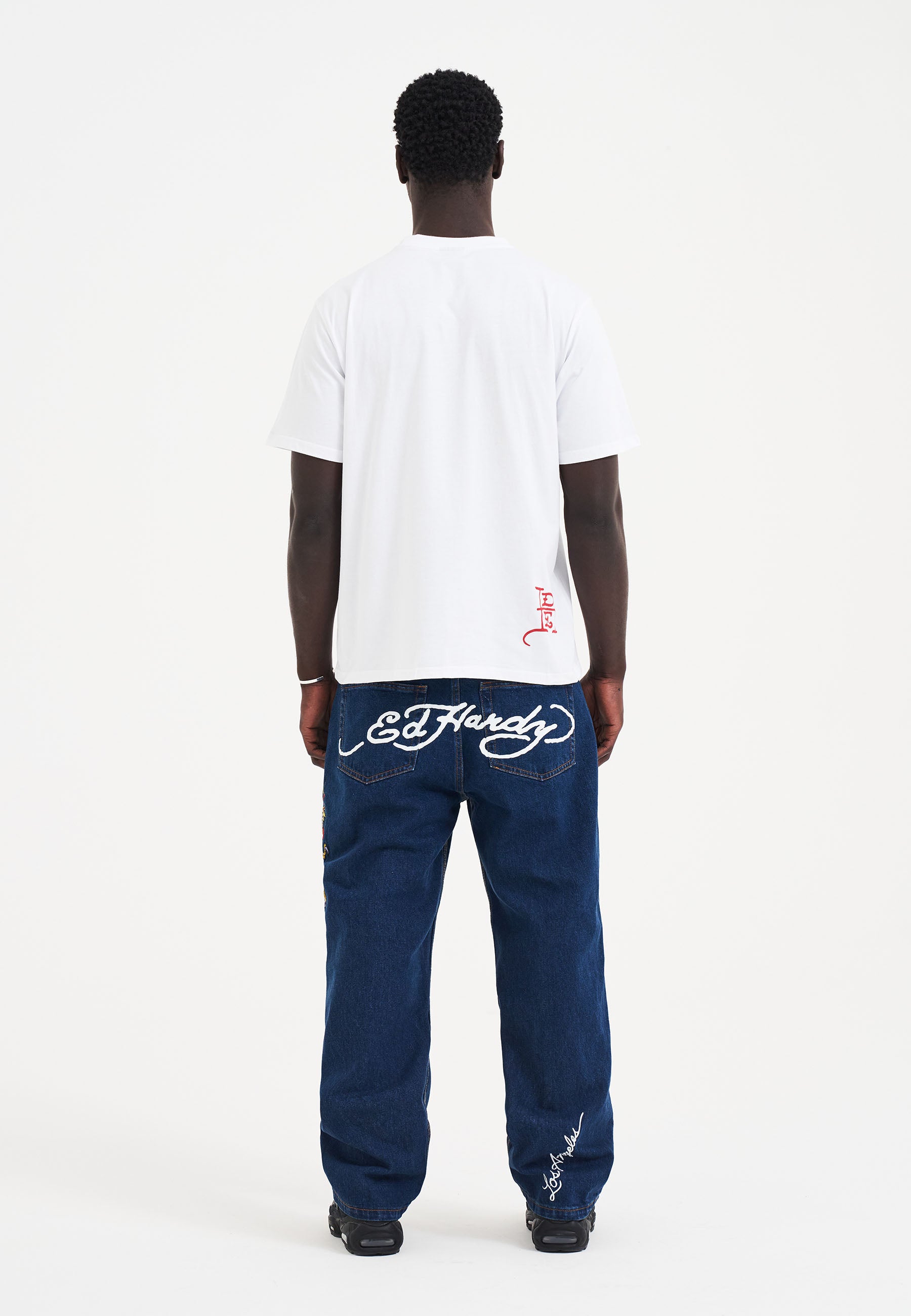 Womens Snake & Dagger Tonal Relaxed Denim Trousers Jeans - Indigo
