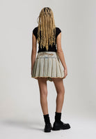 Womens Contrast Stitch Pleated Rose Regular Skirt - Bleach Denim