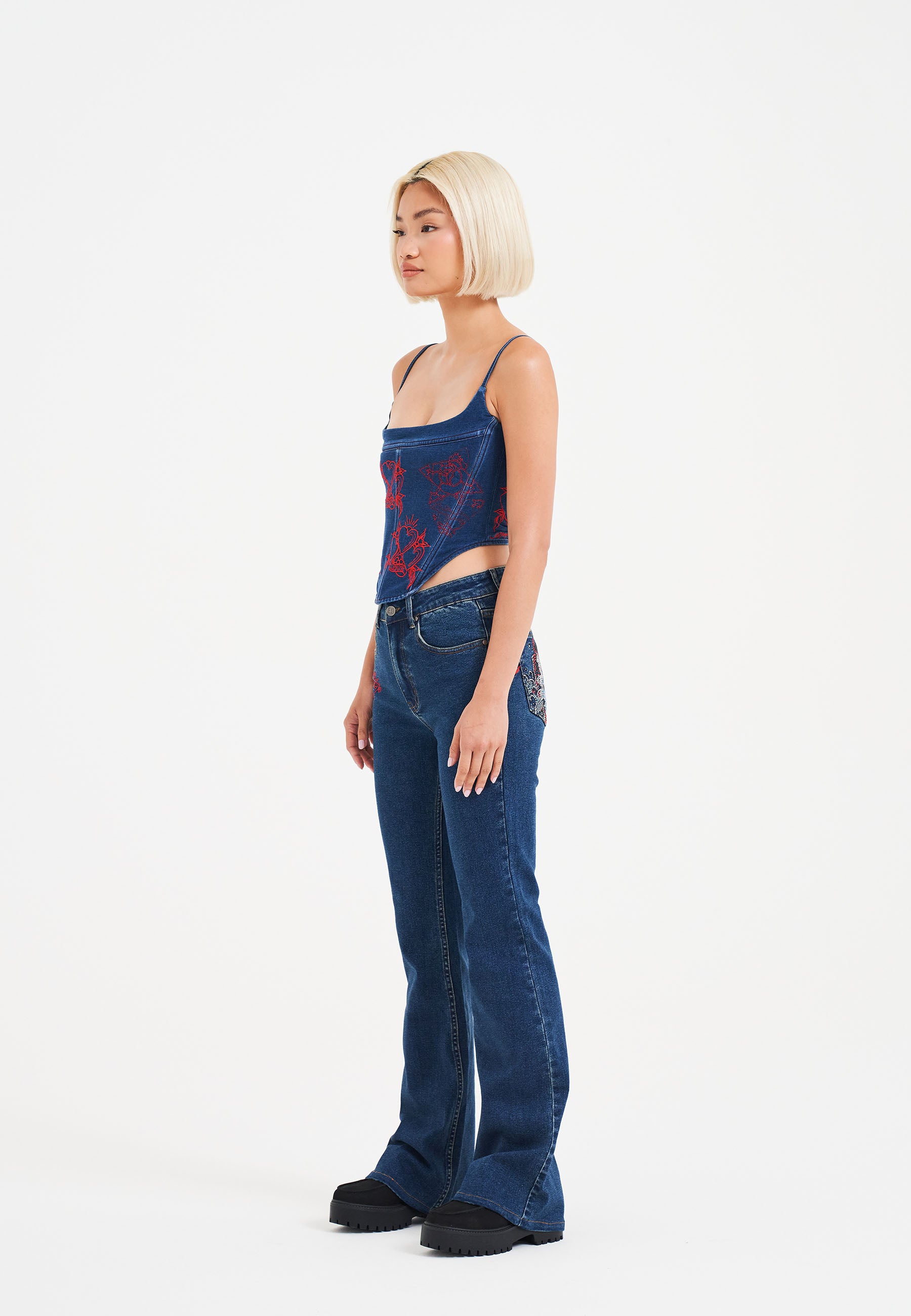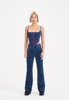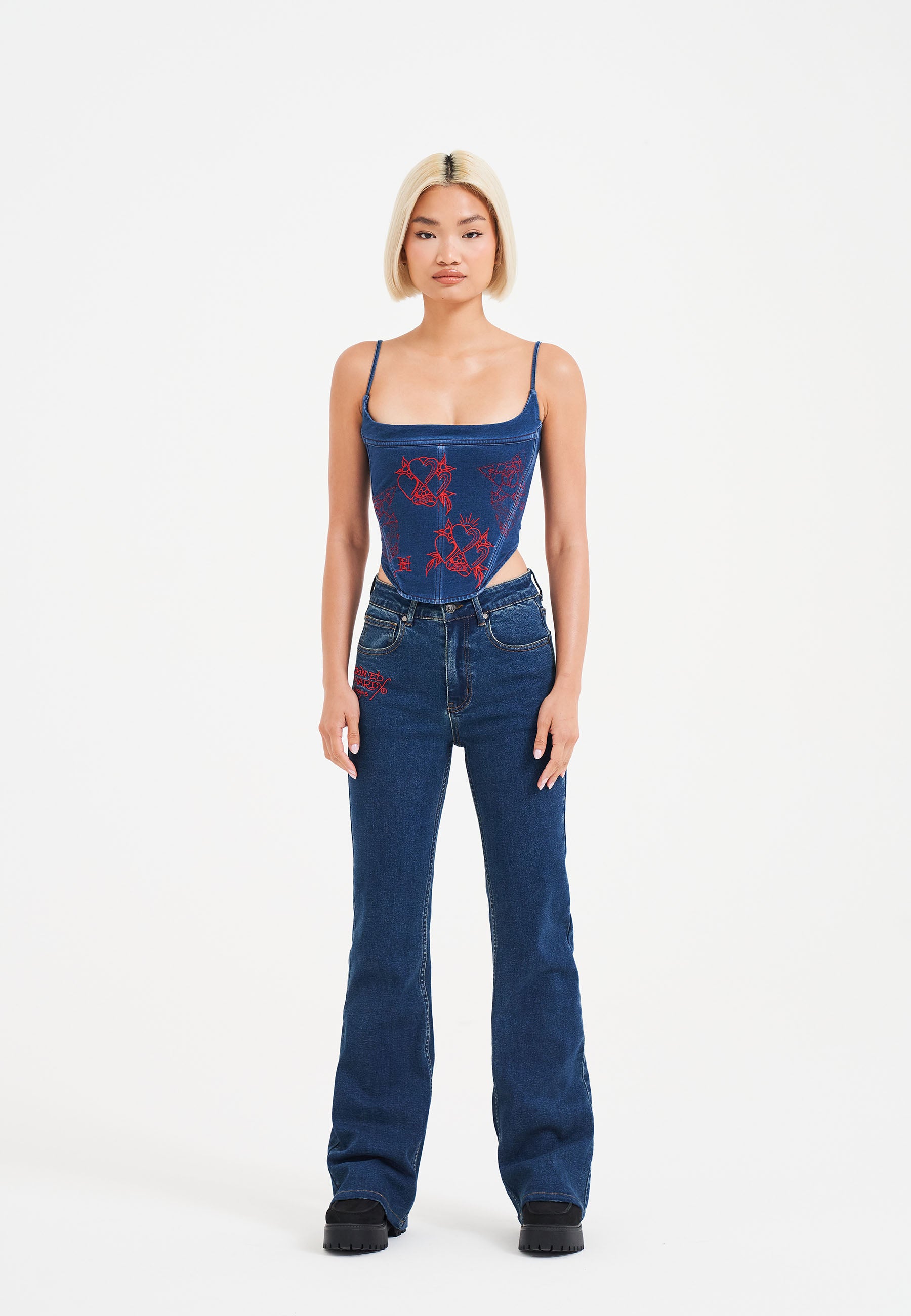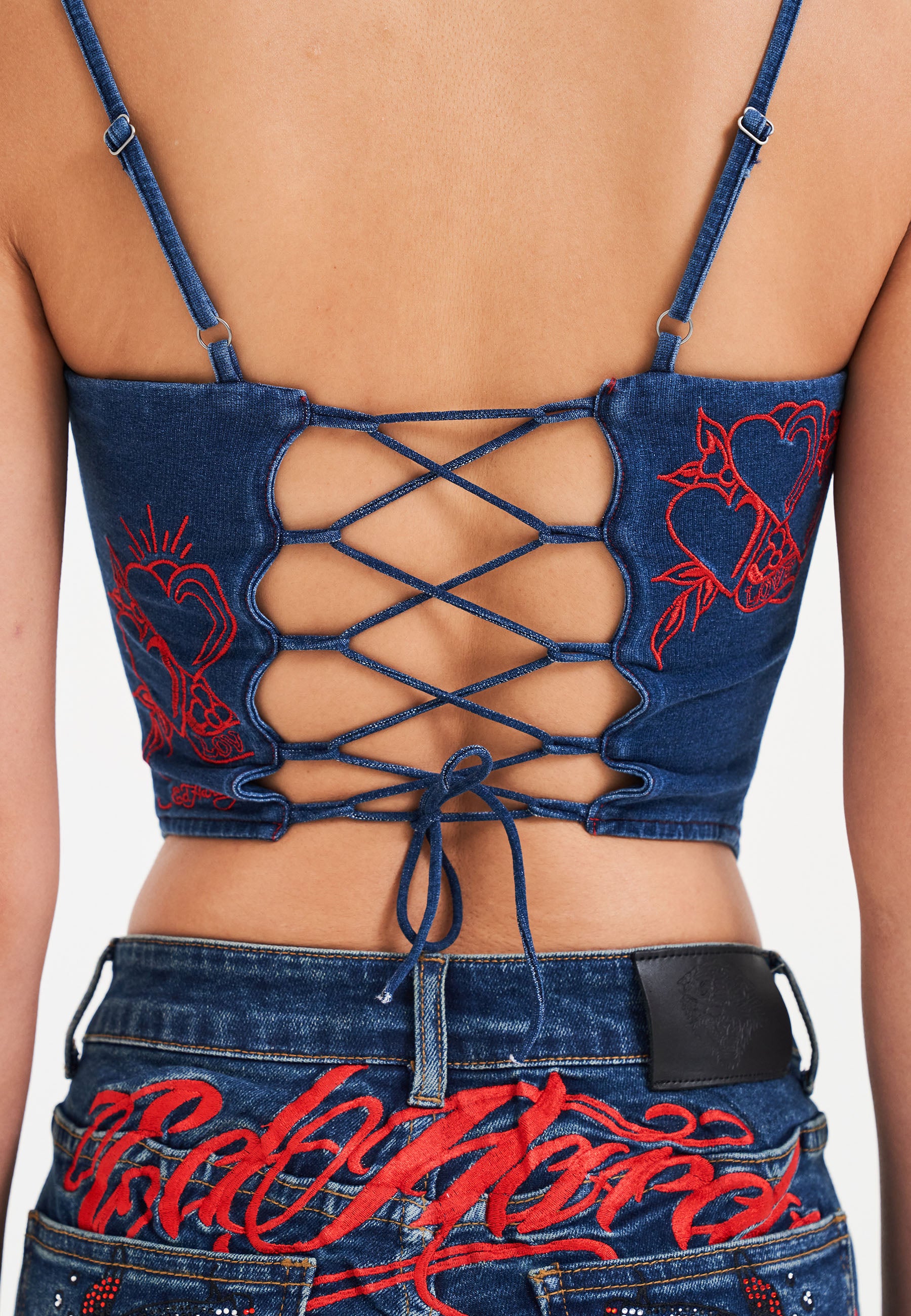 Womens Rouge Hearts Denim Corset Top - Indigo