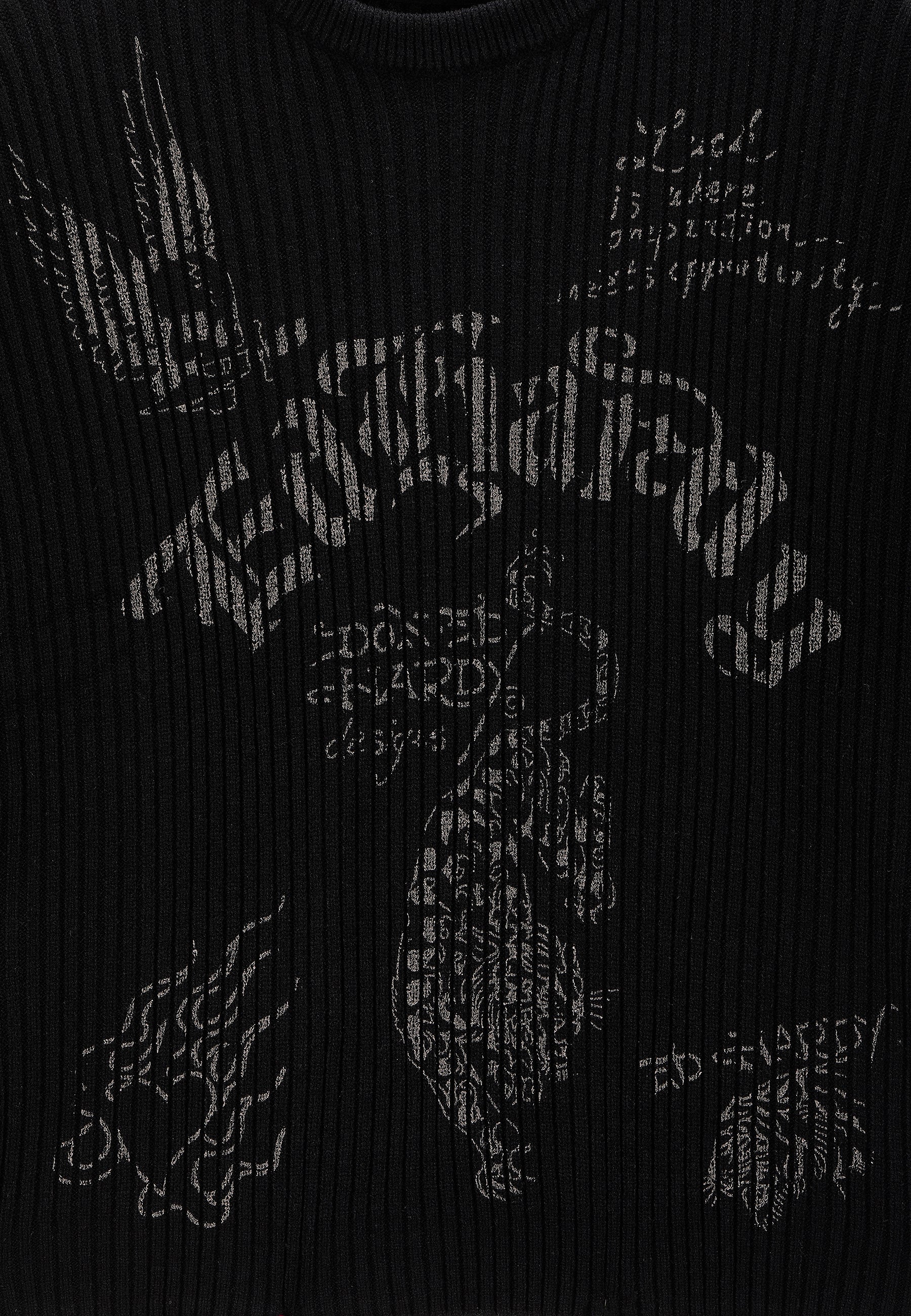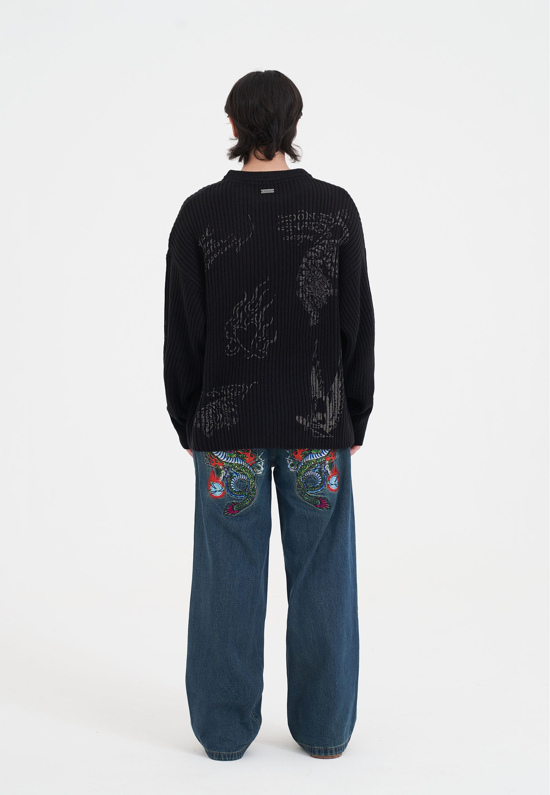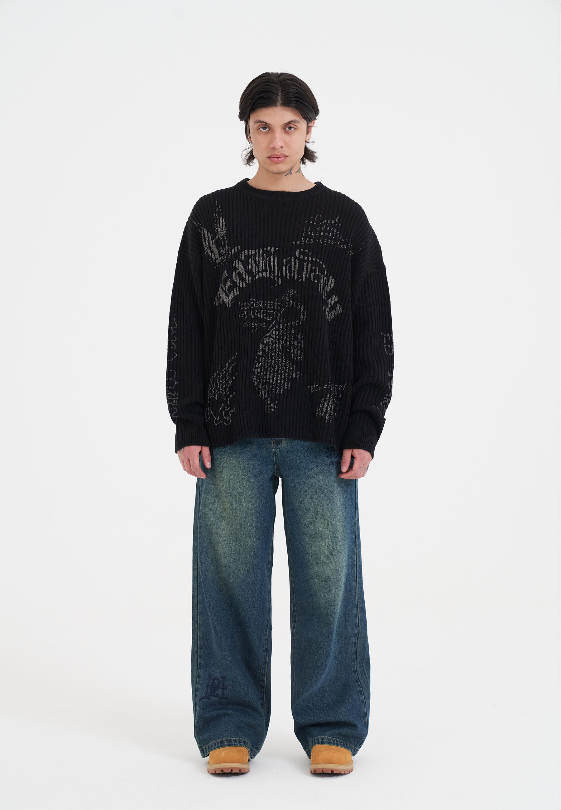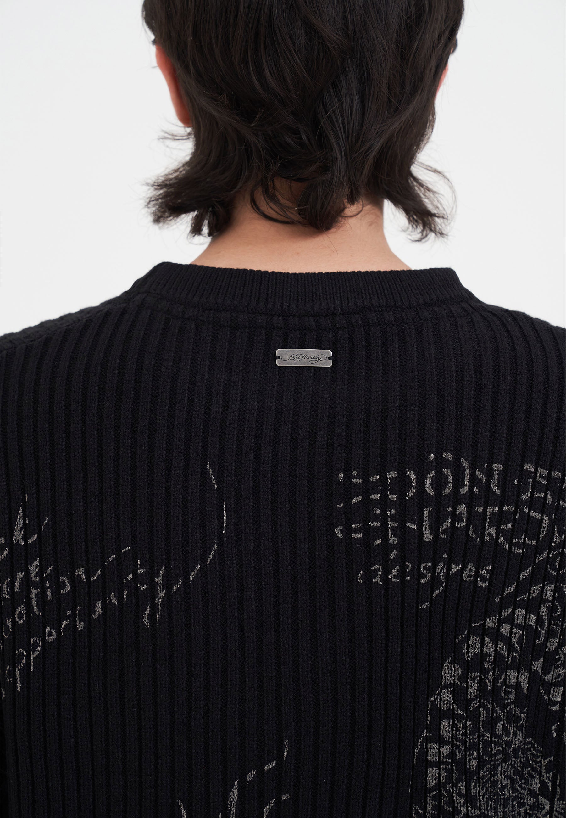 Mens Gothic Ribbed Knit Crew Jumper - Black