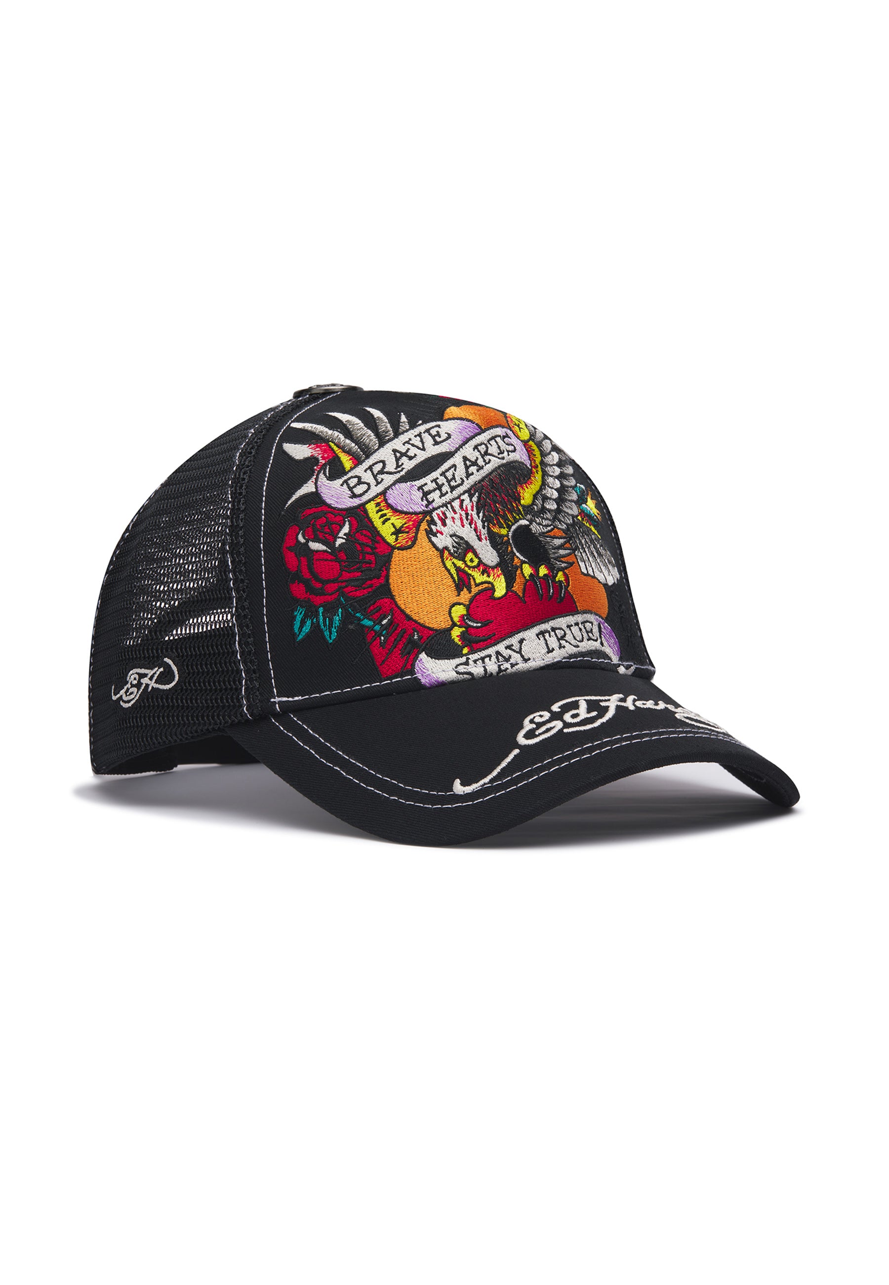 Unisex Brave Hearts Contrast Stitch 5 Panel Trucker Cap - Black/White