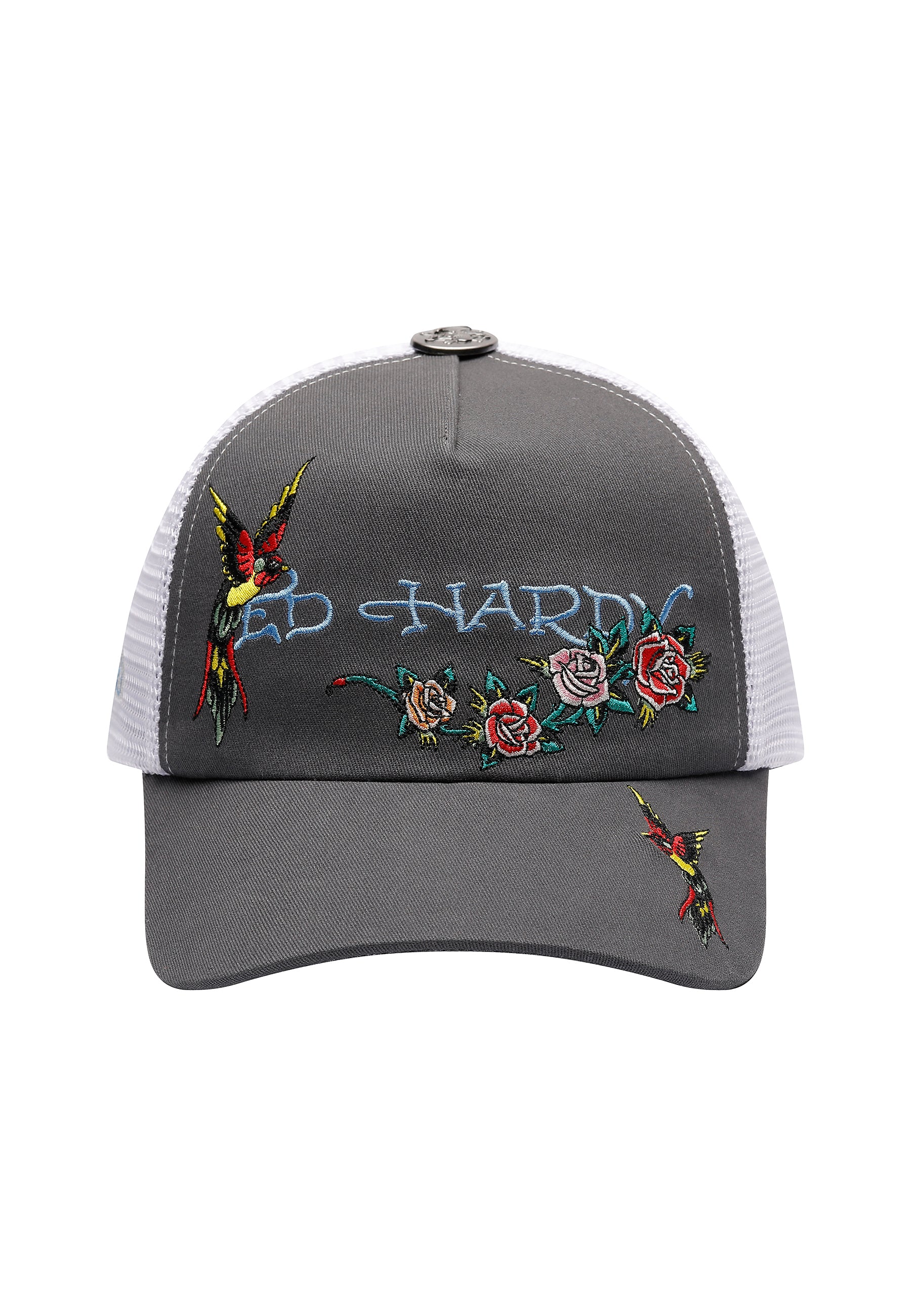 Unisex Floral Swallow 5 Panel Trucker Cap - Charcoal