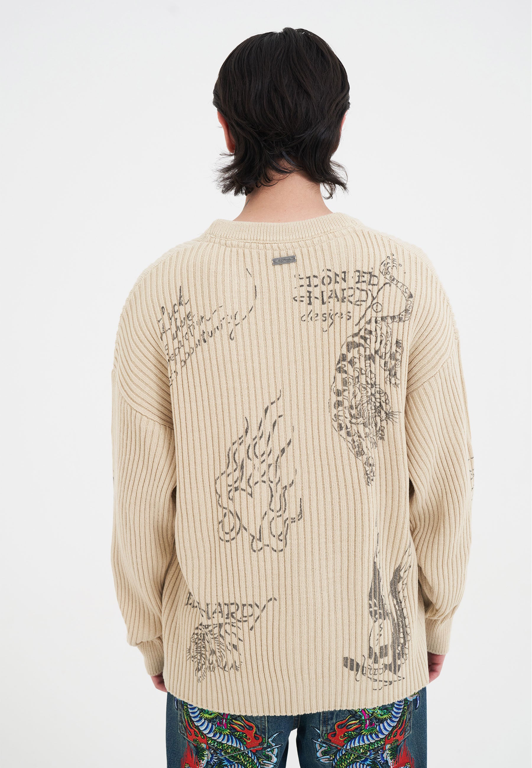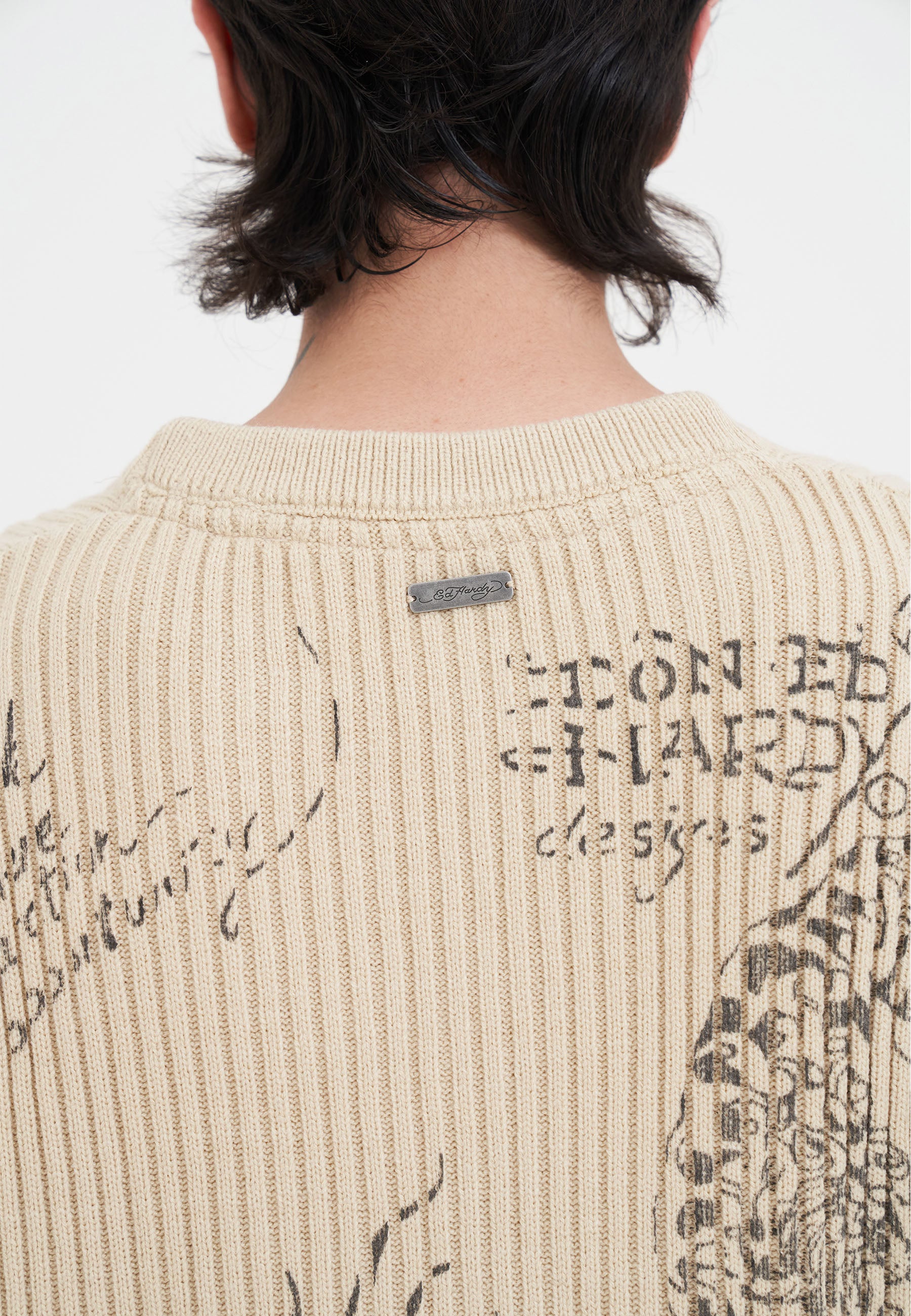 Mens Gothic Ribbed Knit Crew Jumper - Beige
