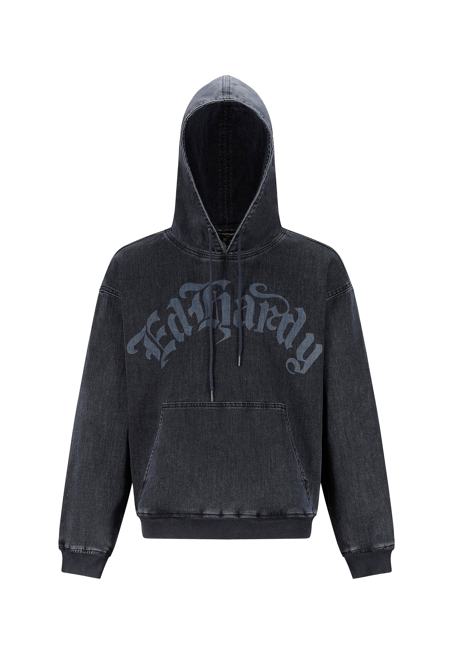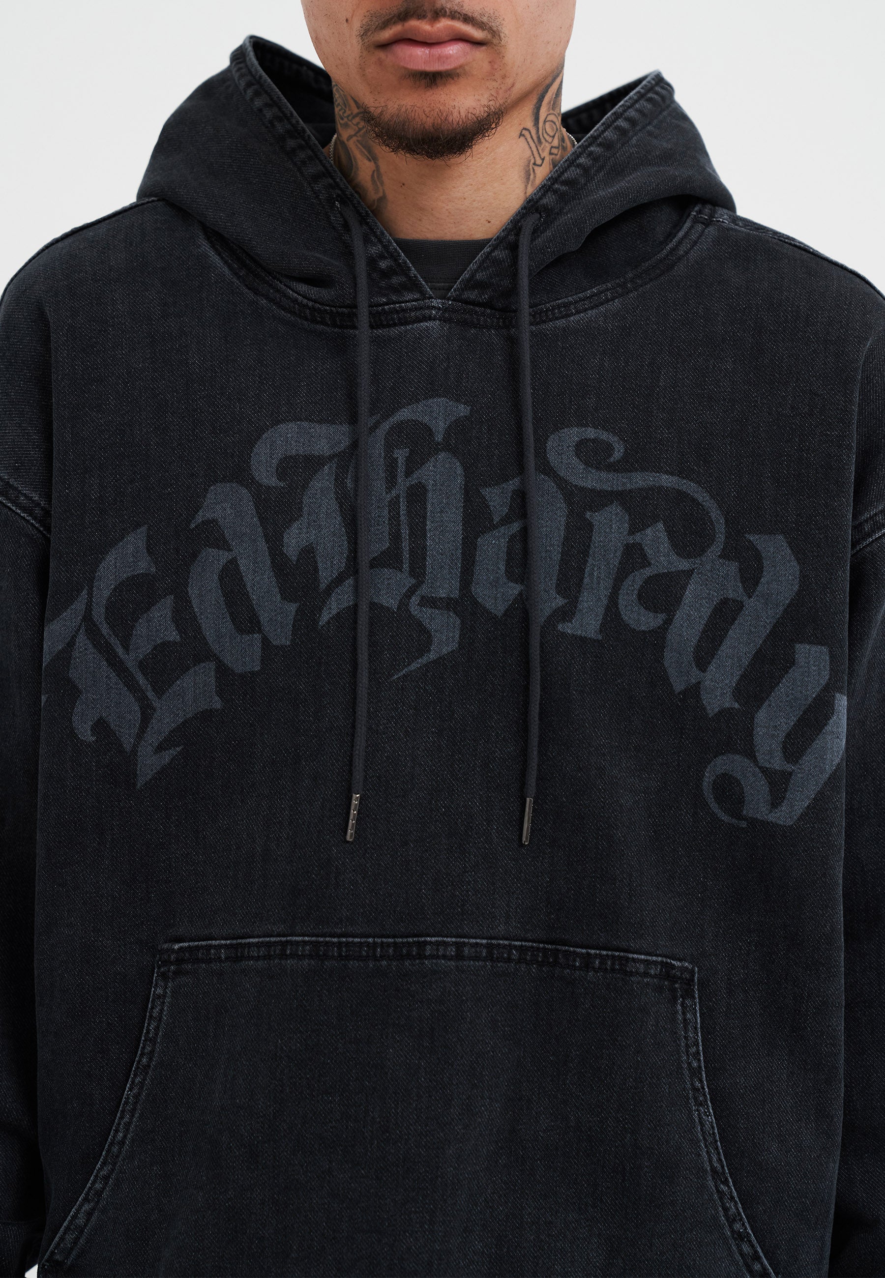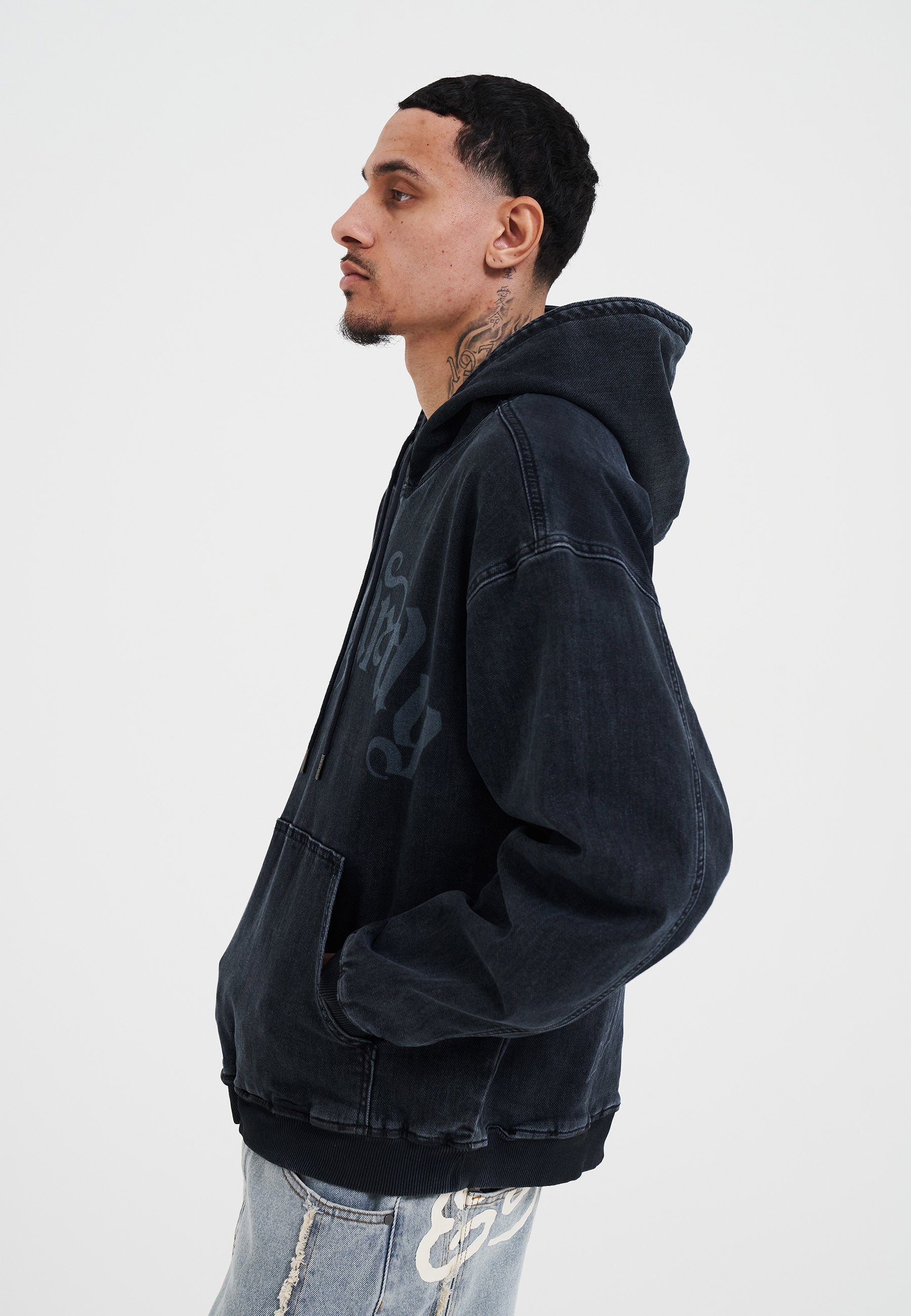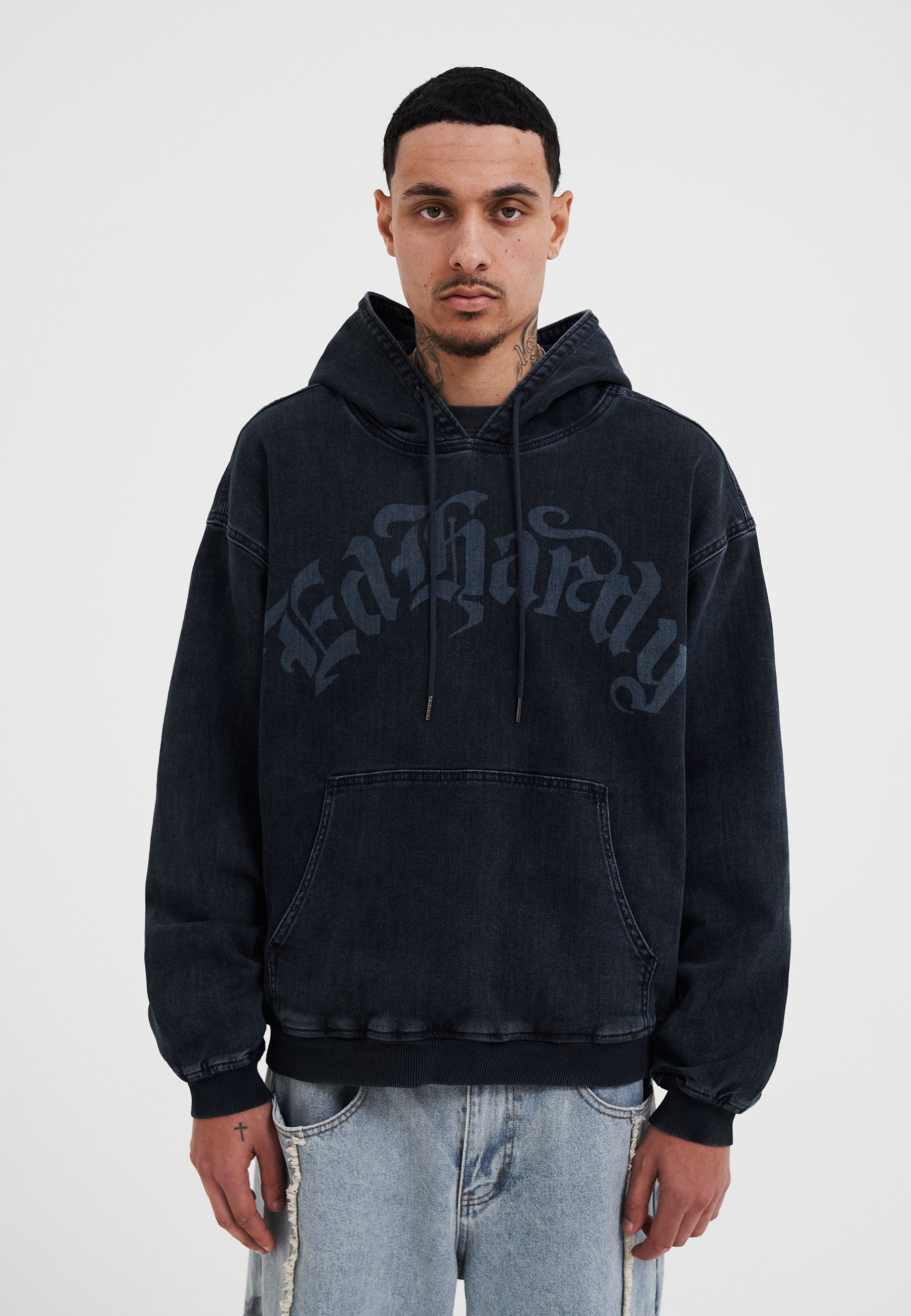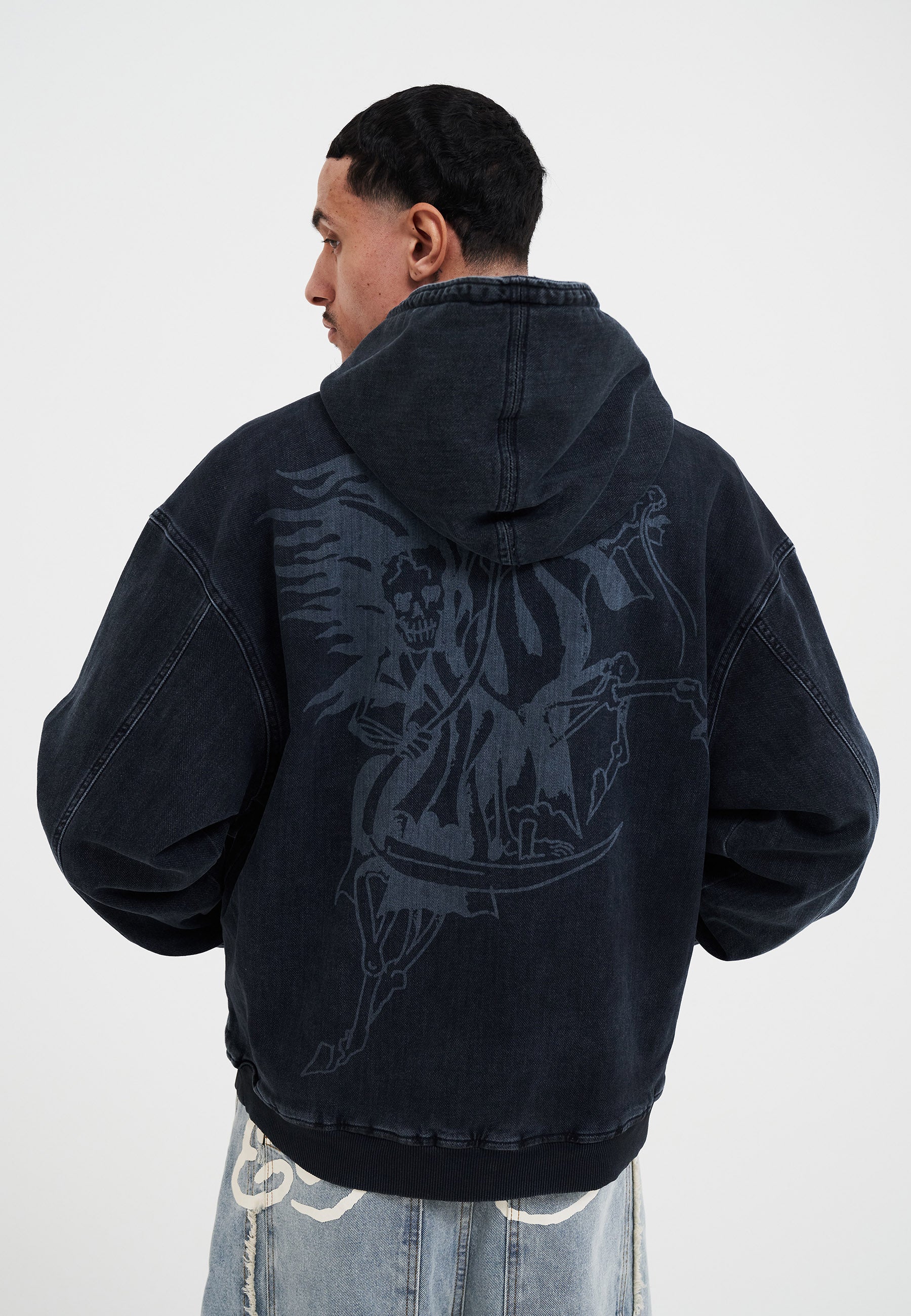 Mens Death Rider Denim Pouch Hoodie - Indigo
