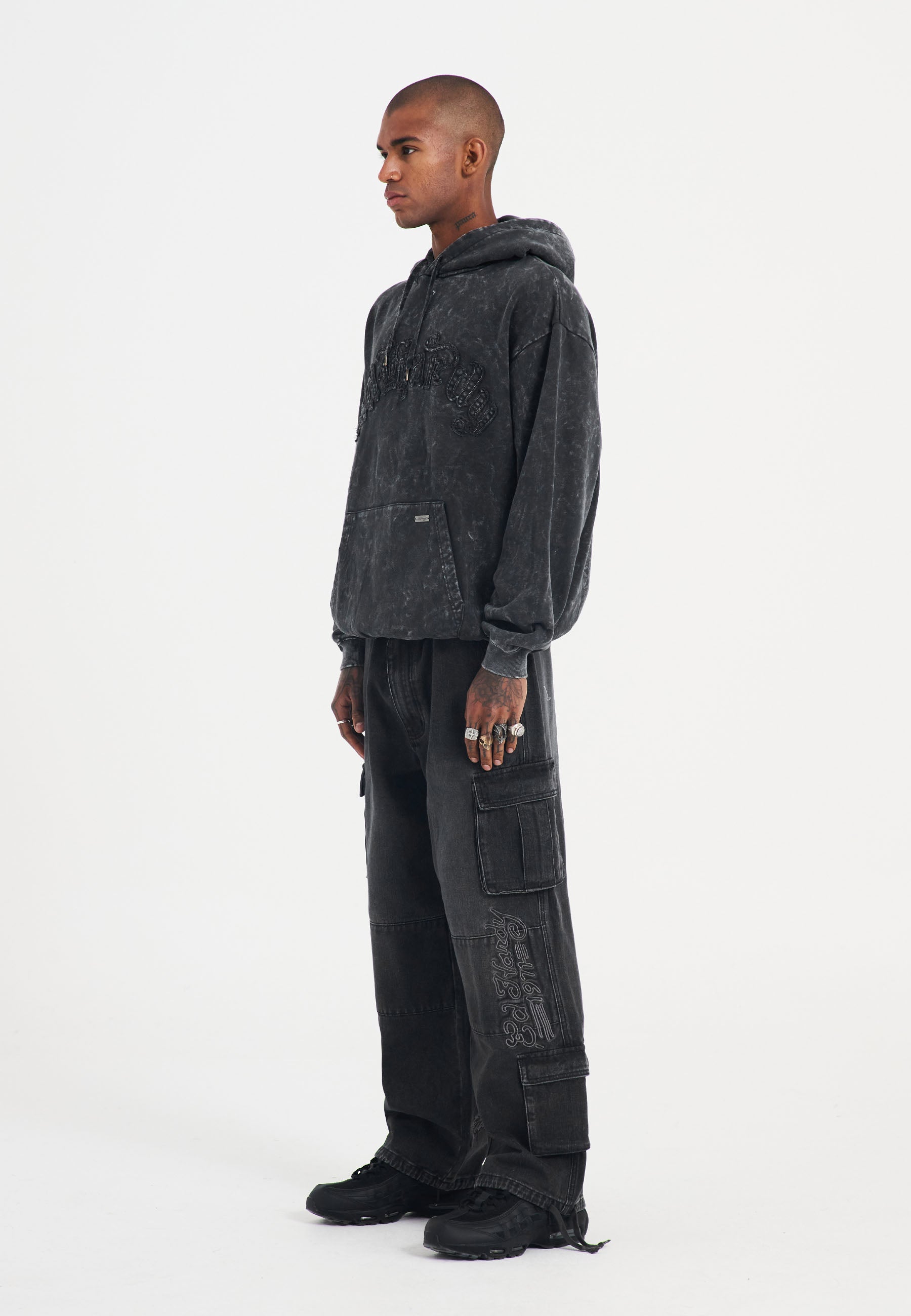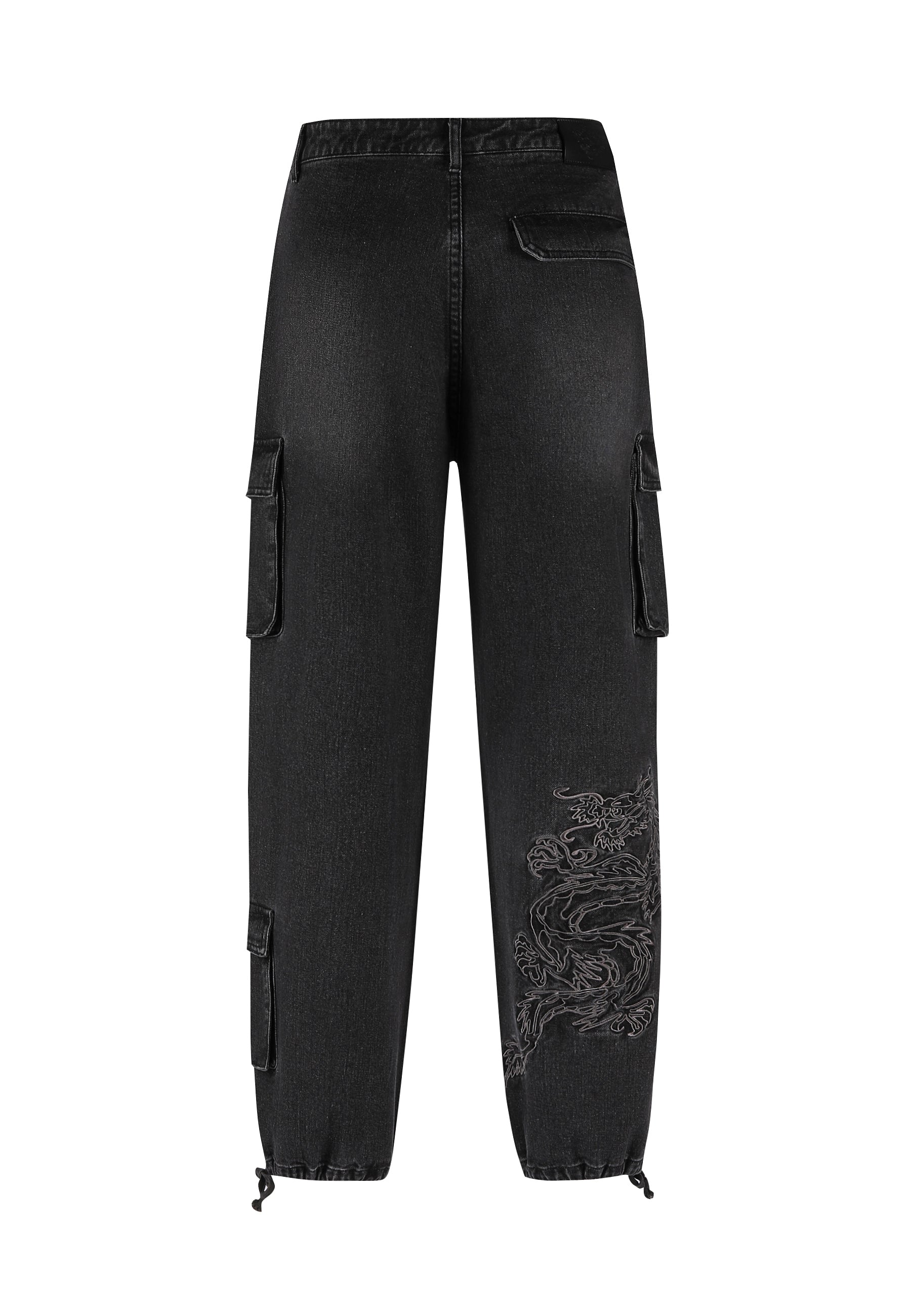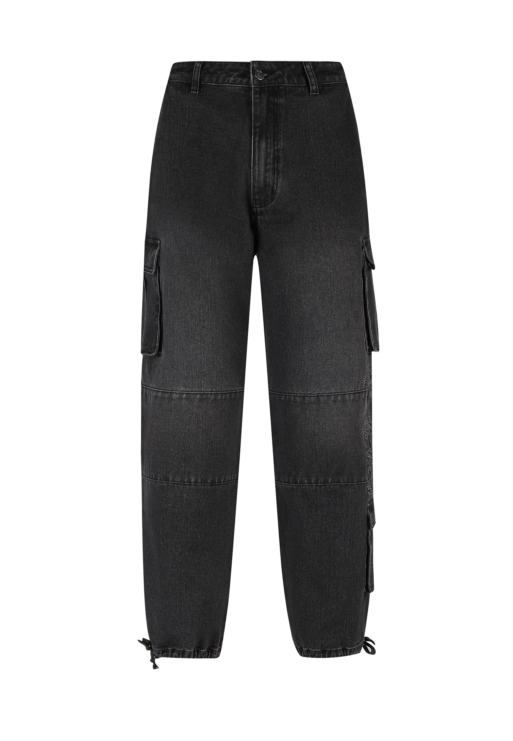Mens Drag Cargo Denim Trousers Jeans - Black