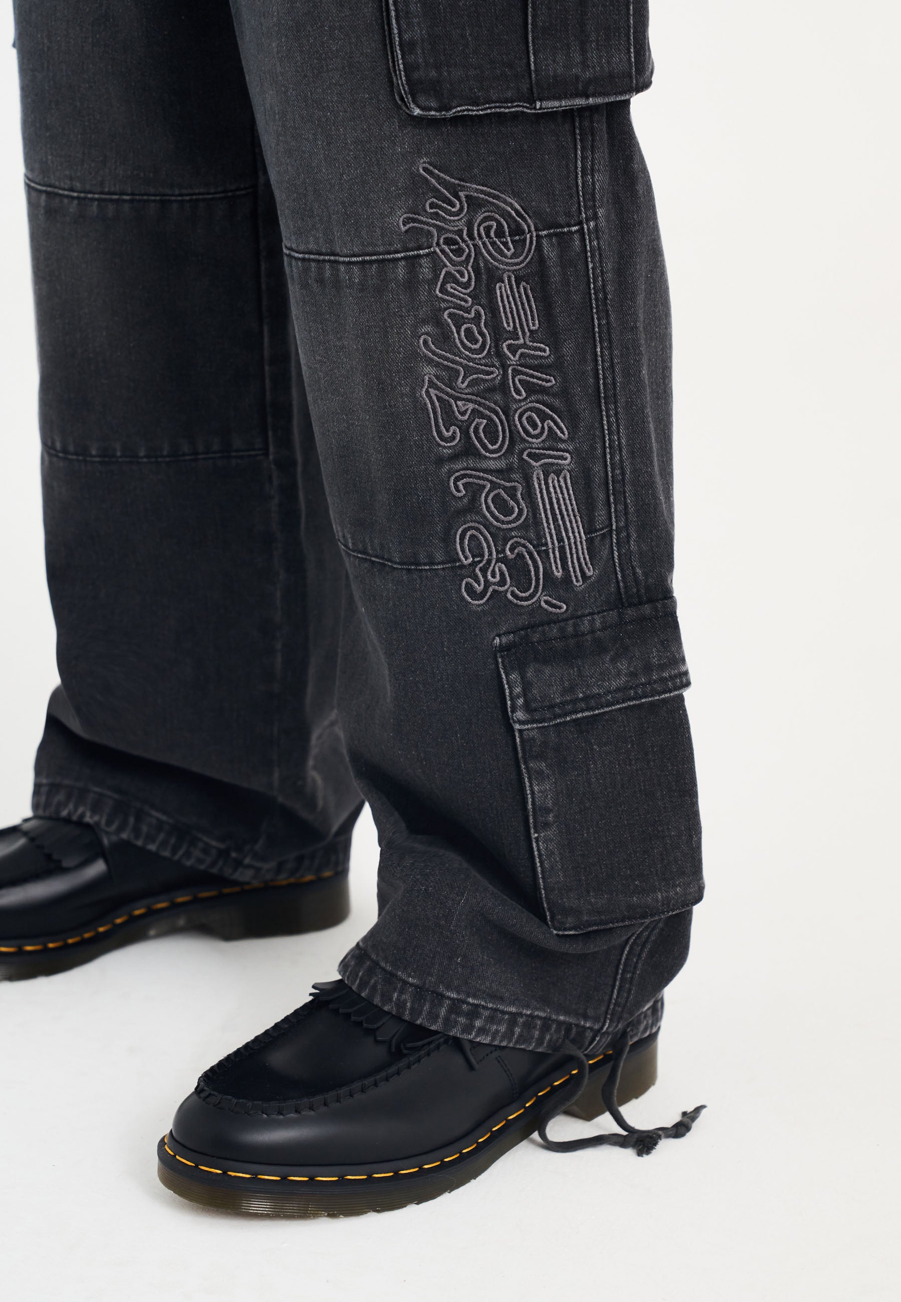 Featuring popper cargo pockets, front pockets, a drawstring hem, and EH Hardy 1971 tonal embroidery and mixed graphic placements on each leg and finished with a leather embossed patch.