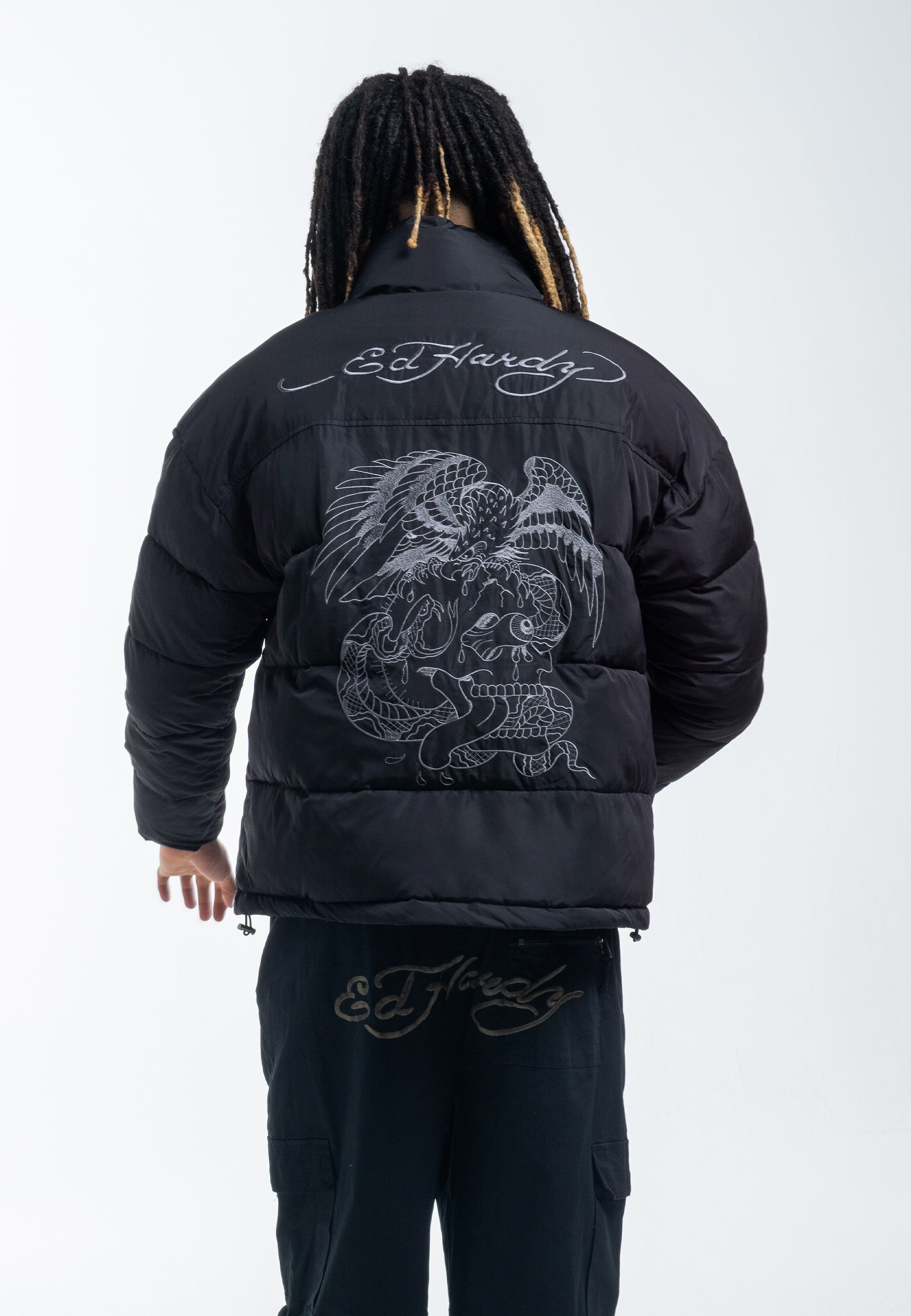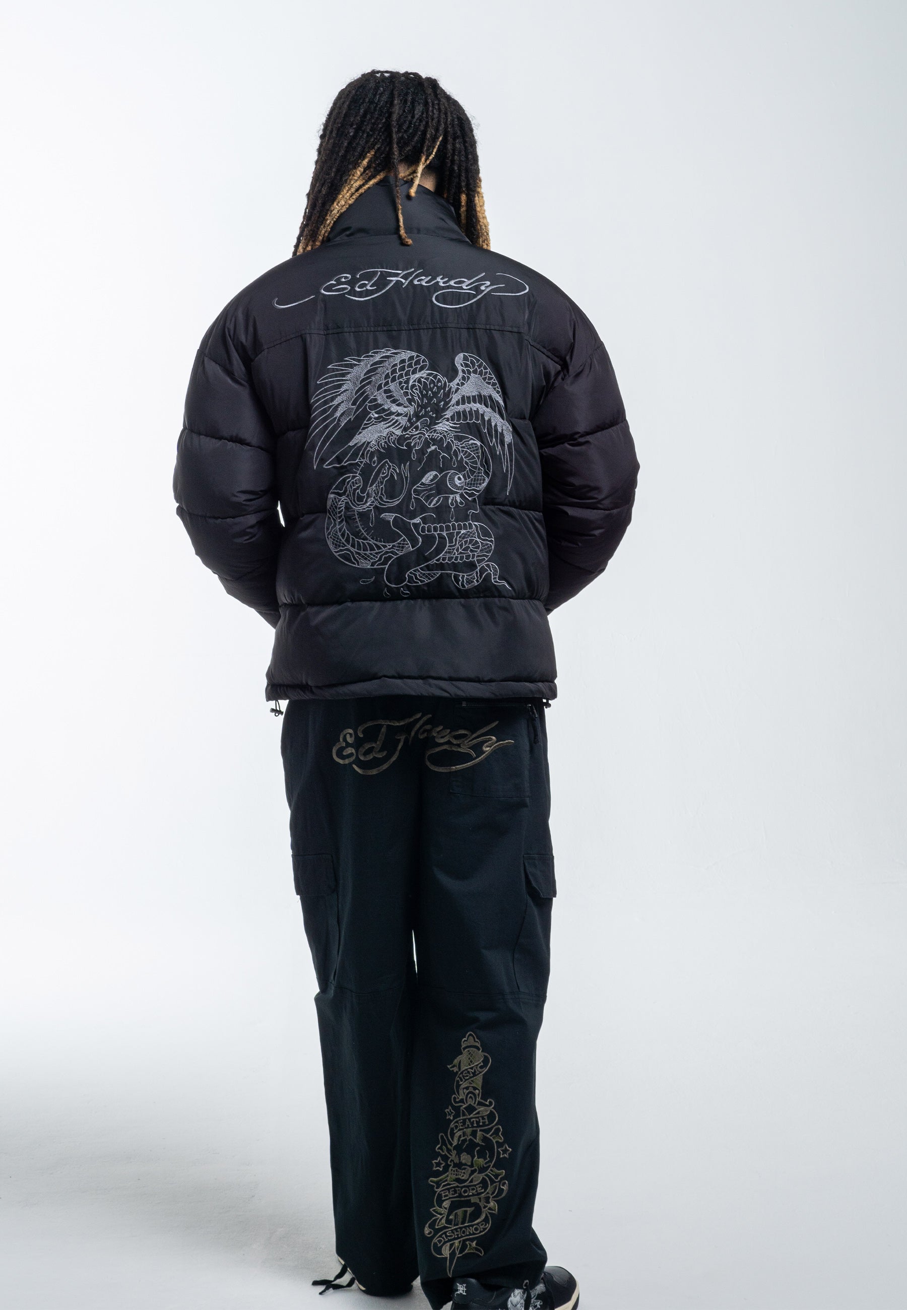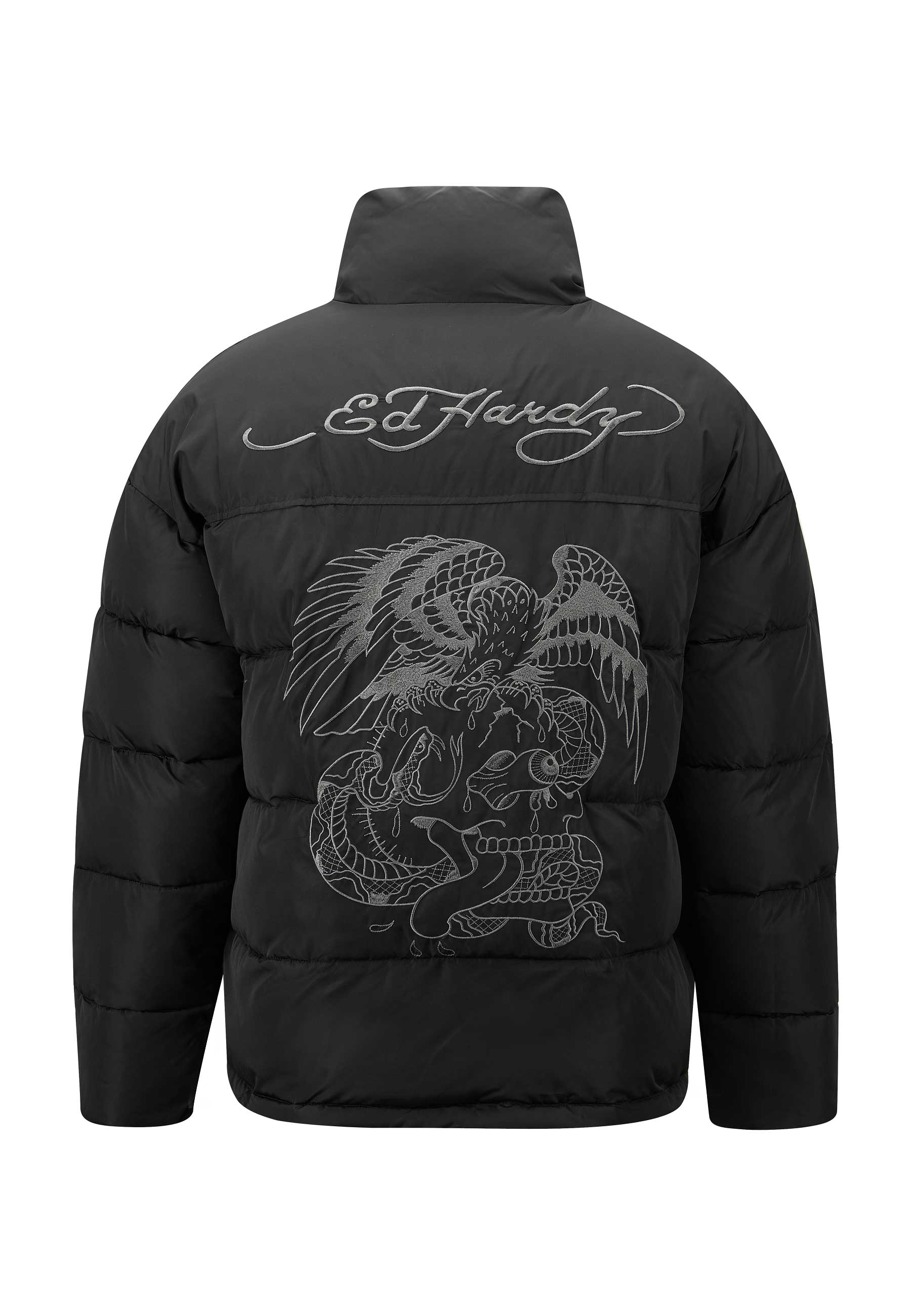 Mens Eye-Ball-Skull Puffer Jacket - Black