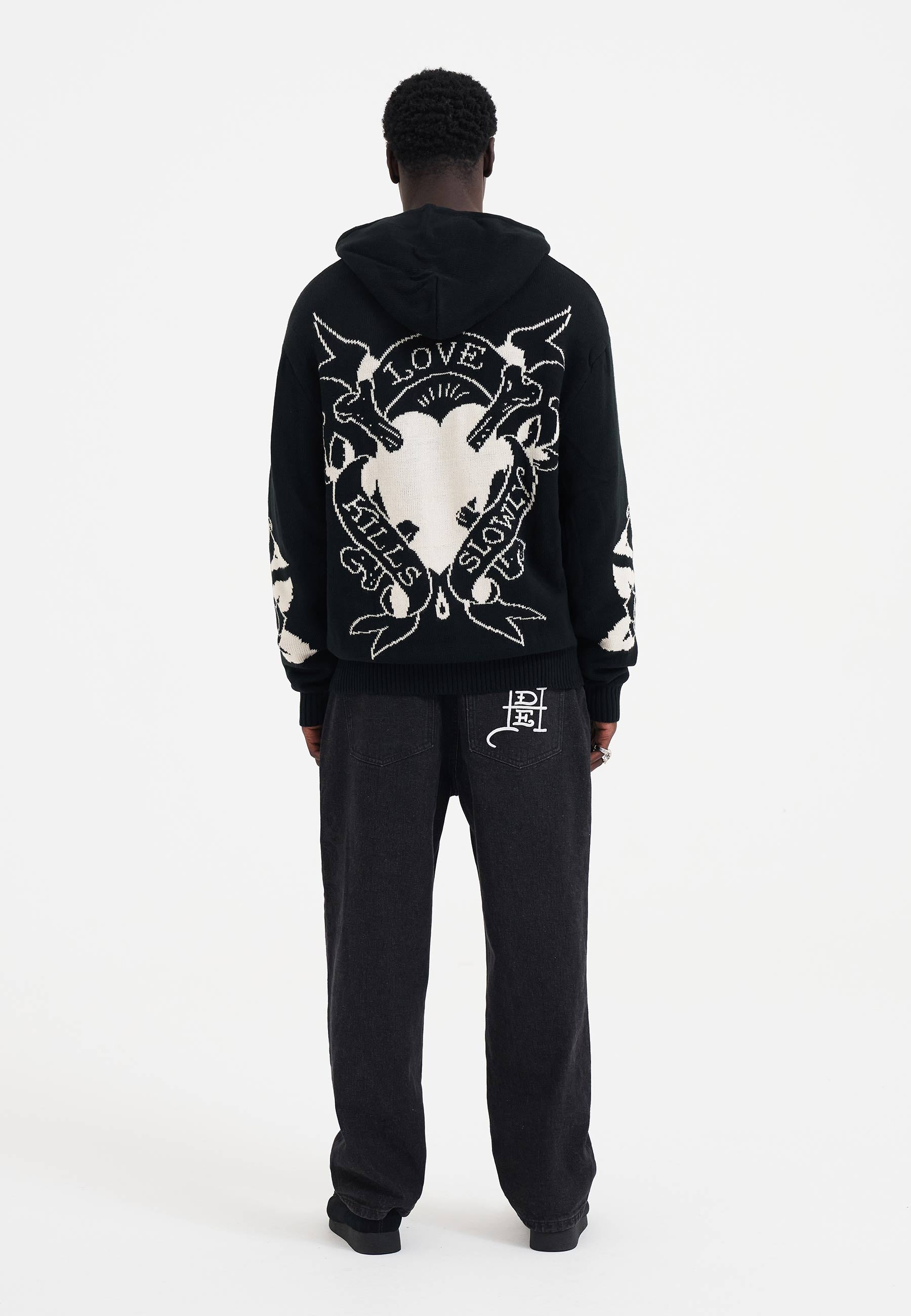 Mens Knitted Love Kills Knitted Zip Thru Hoodie - Black