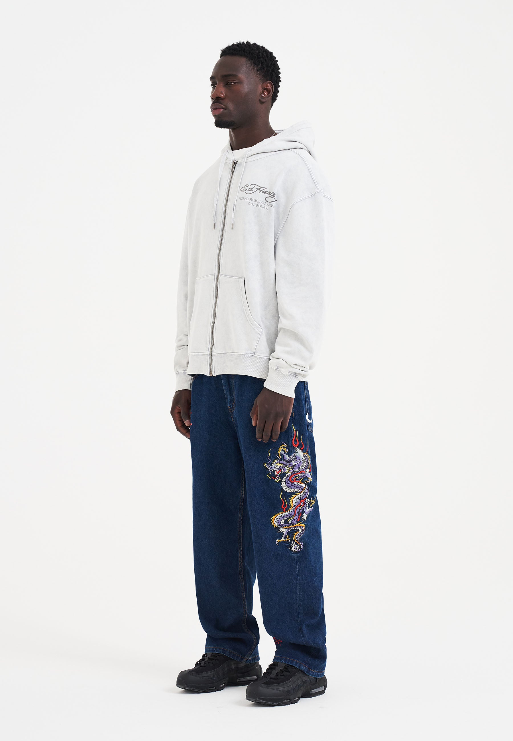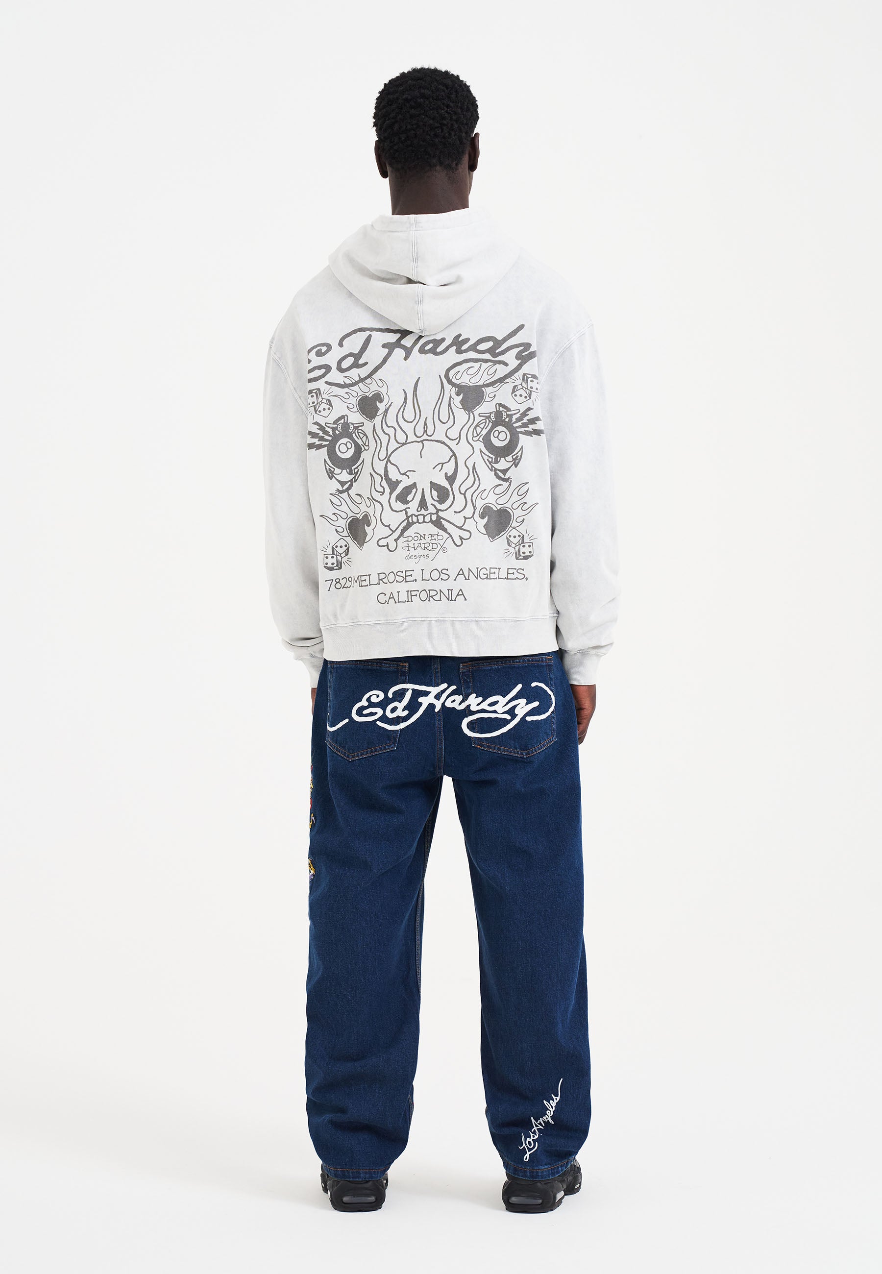 Emerging from Ed's artistic vault, the Acid Flaming Skull Hoodie pays homage to the gritty underground world of New York tattoo studios. Vividly revived for AW23, the artwork breathes new life across an acid-wash canvas in high-definition tonal graphics.