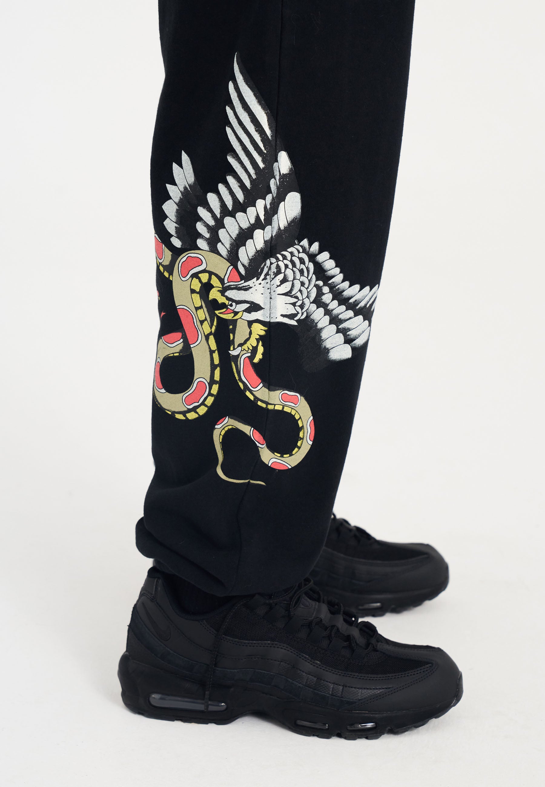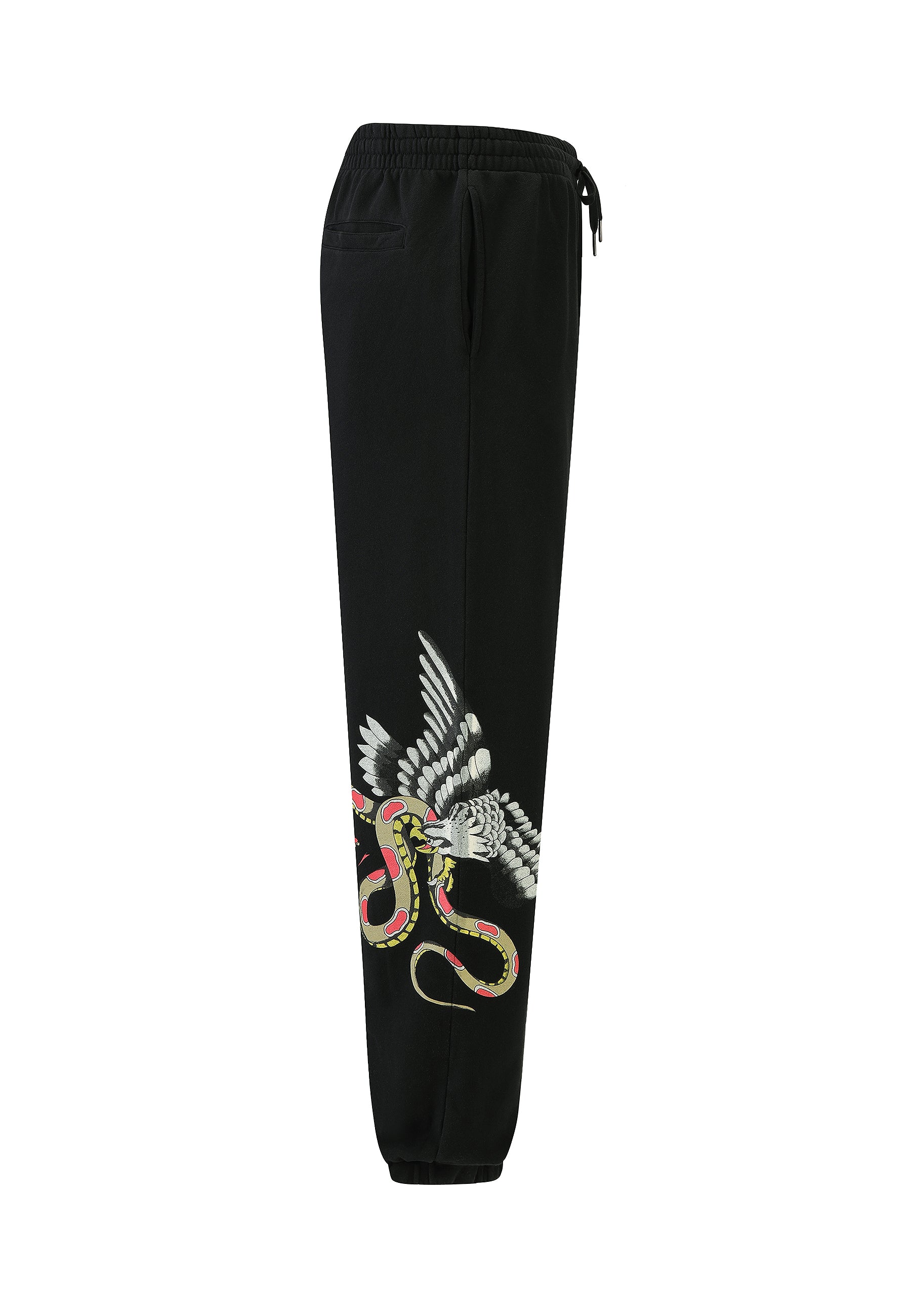 Mens Snake And Eagle Battle Joggers Pants - Black