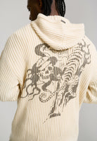 MENS TIGER AND SNAKE IN FLAMES KNITTED HOODIE in Off White