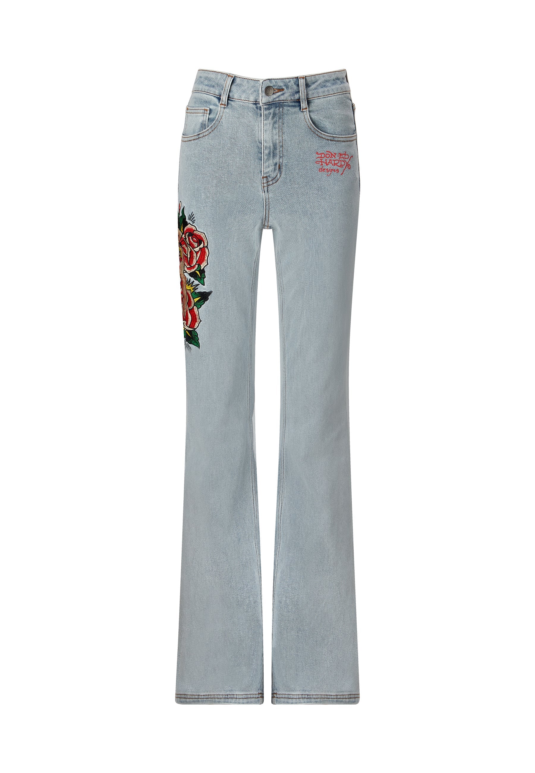 Womens Lady Rose Flared Denim Trousers Jeans - Blue