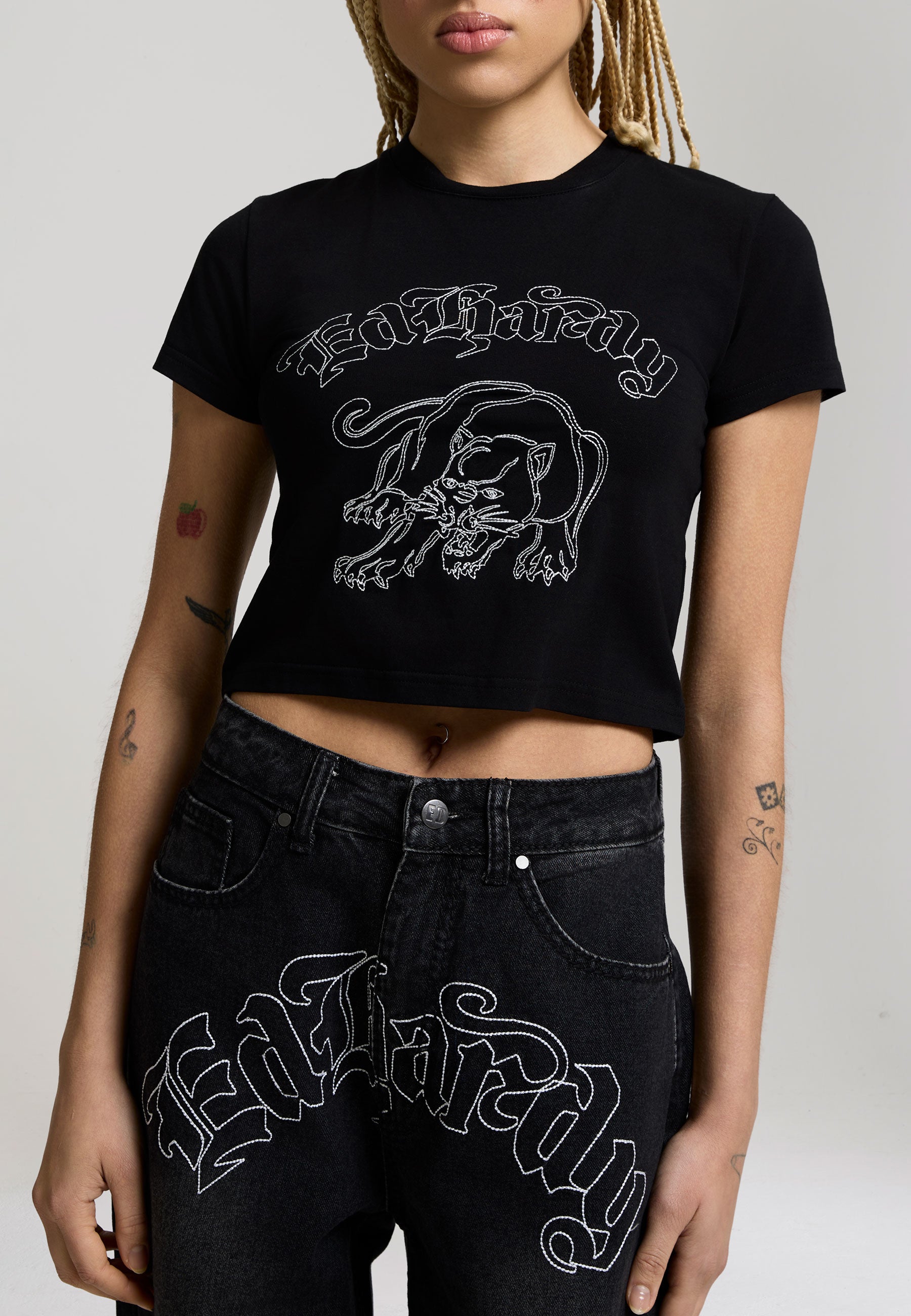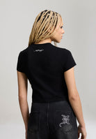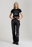 Womens Panther Embroidered Baby Tee - Black