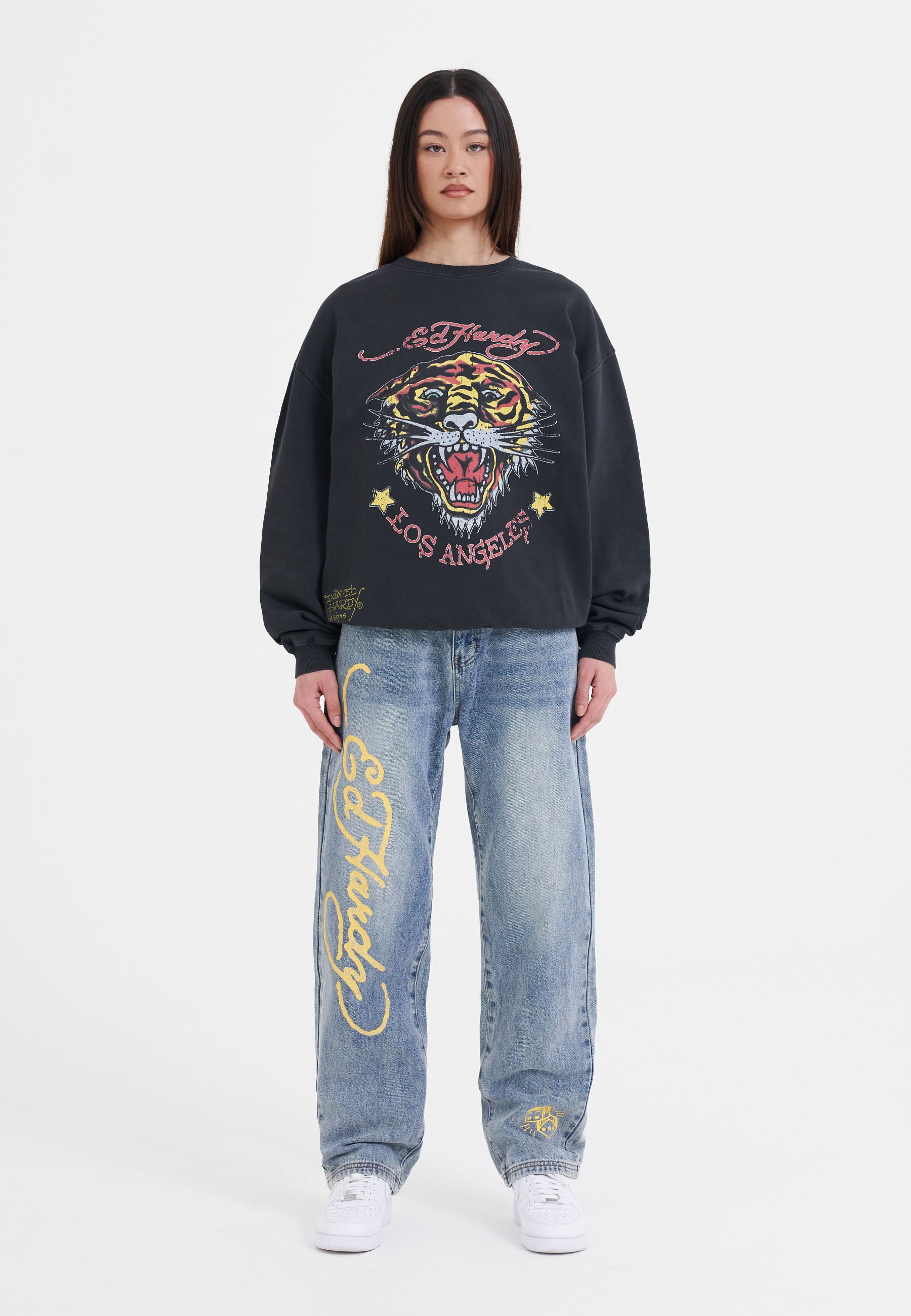Make a statement with the unforgettable Tiger Roar Crew Neck Jumper, adorned with Ed's vivid full-colour graphics and signature logos.