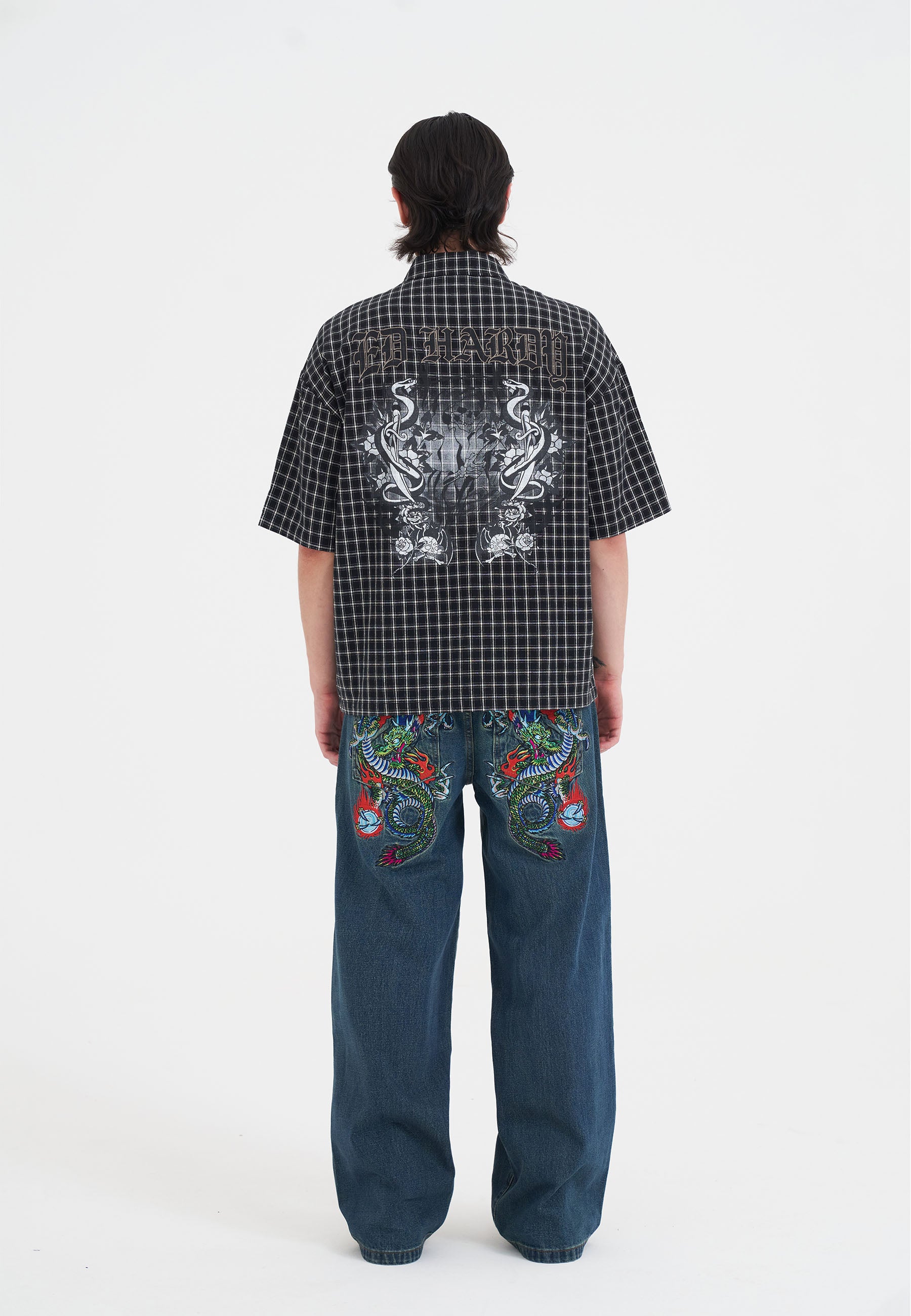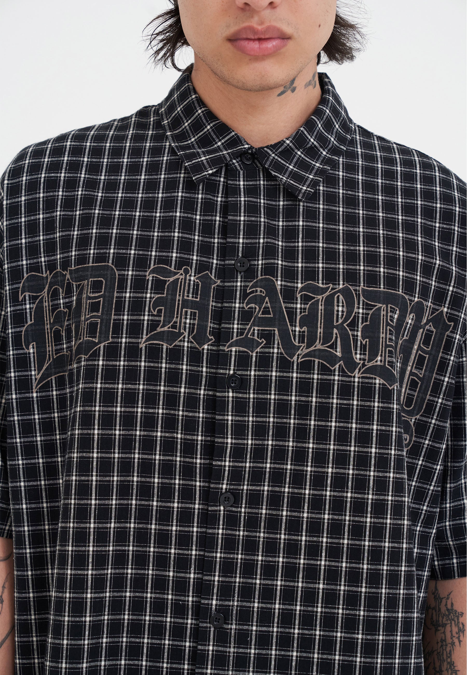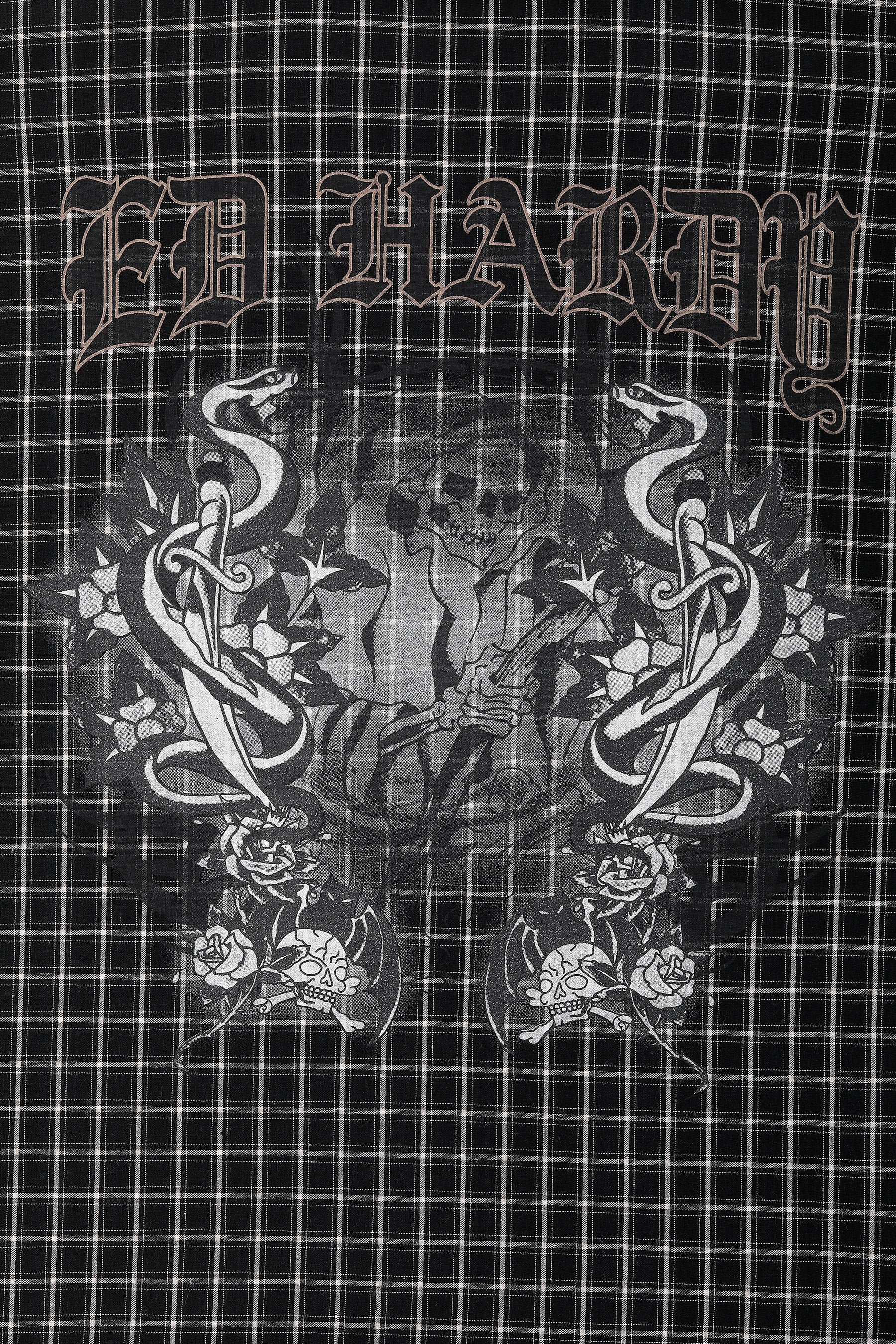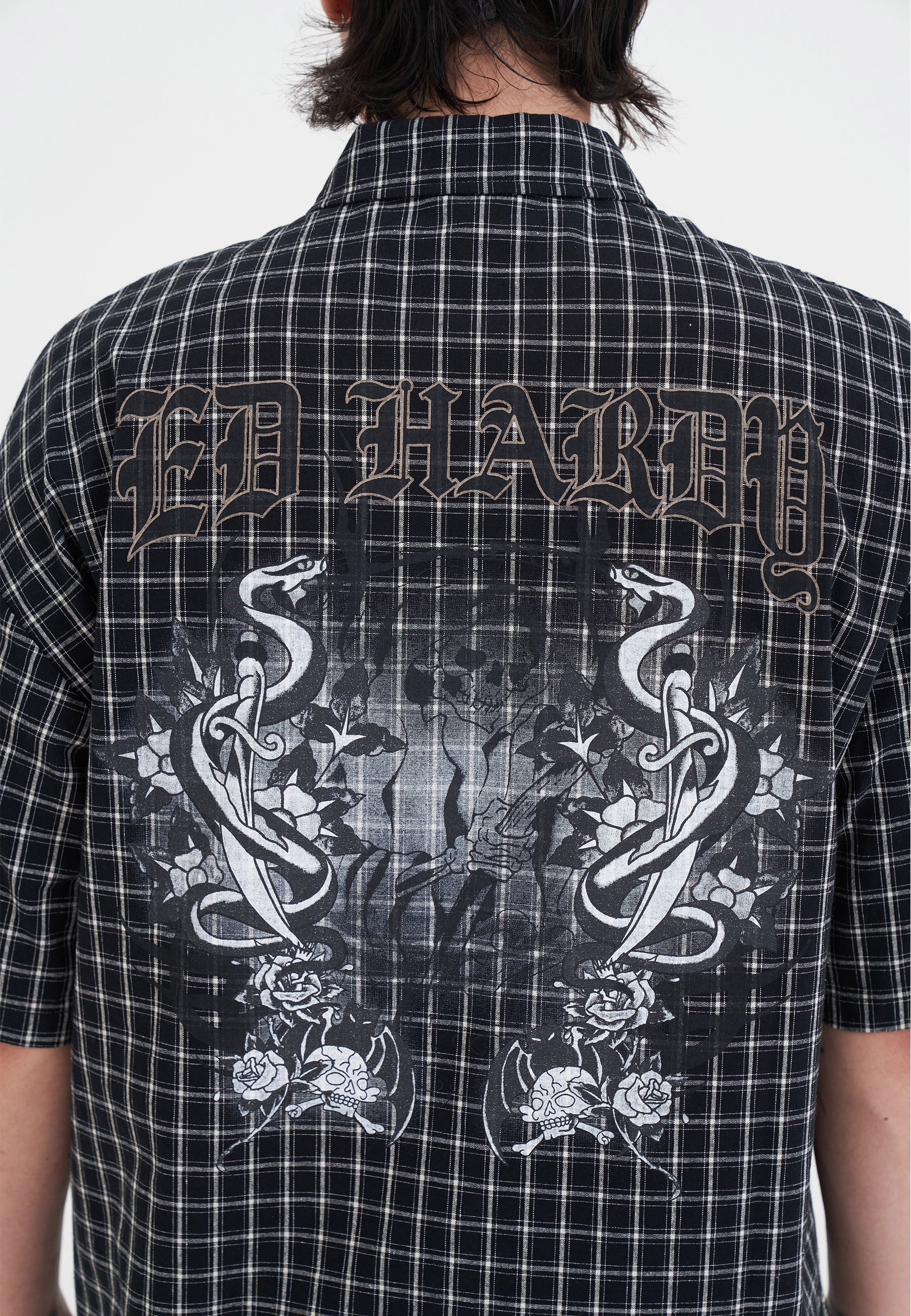 MENS DEATHLY SNAKE REAPER CHECK BOXY SHIRT in Black