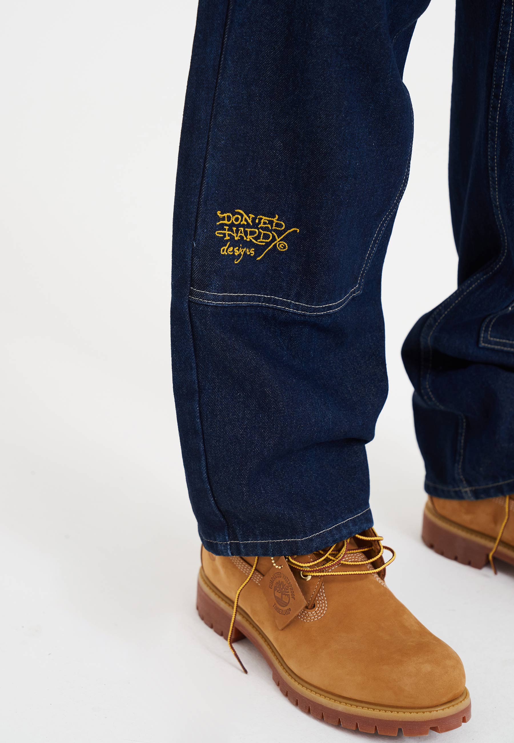 Mens Double Knee Drag Dagger Denim Trousers Jeans - Indigo