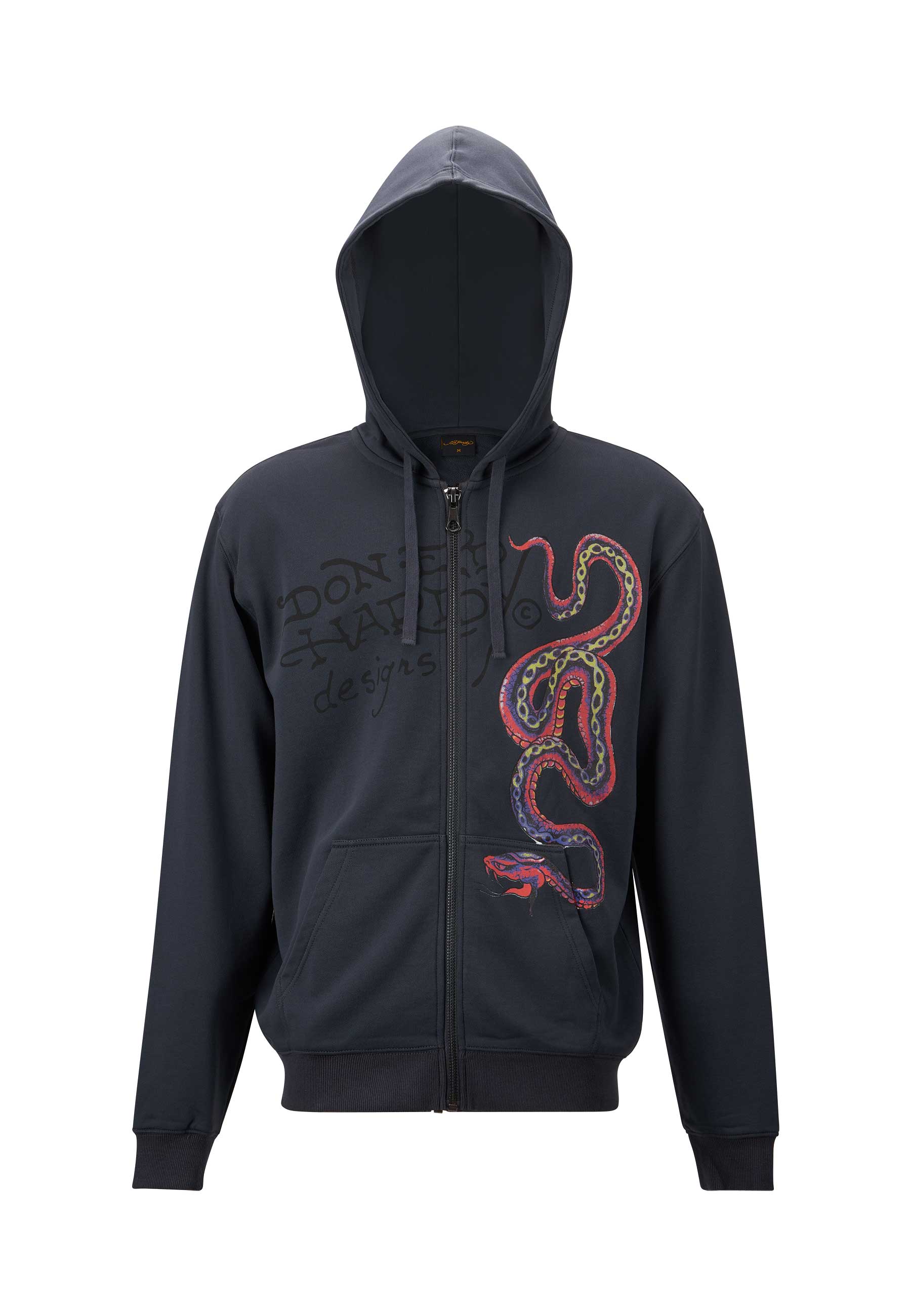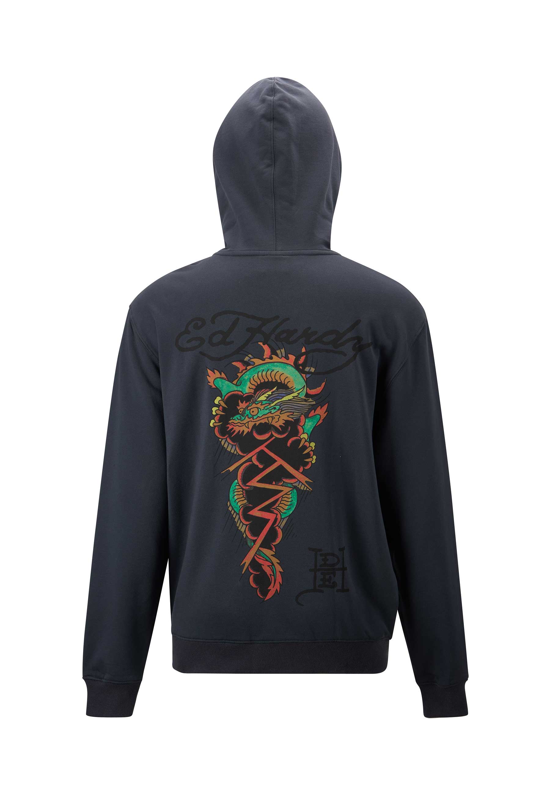 Mens Drag-Snake Graphic Zip Thru Hoodie - Charcoal