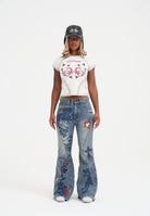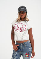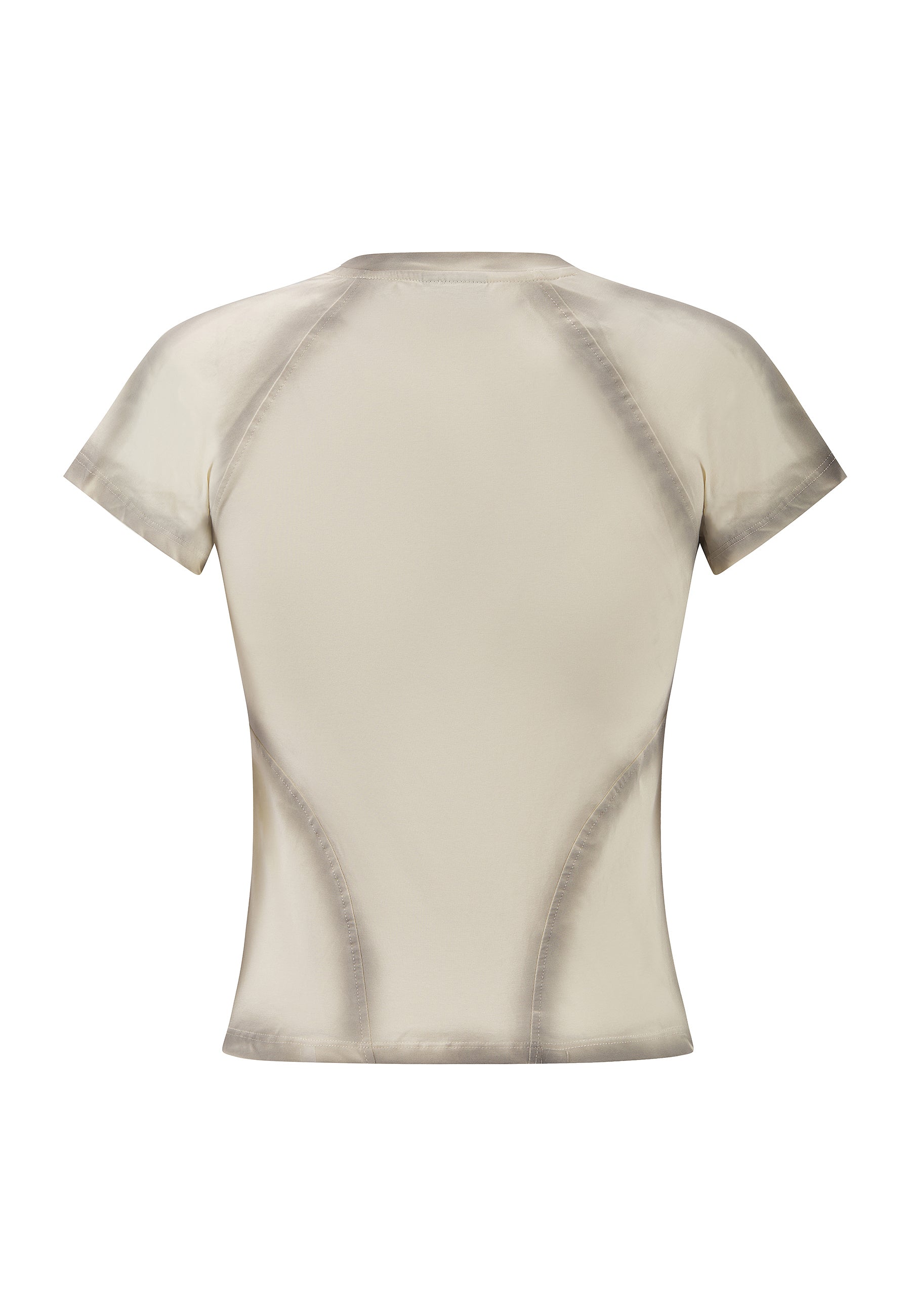 Womens Cross Your Heart Seam Detail T-Shirt Top in Ecru