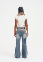 Women's Apparel: Denim Pleated Mini Skirts and Flared Jeans