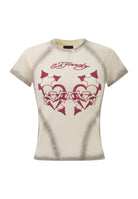 Womens Cross Your Heart Seam Detail T-Shirt Top - Ecru