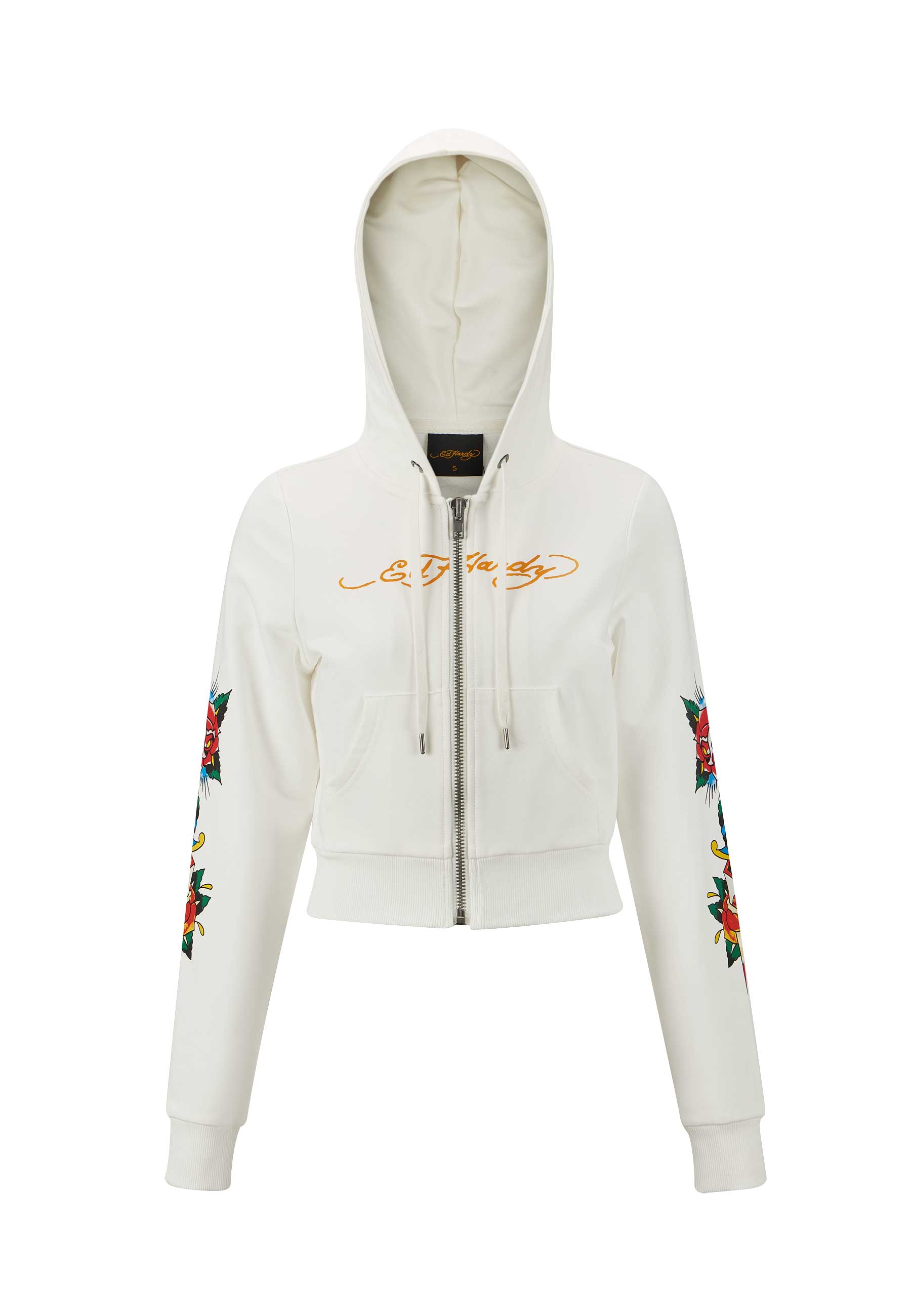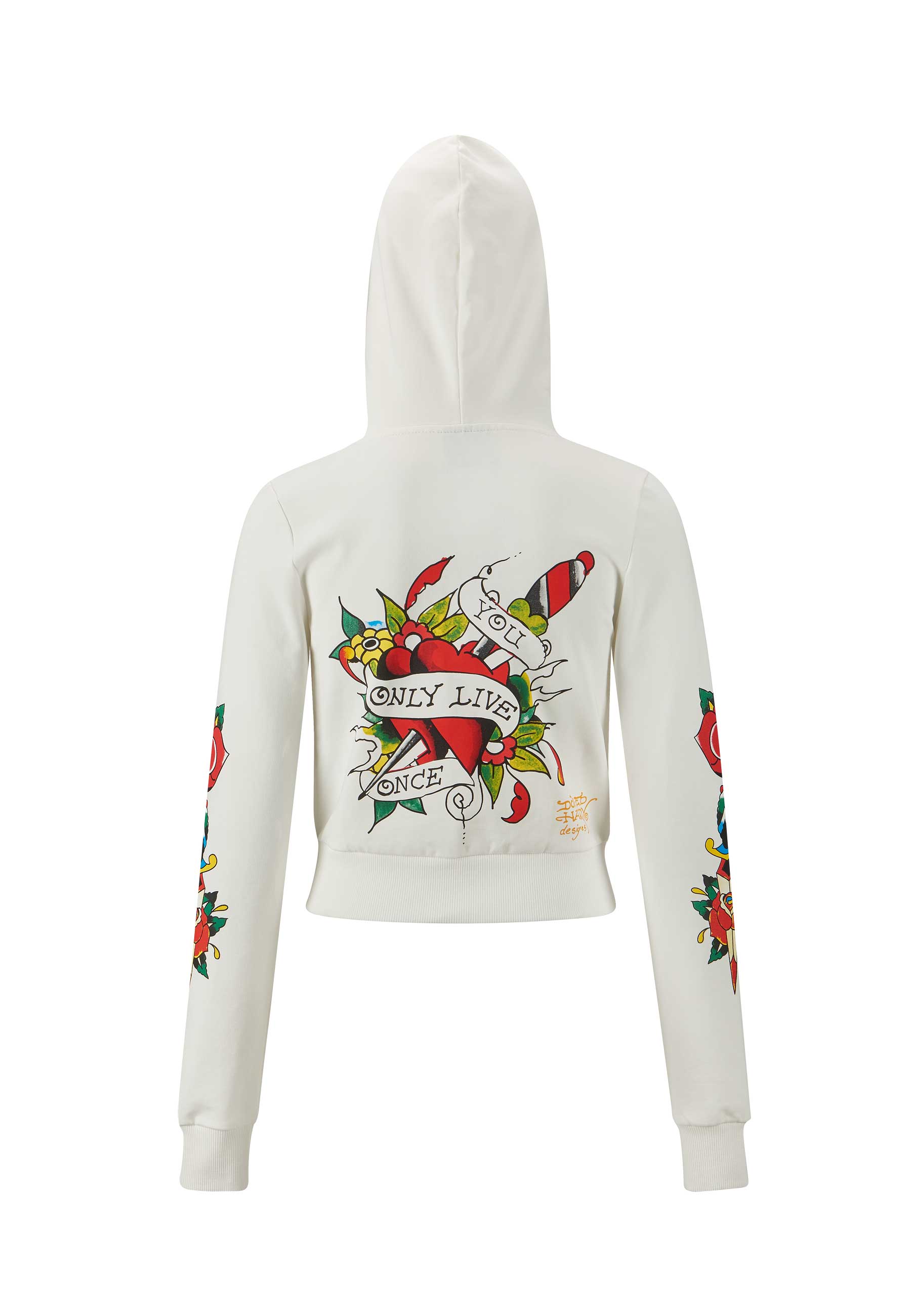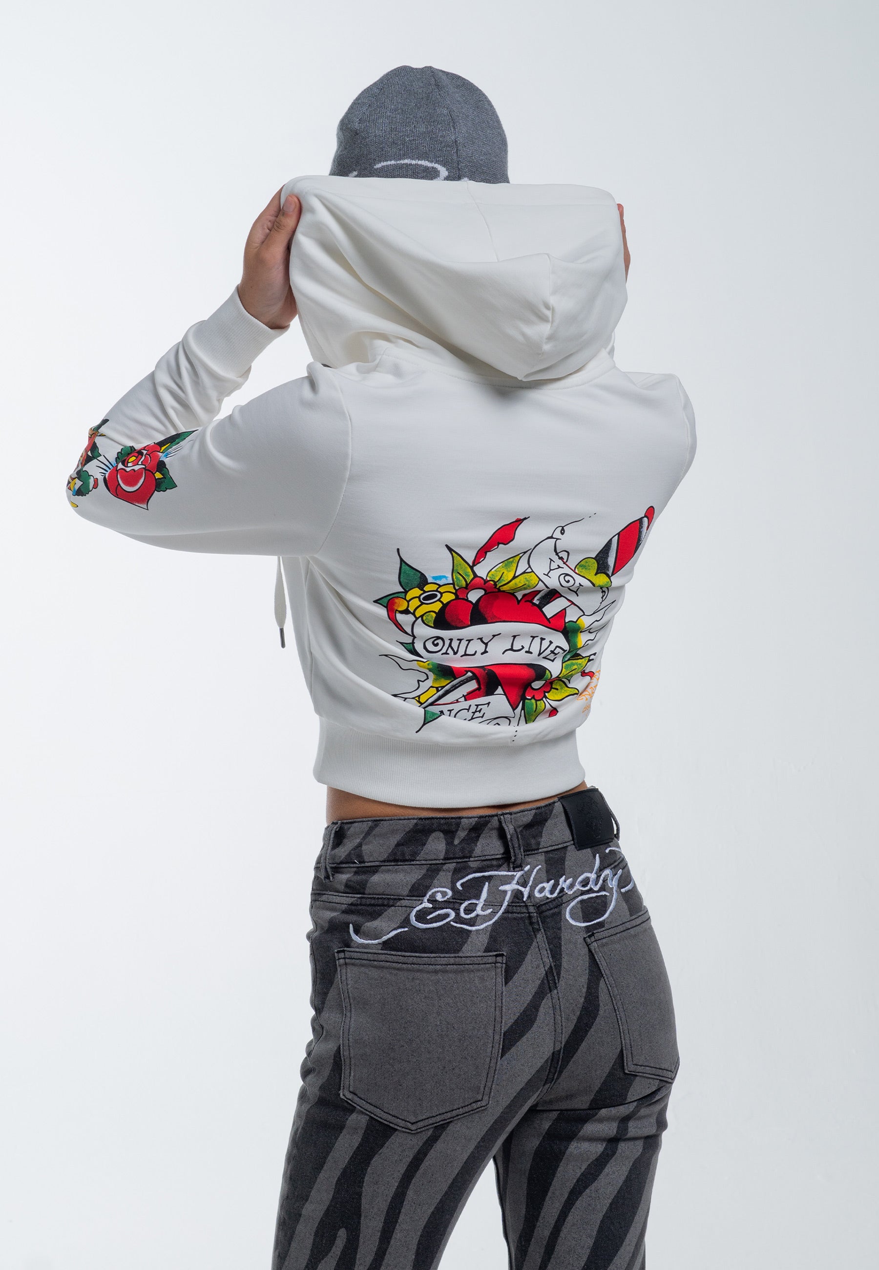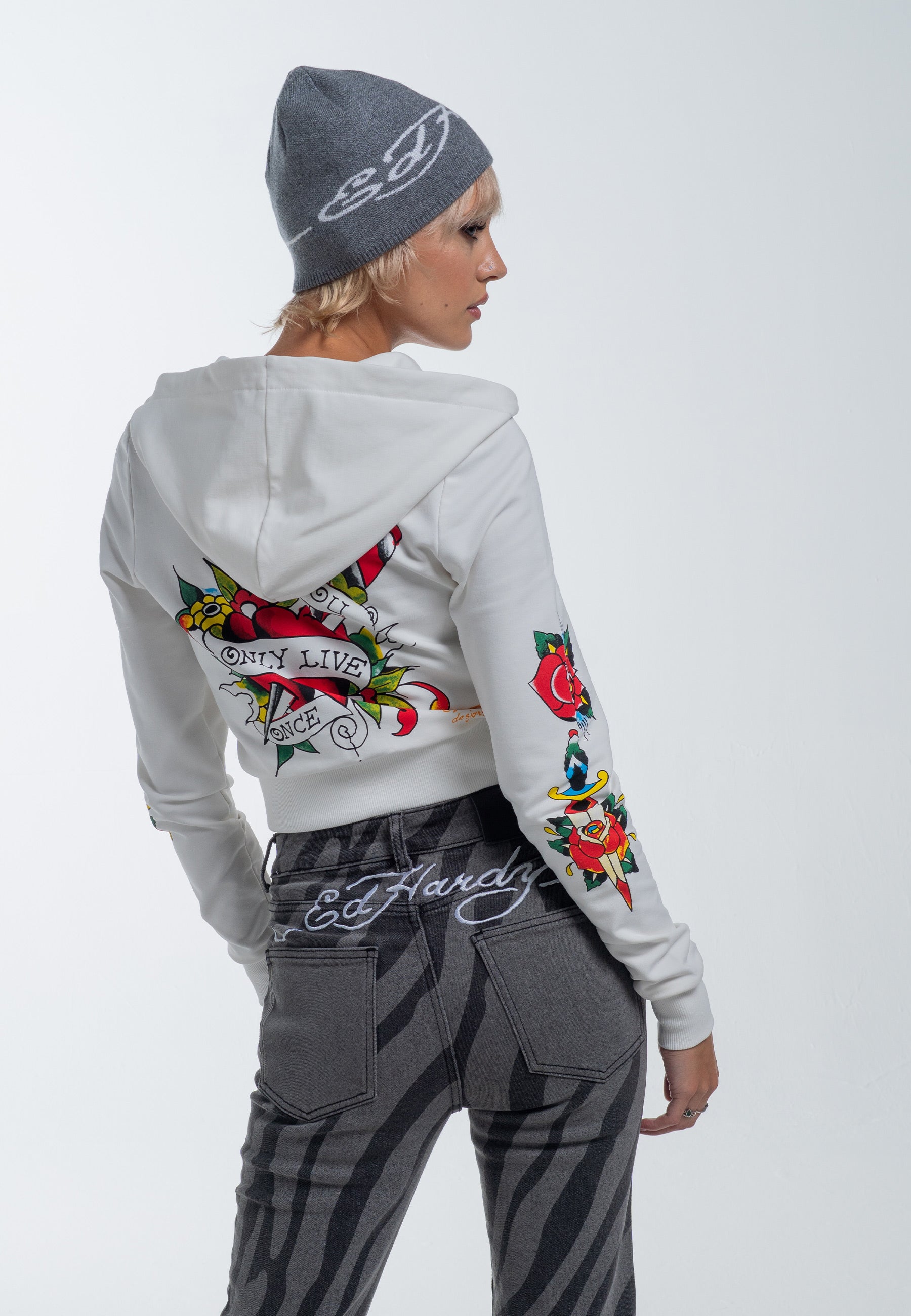 Womens Only Live Once Cropped Zip Through Hoodie - White
