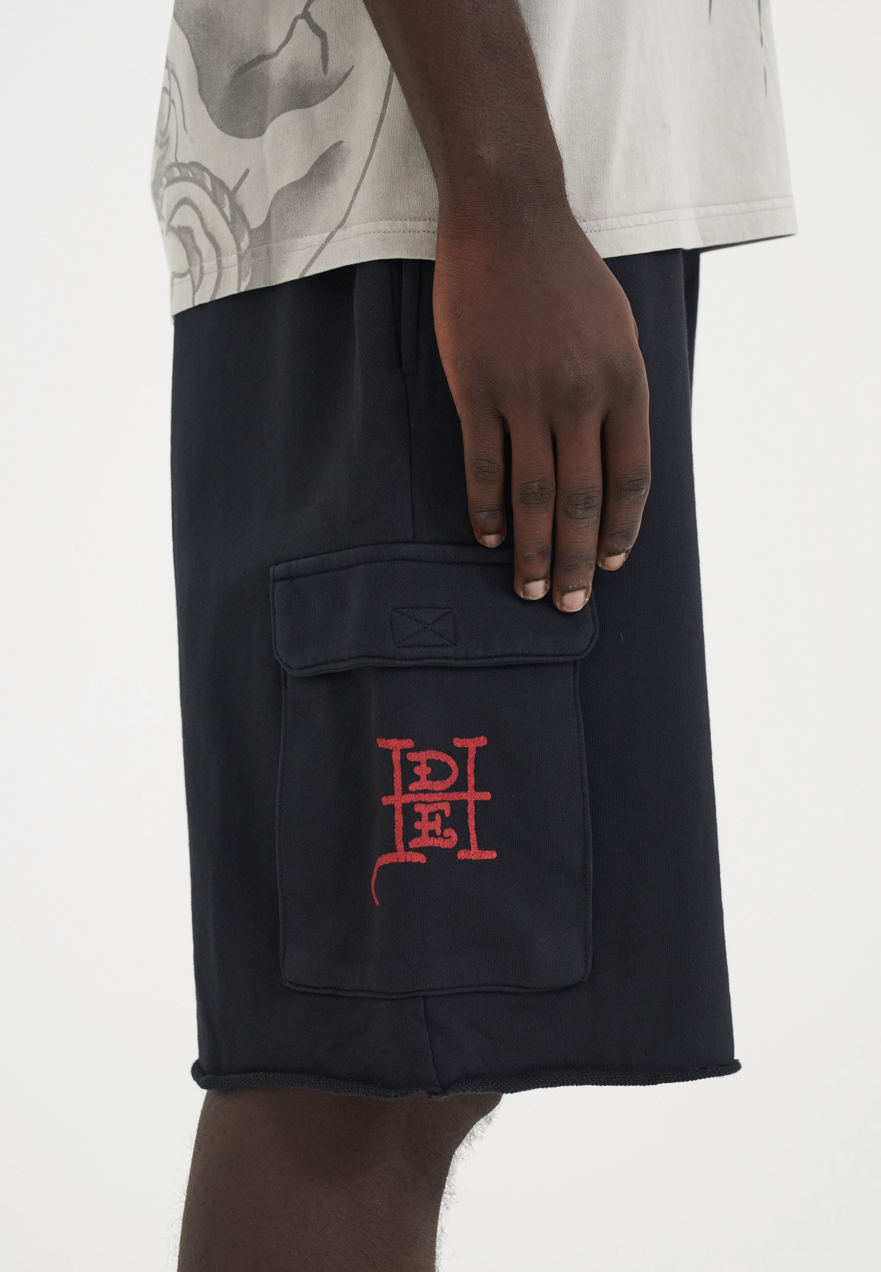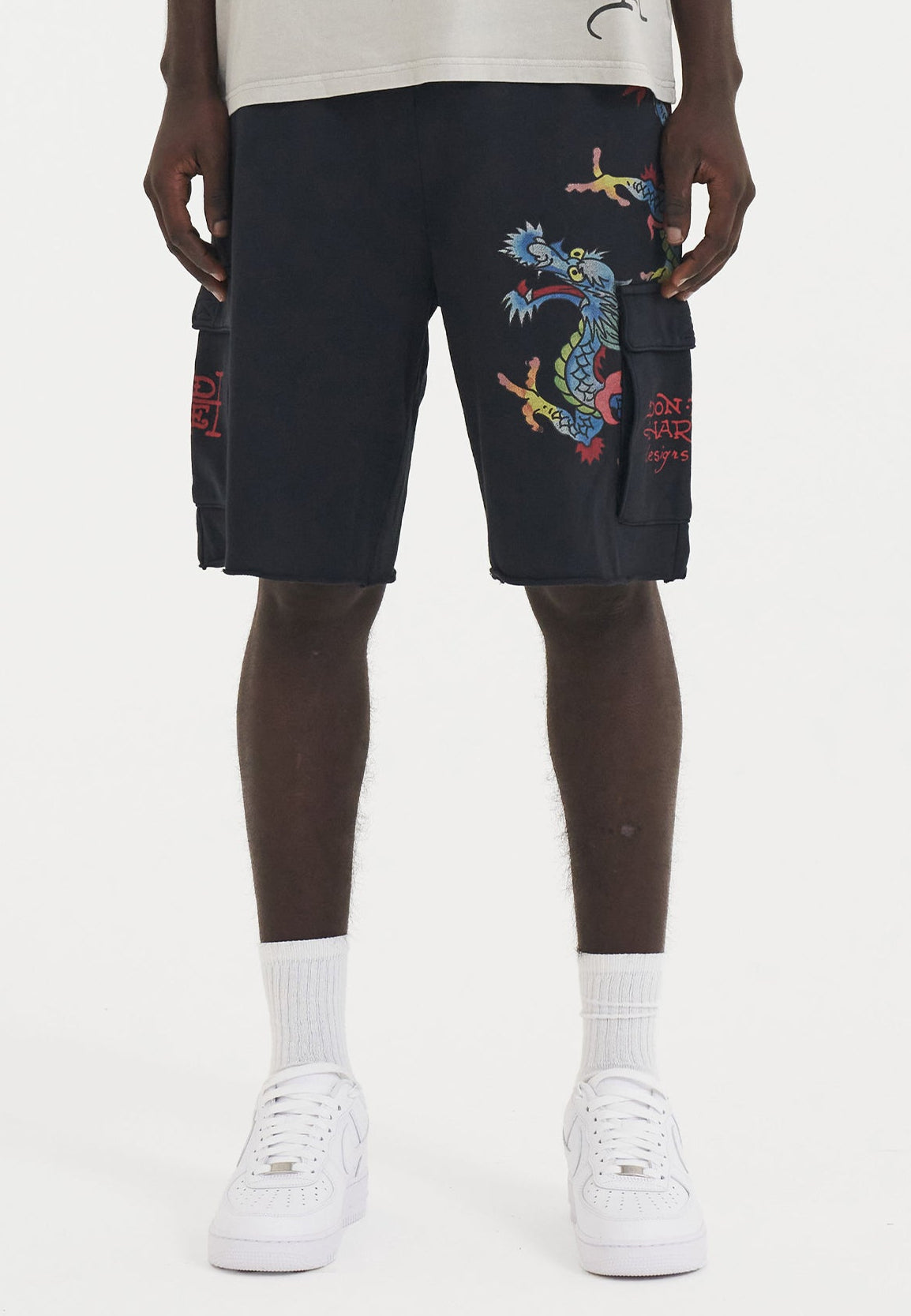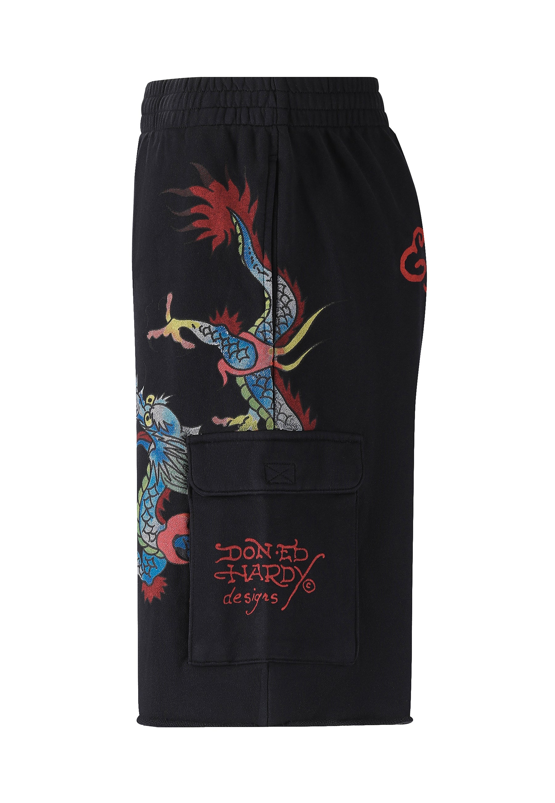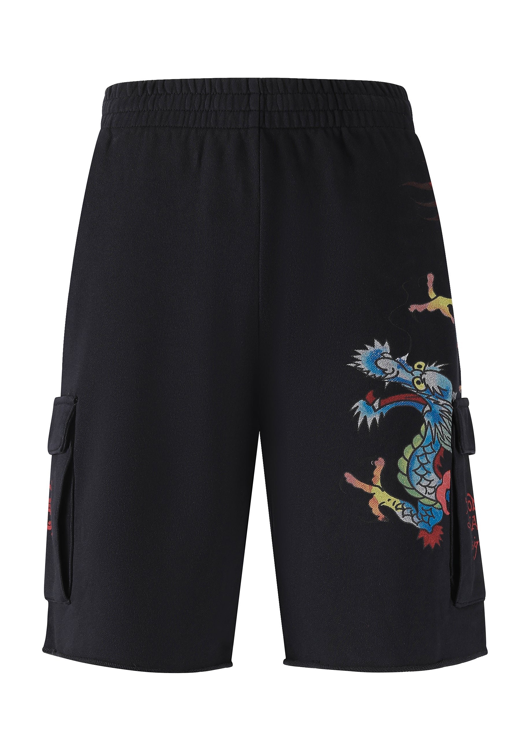 Mens Crawling Dragon Sweat Cargo Shorts - Black