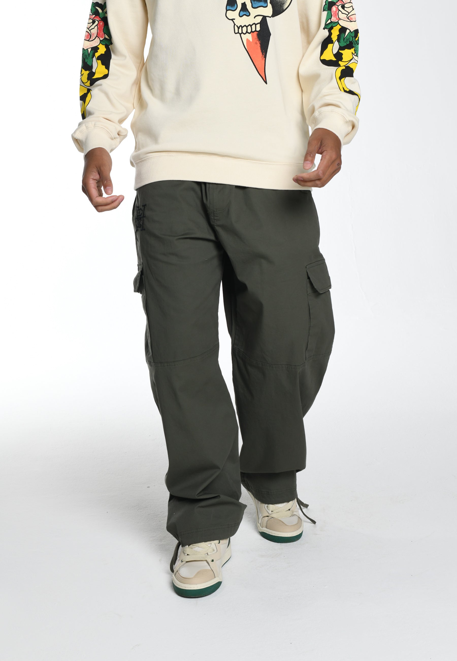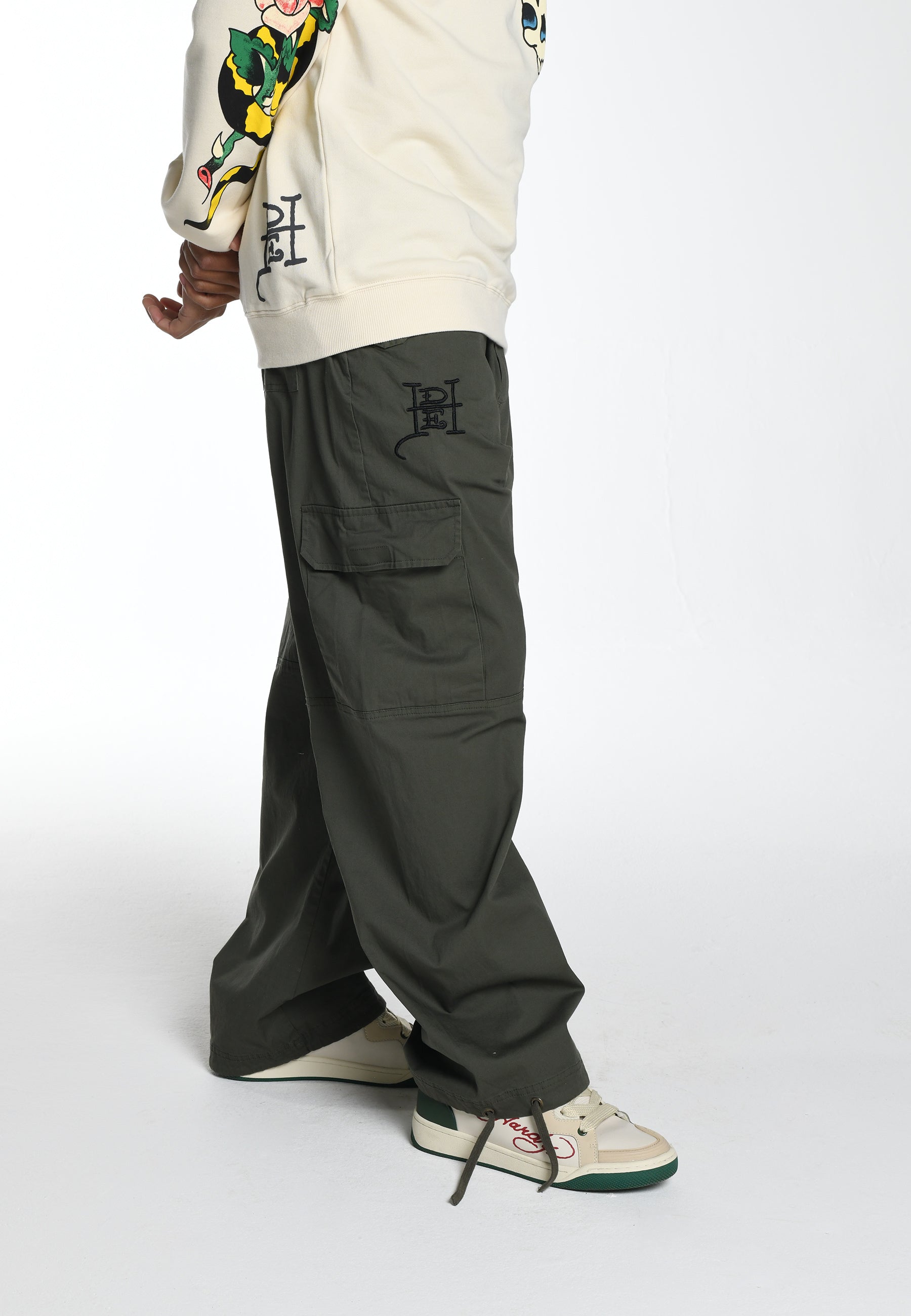 Mens D-B-D Tonal Woven Cargo Trousers - Green