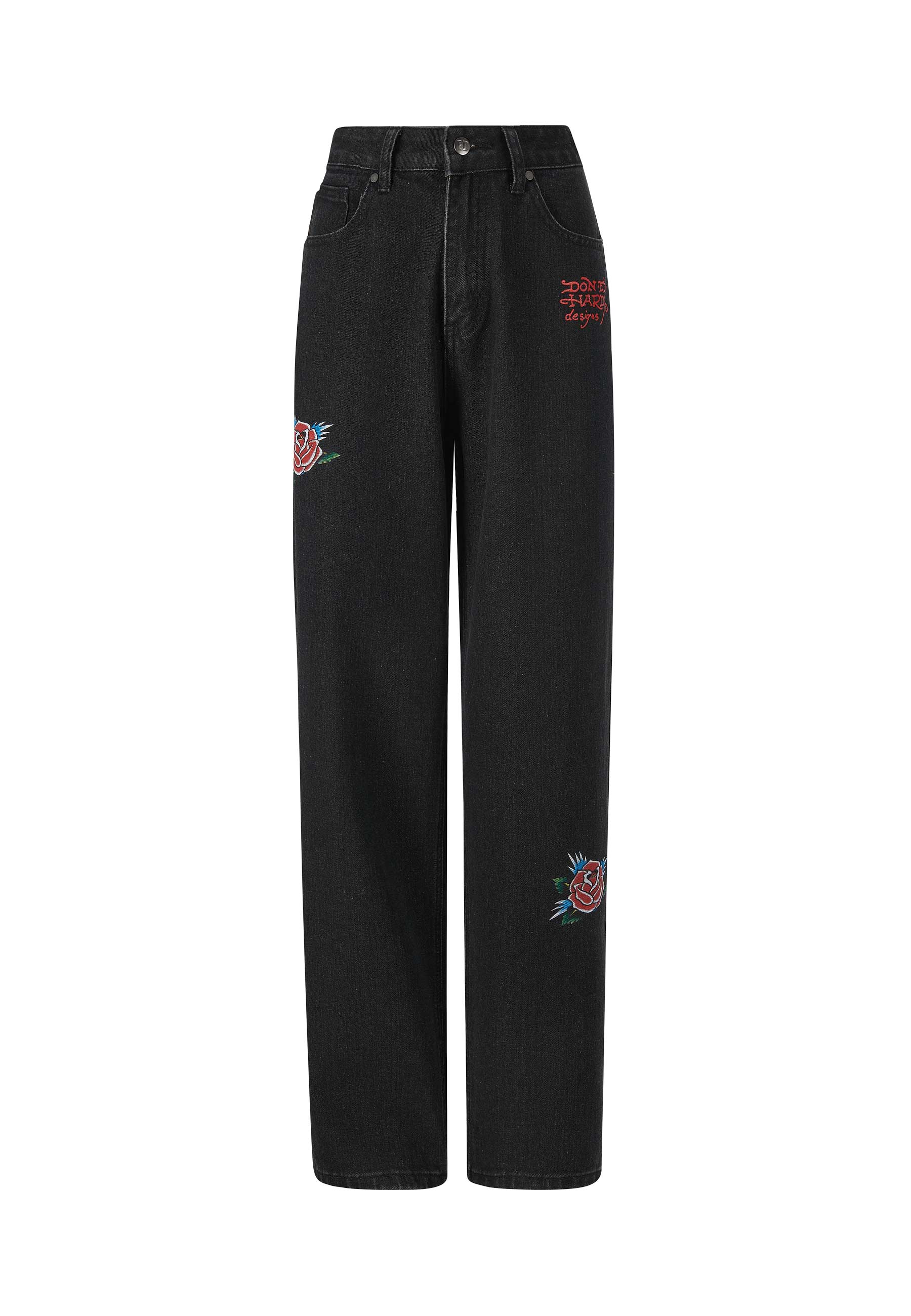 Womens Blooming Death Relaxed Denim Trousers Jeans - Black