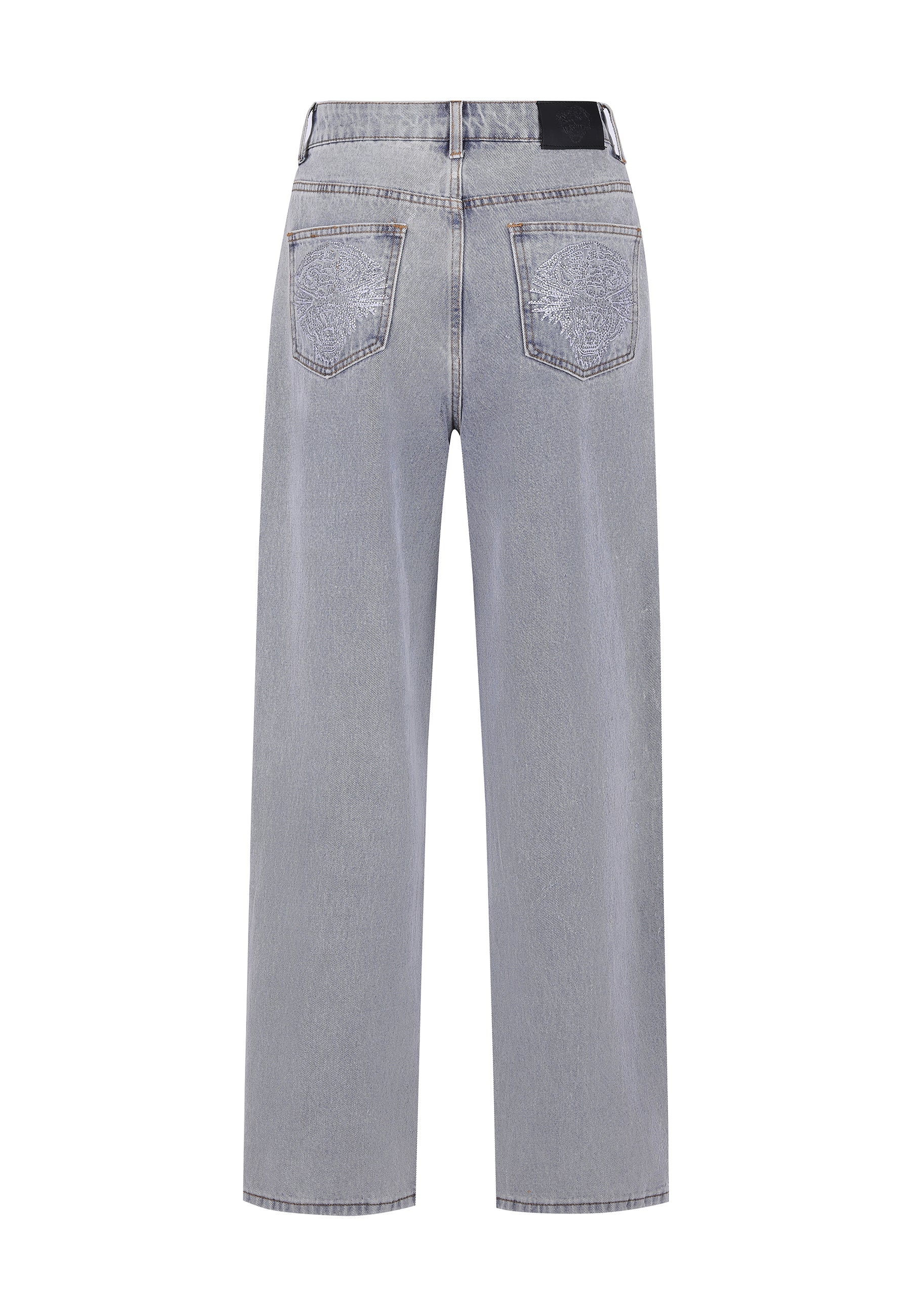 Womens Crystal Roar Diamante Relaxed Denim Trousers Jeans - Bleach