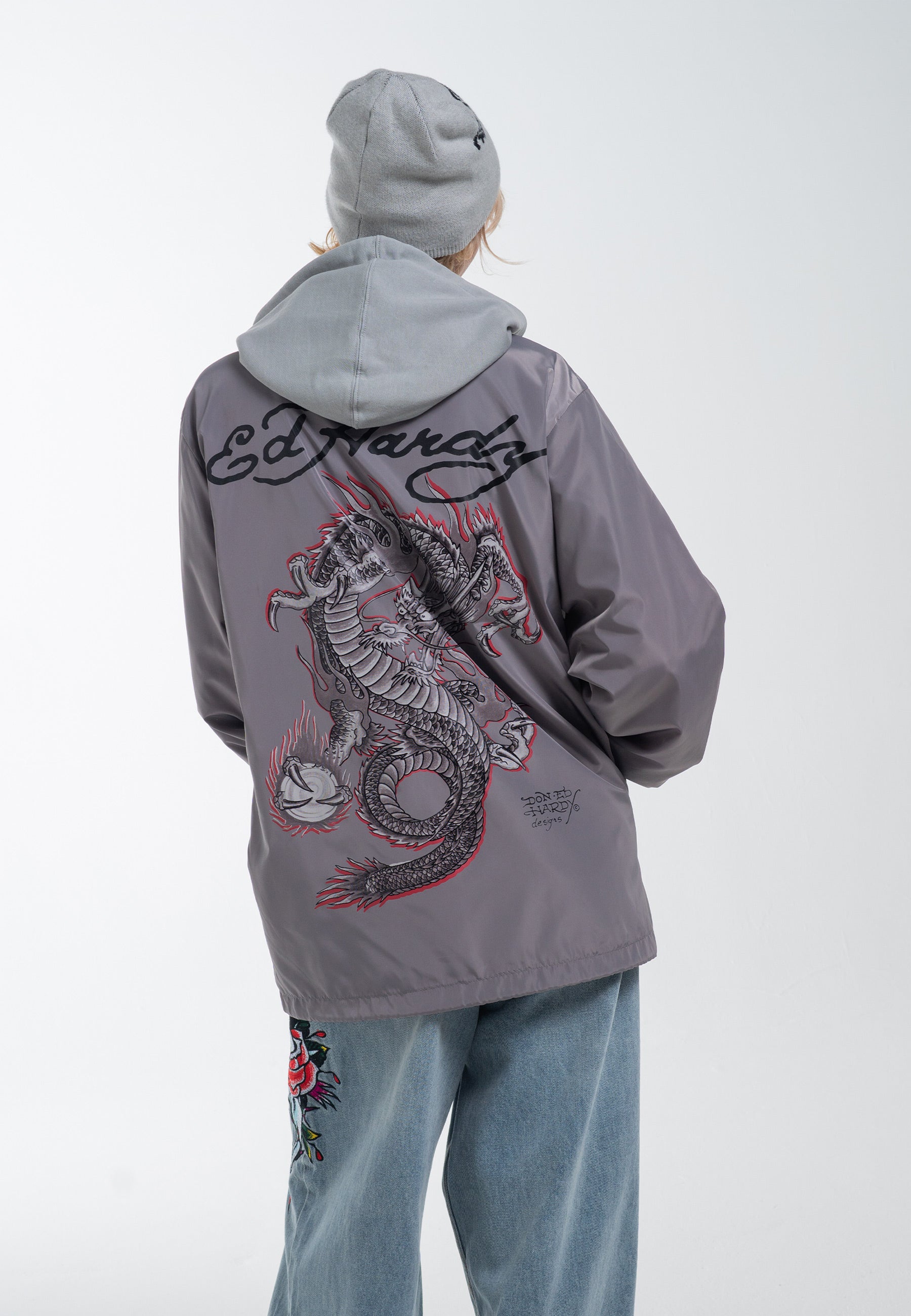 A central element in the new lineup, the Fireball Dragon Coach Jacket signifies the evolution of Ed's artistic vision, masterfully tailored for a new generation.
