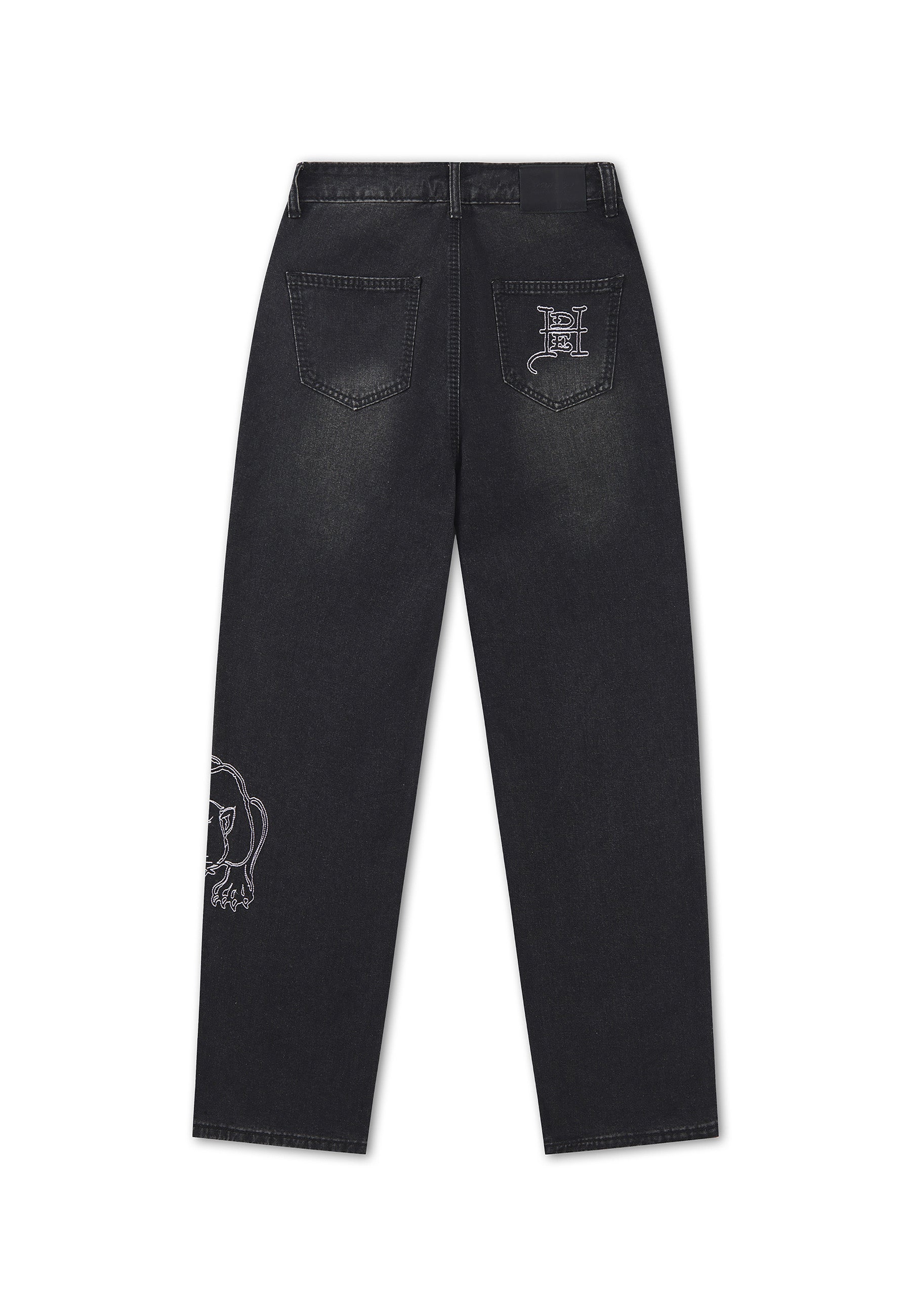 RELAXED FIT WASHED ED HARDY IN CONTRAST STITCHING TO FRONT PANTHER IN CONTRAST STITCHING ON SIDE LEG E.D.H IN CONTRAST STITCHING ON BACK POCKET 90% POLYESTER 10%COTTON