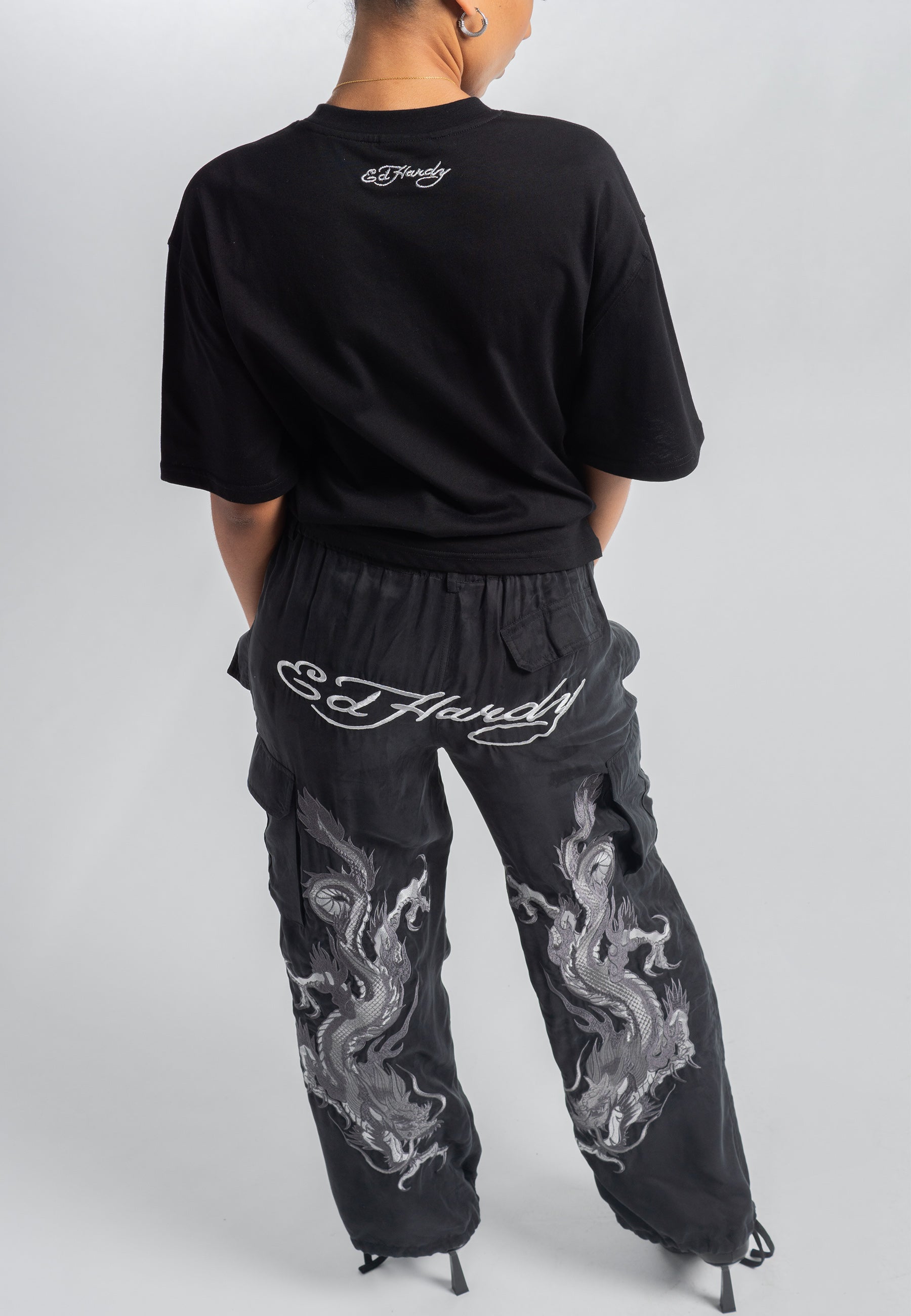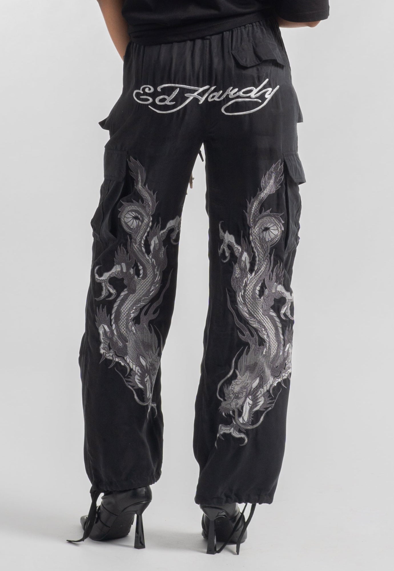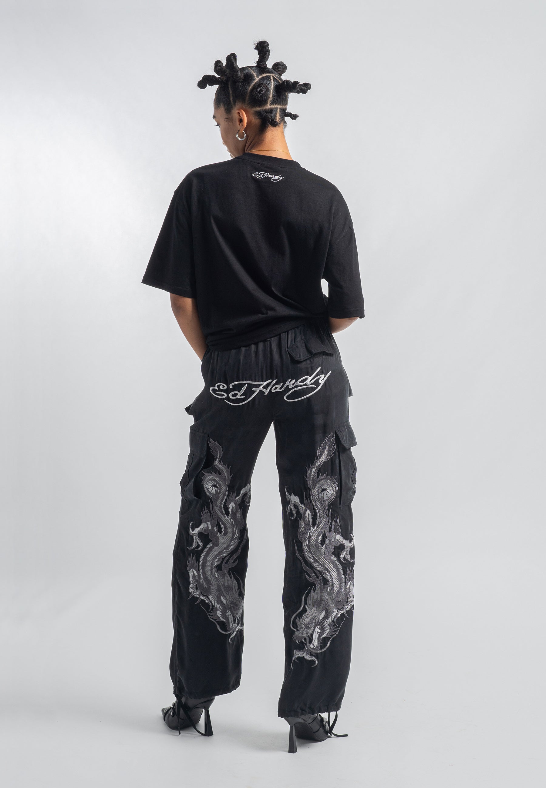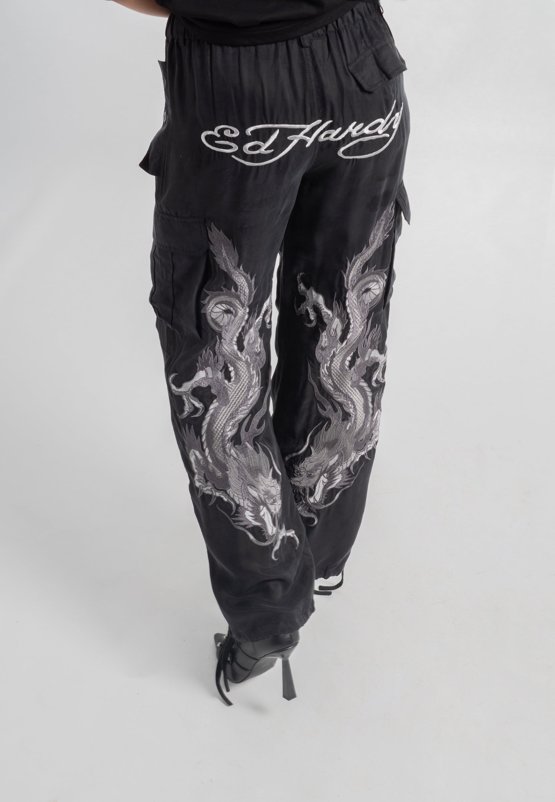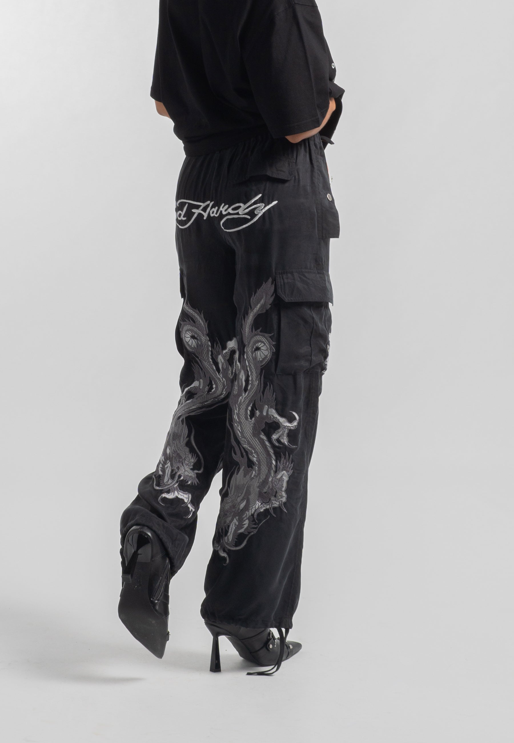 The Hidden Dragon Cargo Trousers are a testament to Ed Hardy's artistry, blending premium materials and thoughtful detailing.